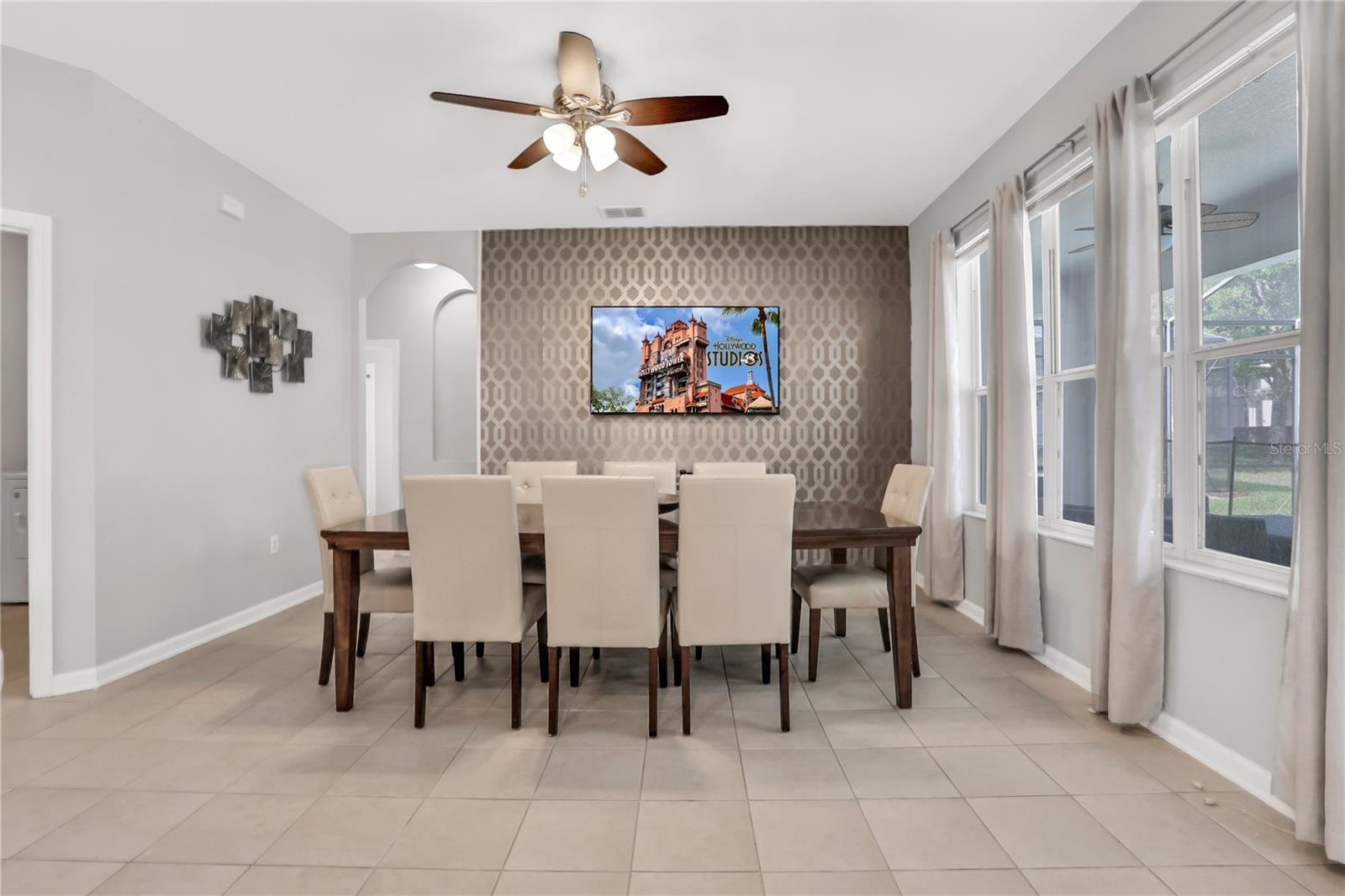 Discover this Stunning Vacation Home or Rental Investment in Windsor Hills Resort, near Disney, just two miles from the entrance! This 6-bedroom, 4-bathroom Brentwood model is the largest floor plan available, offering 2,812 sq. ft. of spacious living. Fully furnished, this home is ready for immediate use, complete with all you need! The thoughtfully designed layout includes two master suites, multiple living areas, and themed bedrooms, a Star Wars room and a Toy Story room, perfect for kids! Step outside to your private screened-in pool and spa, complete with a covered lanai for relaxation. Inside, enjoy an air-conditioned game room featuring a movie theater setup. Windsor Hills Resort offers world-class amenities, including a water park, resort-style pool, fitness center, arcade, movie theater, sundry shop, and sports courts (basketball, tennis, volleyball, and putting green). A short walk to the playground and clubhouse makes this location even more desirable. This exceptional home comfortably accommodates up to 14 guests and is perfect for personal use or as a high-income rental property. Don’t miss this opportunity, schedule your showing today! All information provided and contained herein this listing, including room sizes, is deemed reliable but is not guaranteed and should be independently verified by buyer or buyer's agent. This property is currently used for short-term rentals.