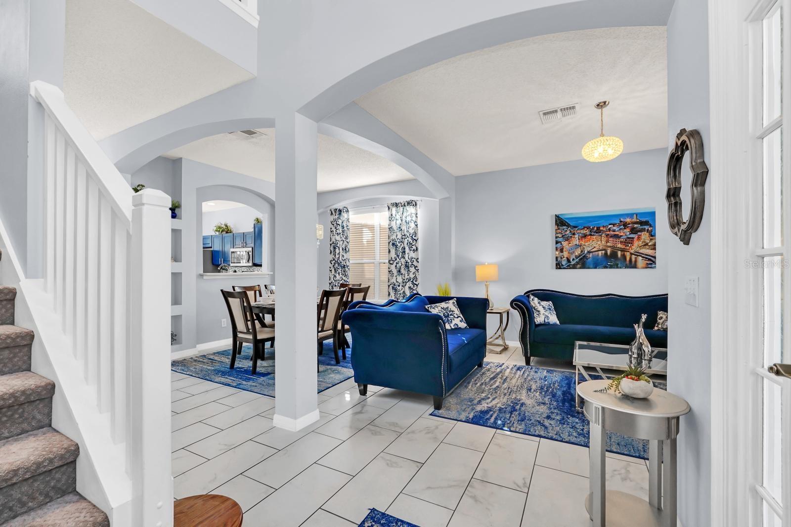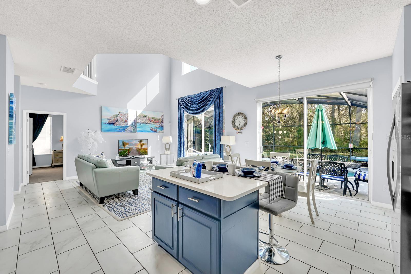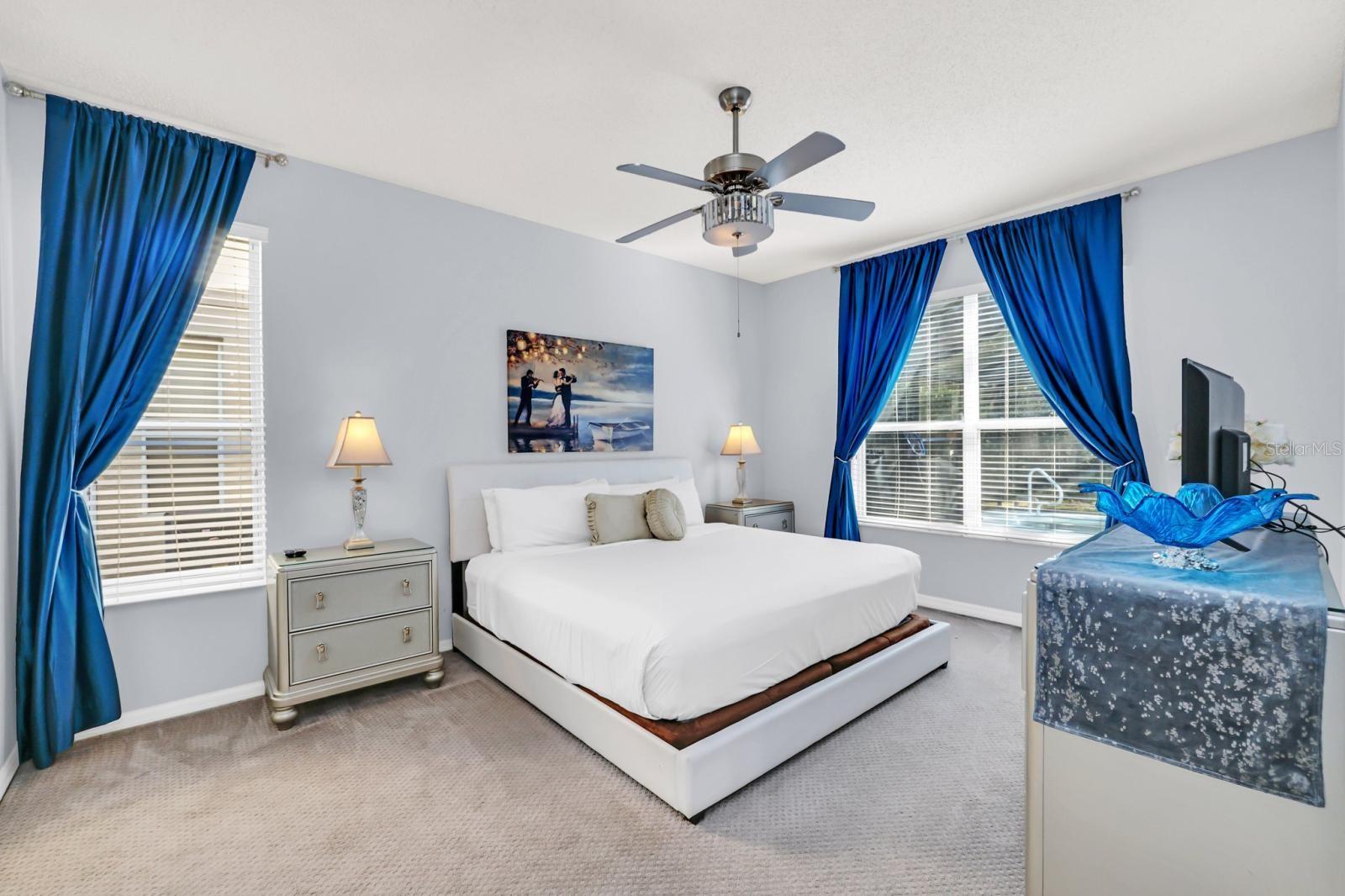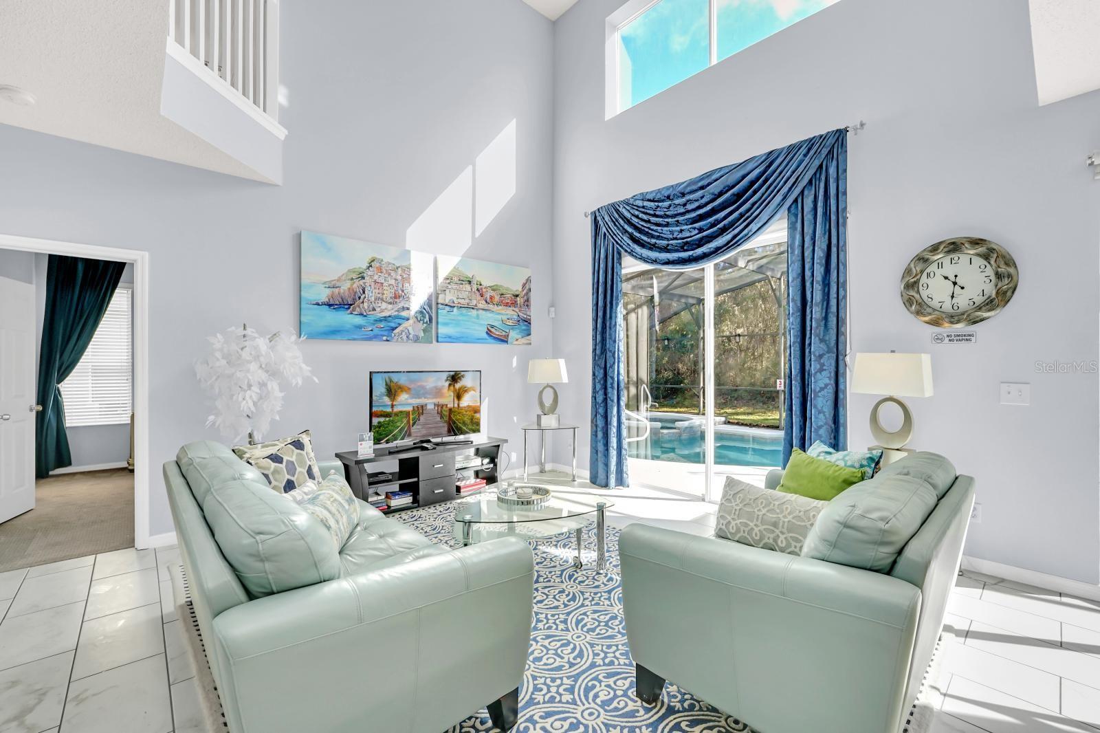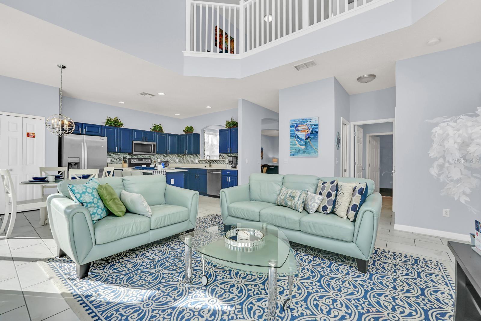 6 bedroom Kissimmee pool home for sale in a gated community. With four ensuite bedrooms in the property making it one of the best rental home in the community. Setup a showing today. (Sold fully furnished.) This home can be used as your personal residence, family vacation home or as an Air BNB short term Disney area vacation property. (New upstairs AC replaced in 2024) (New pool heater in 2024) This over the top stunning home has a conservation pool view and comes with 6 bedrooms, pool & spa with 5-1/2 bathrooms and 4 suite bedrooms with one suite primary bedroom on the first floor. Located in the popular Emerald Island Resort community just 3 miles from the parks. Emerald Island Resort is a gated community with a clubhouse, community pool, indoor and outdoor food and drink bar, mini golf, tennis courts, basketball and playground. The home offers a spacious living room, family room, dining room and kitchen with an island. The main bedroom located on the first floor with a private bathroom with a garden tub, separate shower and walk in closet. You will find the additional 3 bedrooms with attached bathrooms on the second floor. Two more bedrooms are also on the second floor. Enjoy your afternoons floating in the pool. Installed all new tile and (carpet in all bedrooms),painted exterior and interior with exterior trim repainted in 2020, replaced roof (2018), serviced the air conditioning units on an annual basis, changed all light fixtures, faucets in bathroom sinks and kitchen. Stainless kitchen appliances, washer and dryer (2019), Installed safe in downstairs master closet, has a beautiful back splash in the kitchen, replaced pool heater in 2024, all window treatments, all furniture and decor in the home was purchased new in 2018 and poured new concrete on driveway (summer 2020).
