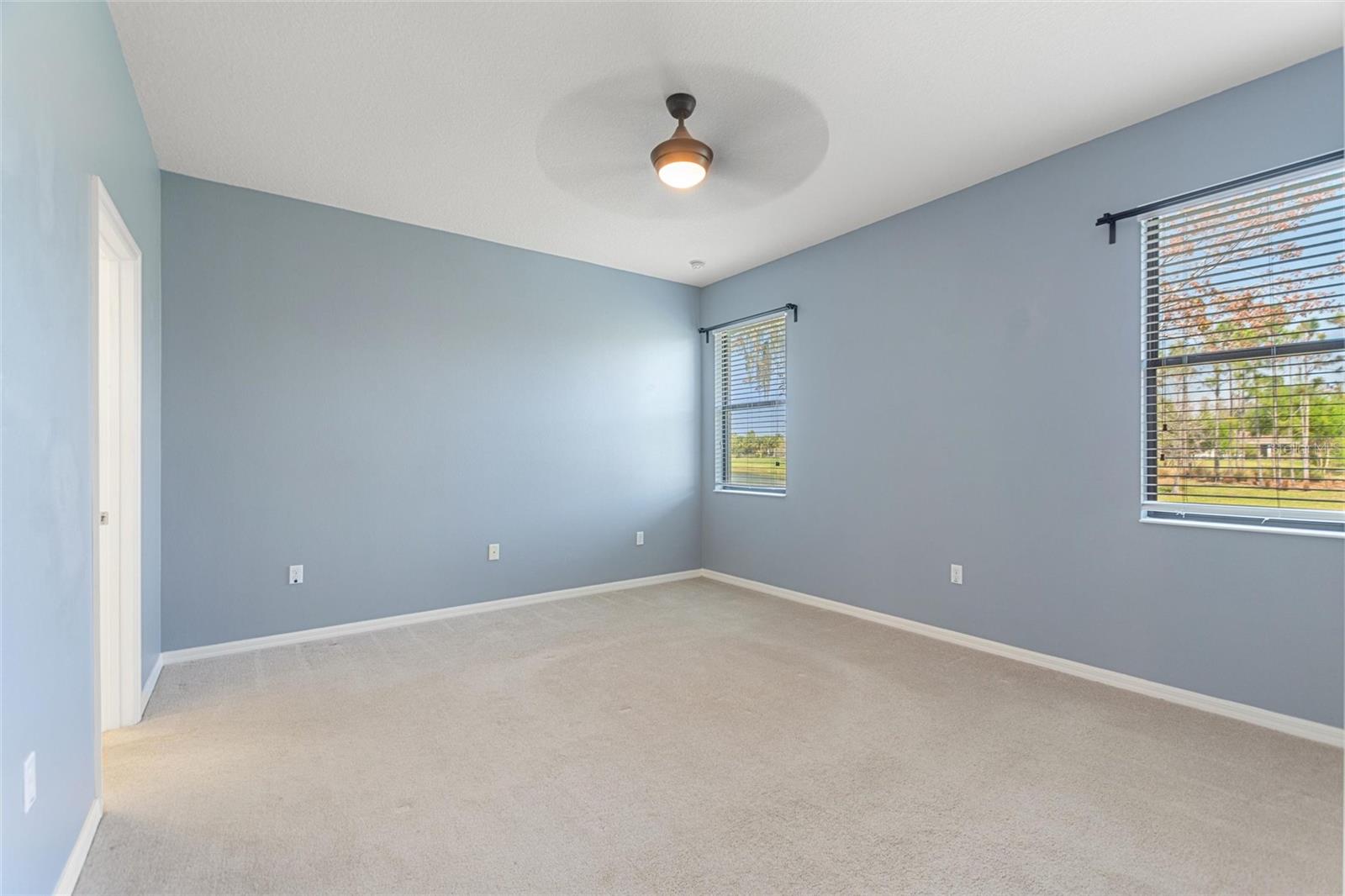 Welcome to 555 Presido Park Place, a charming single-family home nestled in the serene award winning Solivita 55+ community. Built in 2011, this well-maintained Torino floor-plan residence offers a comfortable and modern living experience. Entering a foyer with double closet, you're greeted by an open floor plan that seamlessly connects the living, dining, and kitchen areas, creating an inviting atmosphere perfect for both relaxation and entertaining. The spacious great room features a ceiling fan and large windows enhancing the home's airy feel. The kitchen is fully equipped, including a dishwasher, disposal, microwave, range, and refrigerator. A convenient pantry provides additional storage space. Adjacent to the kitchen, the dining area offers a cozy spot for meals. The primary bedroom boasts a walk-in closet and an en-suite bathroom with dual sinks and walk-in shower, providing a private retreat within the home. Off the central hall, two additional bedrooms, each with ceiling fans, share a well-appointed second bathroom. Step outside to the covered lanai overlooking a tranquil pond, perfect for enjoying Florida's beautiful weather and serene water views. The property's exterior features include an irrigation system, lighting, and rain gutters, ensuring both functionality and curb appeal. With its thoughtful design and prime location between the convenient west gate and awesome Palms amenity center, 555 Presido Park Place offers a delightful living experience. Residents have access to a range of fabulous amenities such as a village center, restaurants, 2 championship golf courses, 2 huge amenity centers with fitness facilities, robust exercise class schedules, 14 total community pools including an indoor pool, indoor walking track, ball room, full Lifestyle staff, Pharmacy and sundries store, art gallery and meeting rooms throughout for card games and social clubs that span every topic imaginable! Within a 25 mile range is Disney and Orlando airport, and a vast array of local medical services as well as a choice of local restaurants and shopping. The community is also golf cart friendly, adding to its charm and convenience. Schedule your tour today!