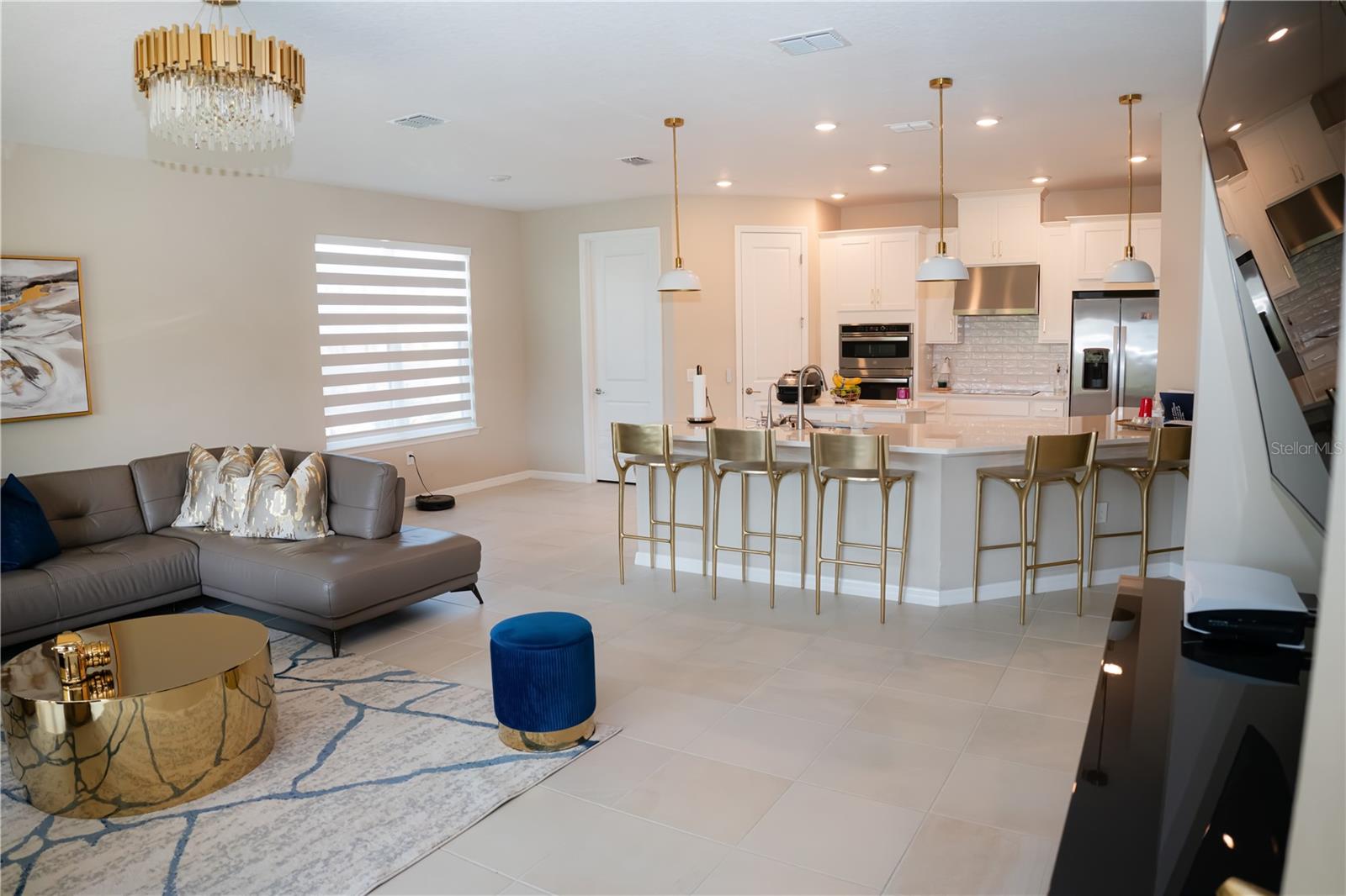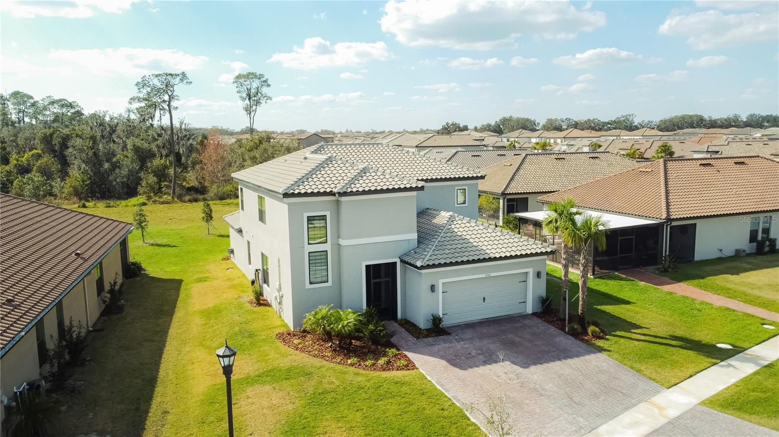 Welcome to this beautifully crafted 4-bedroom, 3.5-bathroom home located in the sought after Bellalago community in Kissimmee, Florida. Built in 2023, this luxurious two-story residence offers a perfect blend of modern elegance and comfort. Situated in a secure, guard-gated community, Bellalago is renowned for its lakefront setting and resort-style amenities. As you enter this Mediterranean-style home with a tile roof and paved driveway, you'll immediately appreciate the high-end finishes and thoughtful design throughout. The open-concept floor plan features tile flooring throughout the main living areas and plush carpeting in the bedrooms for added comfort. The spacious primary suite is conveniently located downstairs and includes tray ceilings, large windows, and a spa-like en-suite bathroom complete with a garden tub, separate shower, and expansive walk-in closets. Upstairs, you'll find three additional well-appointed bedrooms, including one with a private en-suite bathroom. The other two bedrooms share a Jack and Jill-style bathroom, making it ideal for family living. A large loft area upstairs provides plenty of space for relaxation, work, or play. The gourmet kitchen is a chef’s dream, featuring tall cabinets, sleek stainless steel appliances, including a double oven, range, cooktop, refrigerator, and dishwasher. The kitchen also boasts a large island with seating, beautiful granite countertops, and a subway tile backsplash, perfect for entertaining. Elegant lighting fixtures and recessed lighting in the kitchen complete the modern look. Step outside onto the large screened-in porch and enjoy the serene Florida weather while overlooking your backyard. A two-car garage provides plenty of space for parking and storage, and the convenient second-floor laundry room makes household chores a breeze. Bellalago’s impressive community amenities include a clubhouse, resort-style pool, walking trails, docks, a playground, basketball courts, tennis courts, and more. You’ll also be just minutes away from Village Shoppes, offering easy access to supermarkets, pharmacies, restaurants, and other conveniences. This home offers the perfect combination of luxury, comfort, and location, making it an ideal place to live. Don’t miss the opportunity to make it yours!