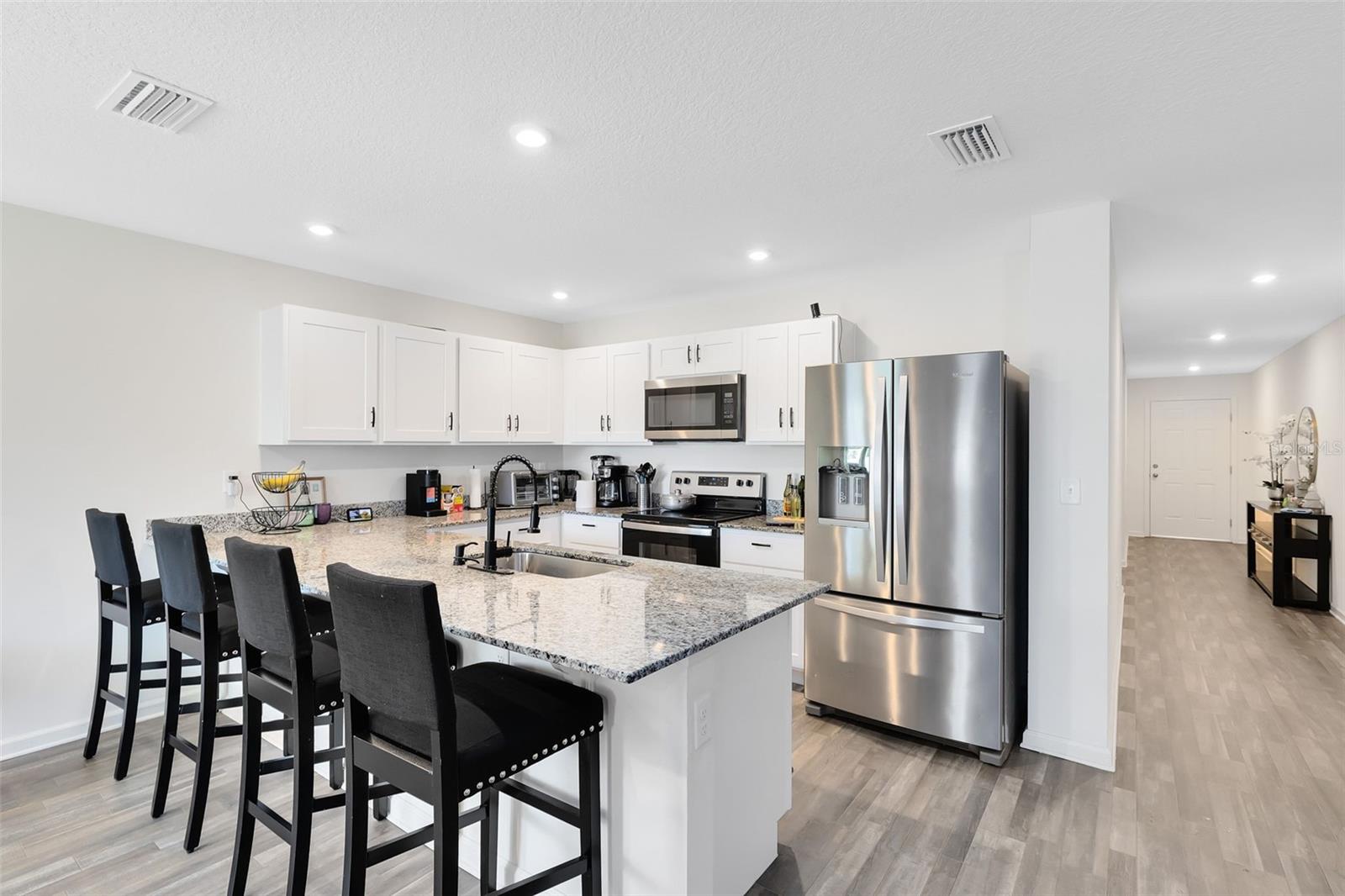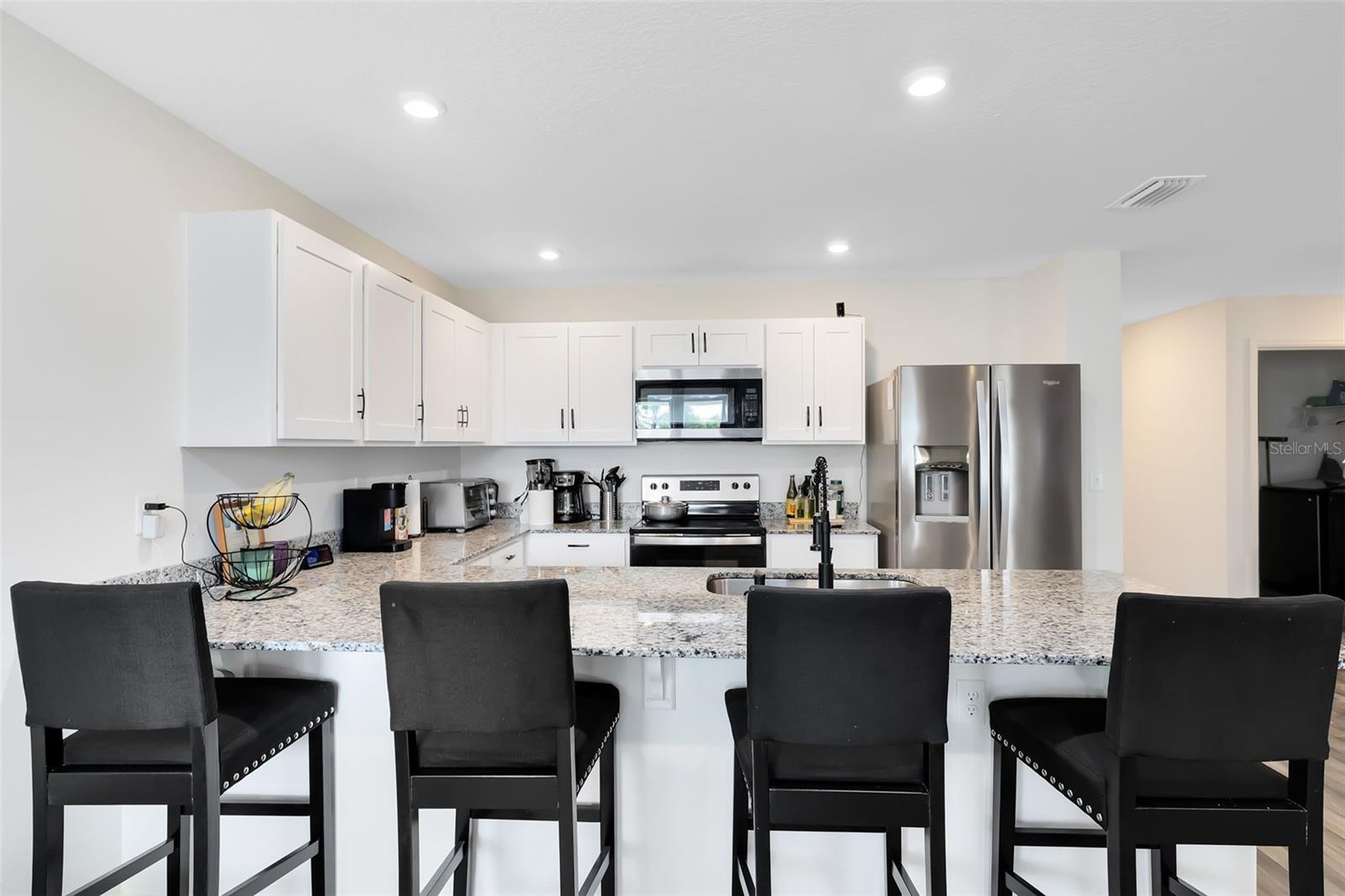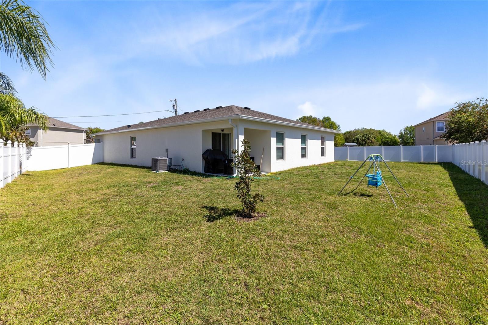 Welcome to this stunning 4-bedroom, 2-bathroom single-family home in Poinciana, Florida. Built in 2024, this gorgeous one-story home features a spacious kitchen with upgraded cabinets, granite countertops, and stainless steel appliances, including a range, microwave and dishwasher perfect for cooking and entertaining. The master suite has a double-sink vanity, a walk-in closet, and a luxurious glass shower featuring a rain shower head. Enjoy outdoor living with an extra-large, fenced backyard, ideal for relaxing, entertaining, and more. Nestled in an amazing community, this home combines comfort, style, and convenience. A true gem you don’t want to miss!