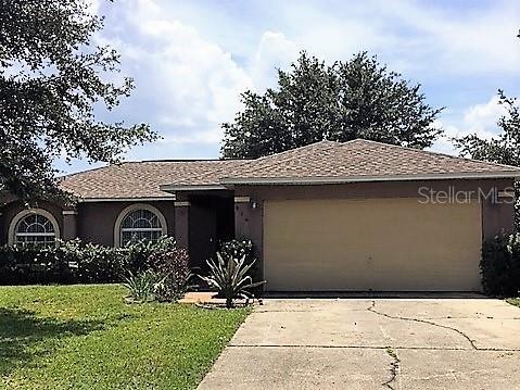 PRICE REDUCED! Freshly painted interior this exquisite 3-bedroom, 2-bathroom residence boasts a remarkable floor plan, featuring a spacious living room, inviting family room, and an expansive kitchen complete with a central island for culinary enjoyment. The luxurious primary bathroom is a true retreat, offering a serene garden tub, a separate shower, and dual vanities. The home also includes a charming covered front porch entry and an impressive 12x18 screened rear lanai, perfect for relaxation. Ideally situated, it is within close proximity to schools, shopping centers, fine dining, a medical facility, and just a short drive from the world-renowned Disney attractions.