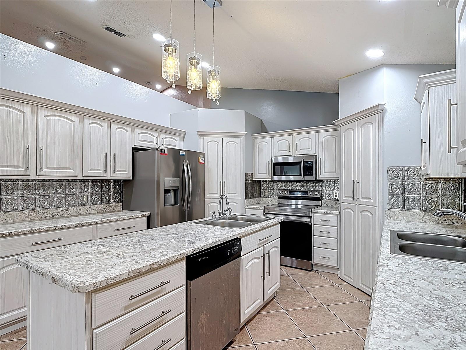 Welcome to this stunning 4-bedroom, 2-bathroom home nestled in a highly sought-after community. Step inside to discover a beautifully updated kitchen, featuring a massive island perfect for entertaining, and elegant crown molding that adds a touch of sophistication throughout. The home boasts durable tile and vinyl flooring throughout, ensuring easy maintenance while maintaining style. Enjoy the spacious living areas, including a large back patio that offers ample space for outdoor gatherings, and a generous backyard perfect for relaxation or recreation. The community itself is packed with amenities, including a gym, pool, and community center, providing a perfect balance of comfort and convenience. As an added bonus, the HOA covers cable and internet, ensuring that you stay connected without additional hassle. This home is an exceptional find, combining modern living with resort-like amenities. Don’t miss out—schedule your tour today!