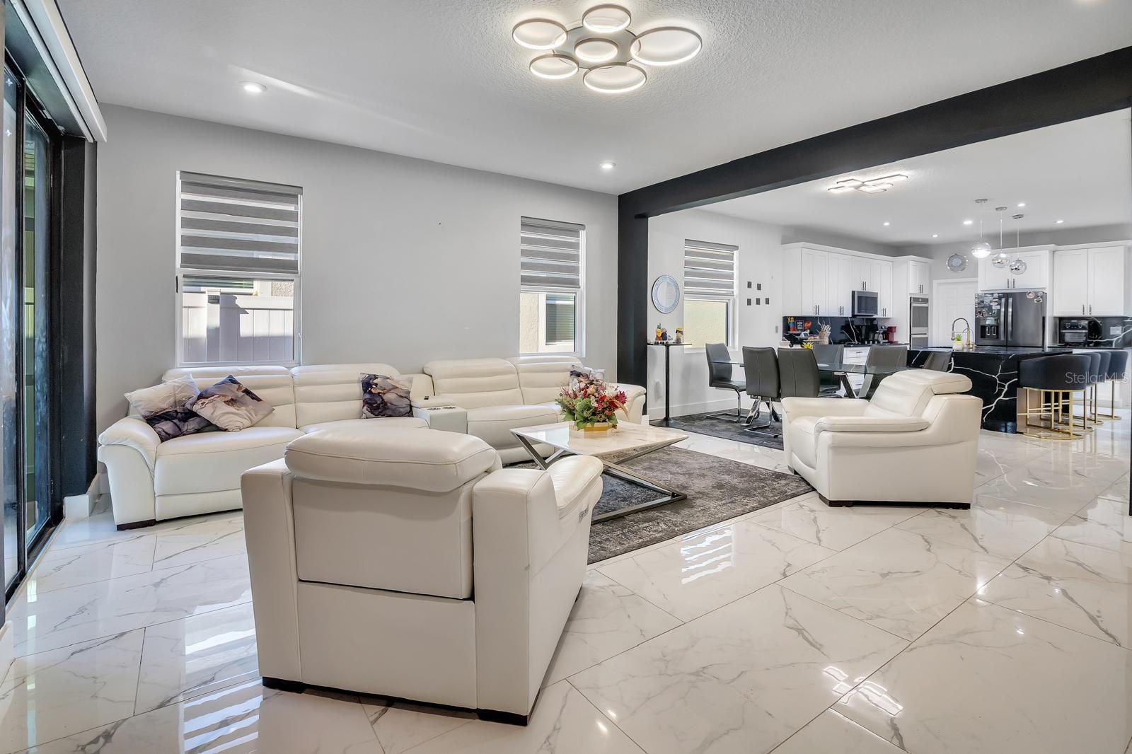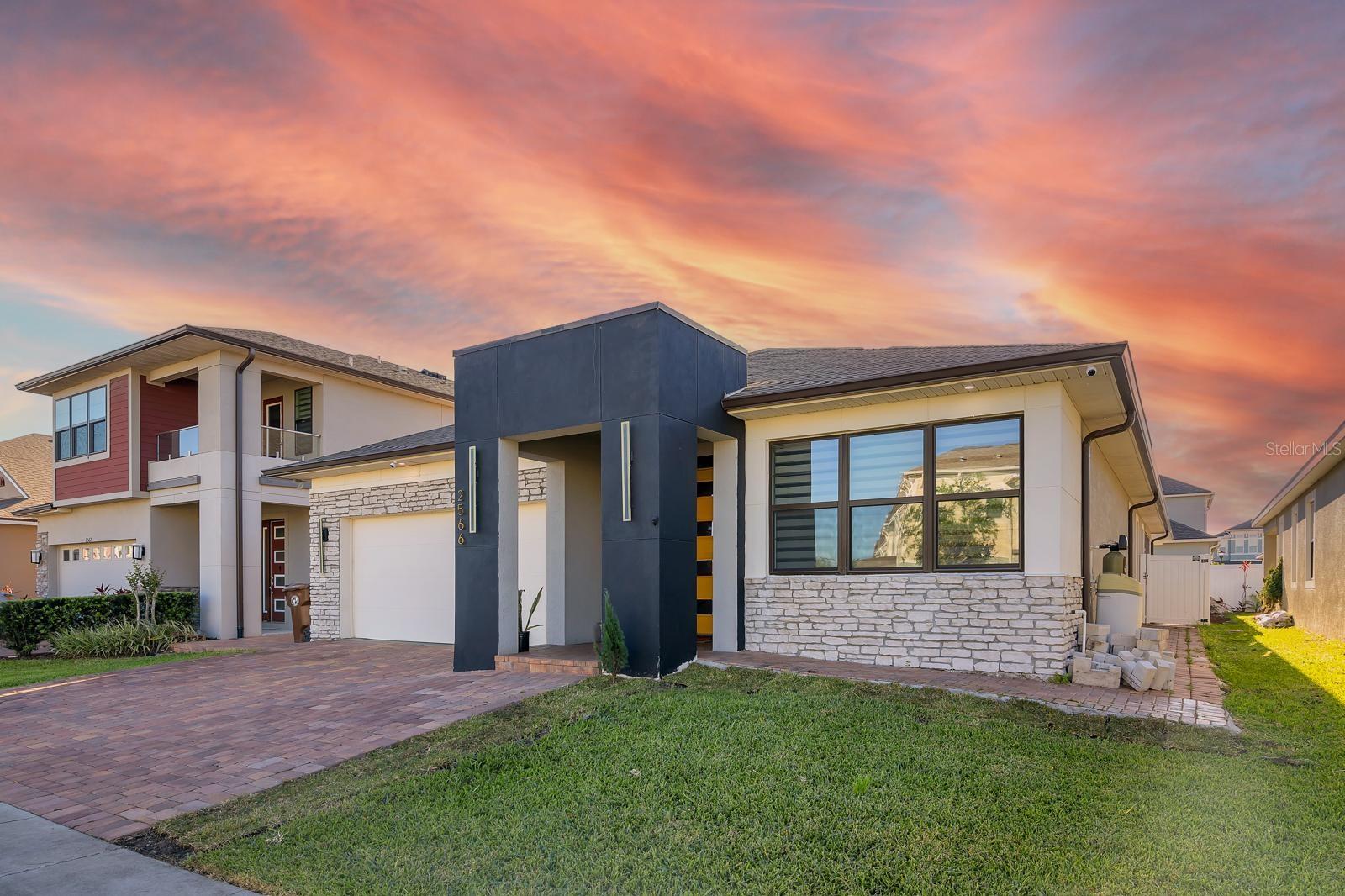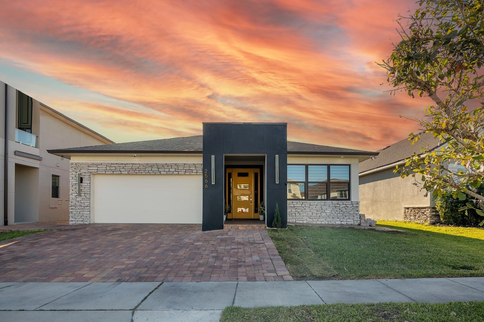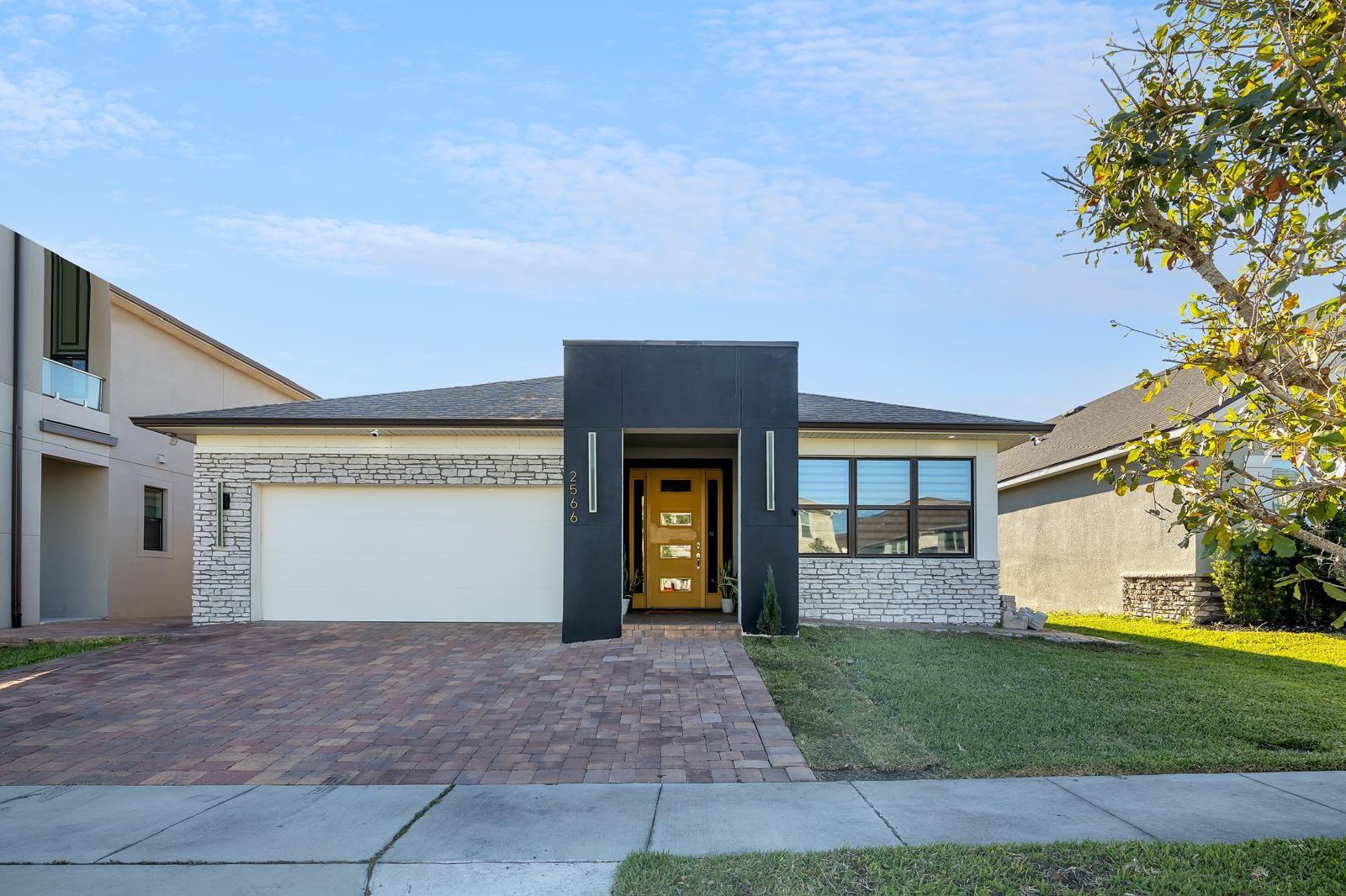 SELLER MOTIVATED OFFERING 10K IN BUYER'S CLOSING COSTS. Get more home for less price. Welcome to 2566 Trielle Ave, an exceptional 4-bedroom, 3-bathroom home located in the desirable gated community of Tapestry in Kissimmee. This residence blends sleek modern design with over $60K in premium upgrades, offering a move-in ready lifestyle with unmatched style and value. Enjoy elegant marble-style porcelain tile flooring throughout (no carpet), a chef-inspired kitchen with striking waterfall-edge black granite counters, premium black stainless steel appliances, double ovens, and custom cabinetry. The open-concept layout is perfect for entertaining, featuring a dramatic custom TV wall, built-in wine cellar with wood and glass finishes, stylish pendant lighting, and designer window treatments. Retreat to a luxurious primary suite with a spa-like en-suite bathroom and expansive walk-in closet. The finished garage with epoxy floors adds functional beauty, —ideal for Florida living. Additional features include a whole-house Inventus water softener & filtration system, custom accent walls, and a bold front door for elevated curb appeal. Residents of Tapestry enjoy 24-hour gated security, a resort-style pool, splash pad, clubhouse, gym, and playgrounds—all just minutes from The Loop, Disney, shopping, and major highways. Seller is highly motivated. This is a rare opportunity to own a truly upgraded home in a prime location at an unbeatable price!