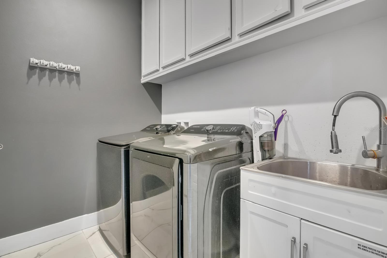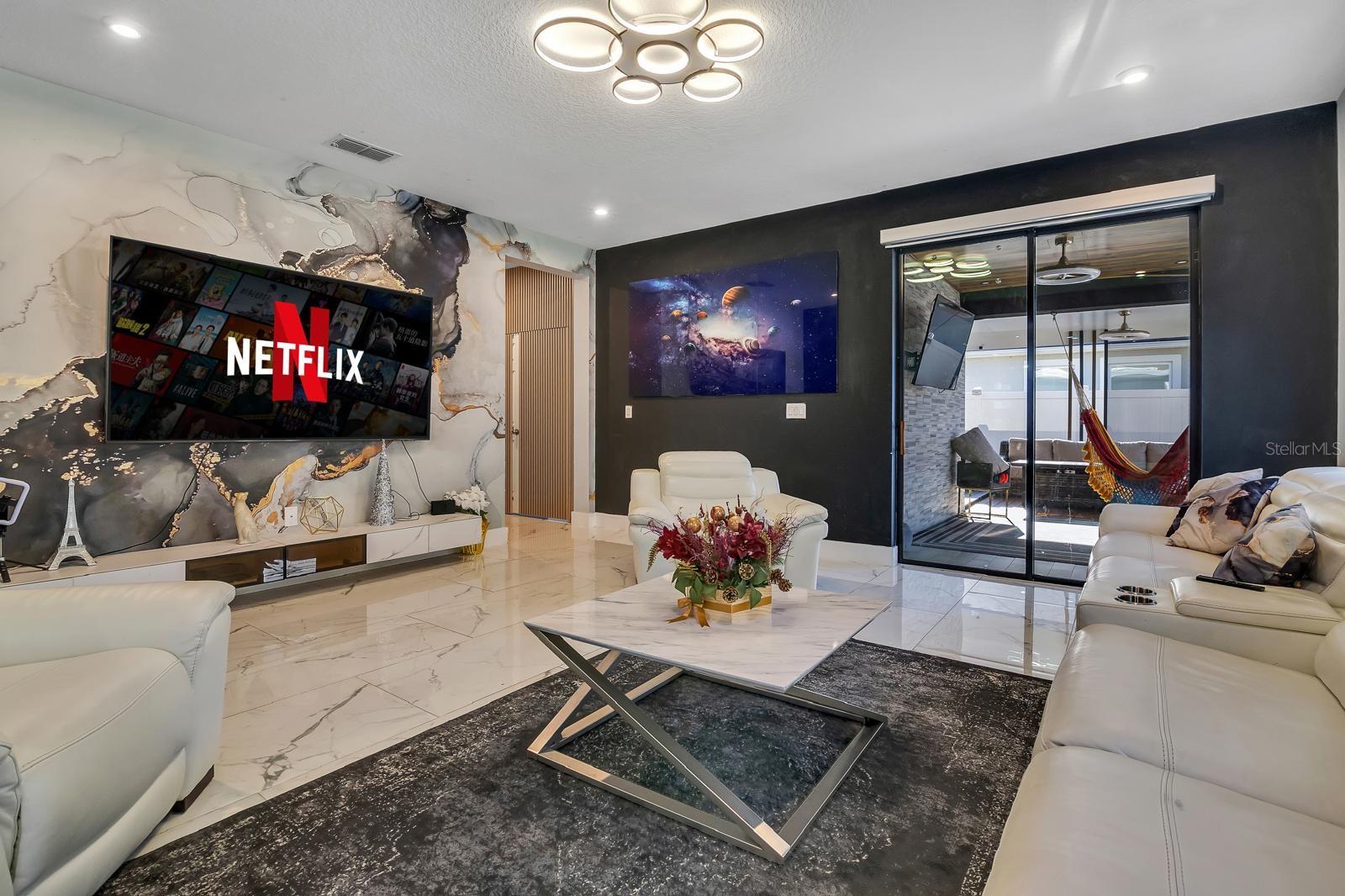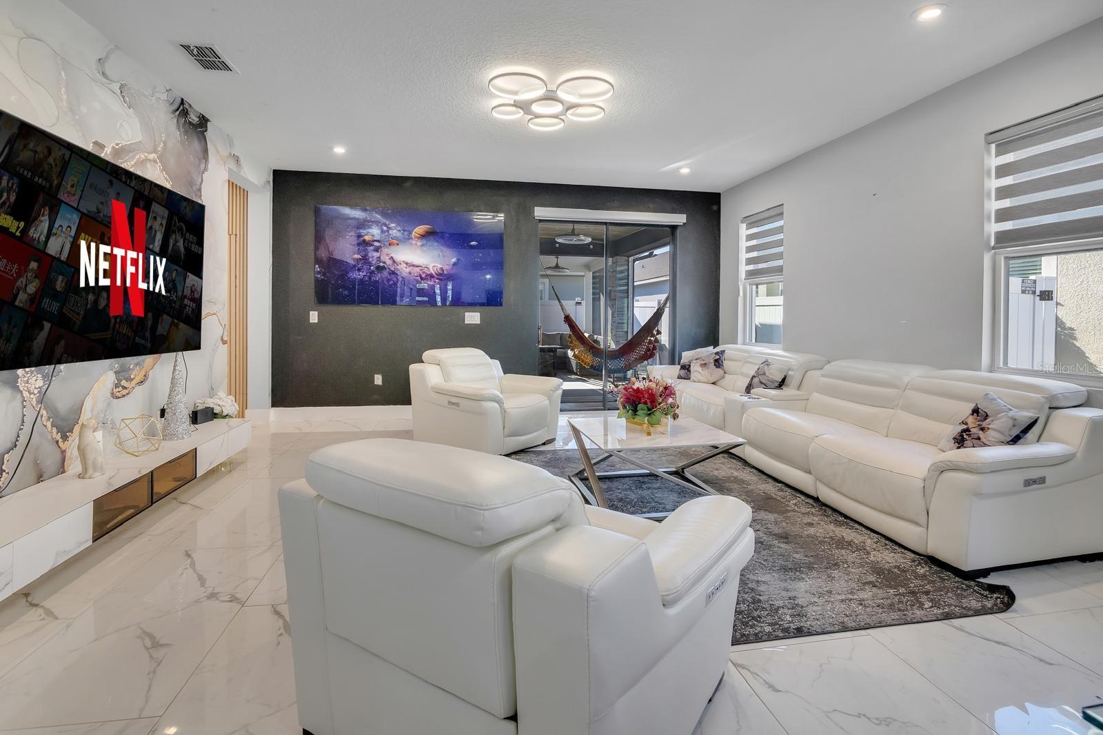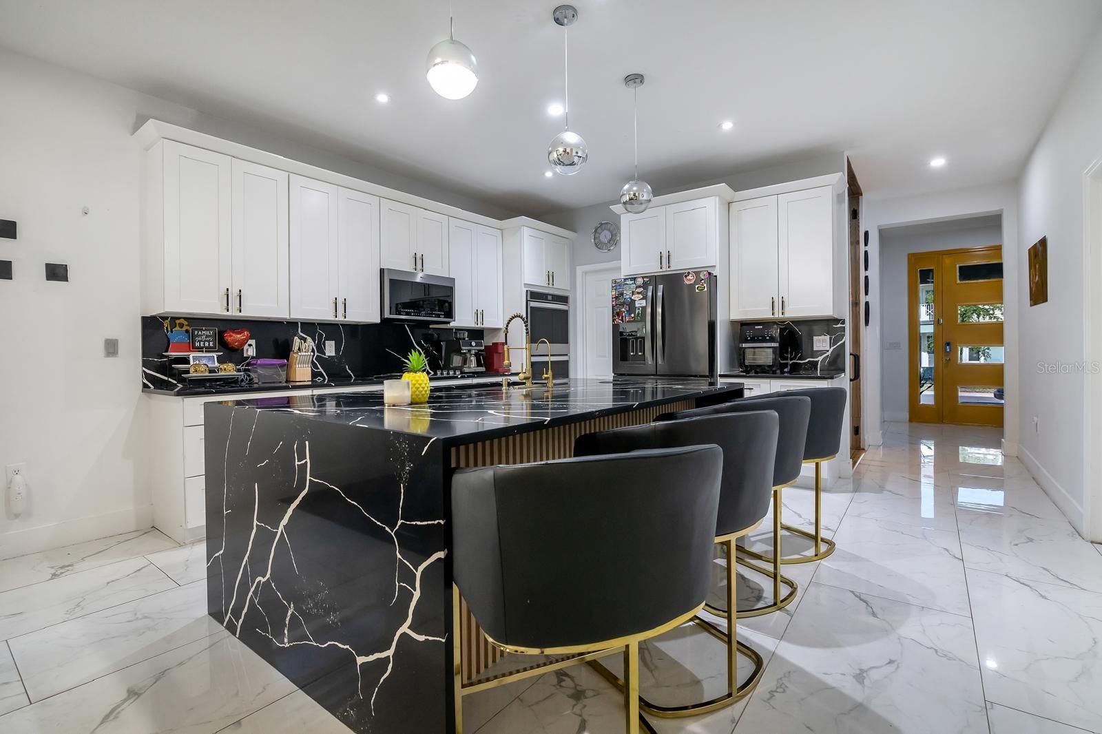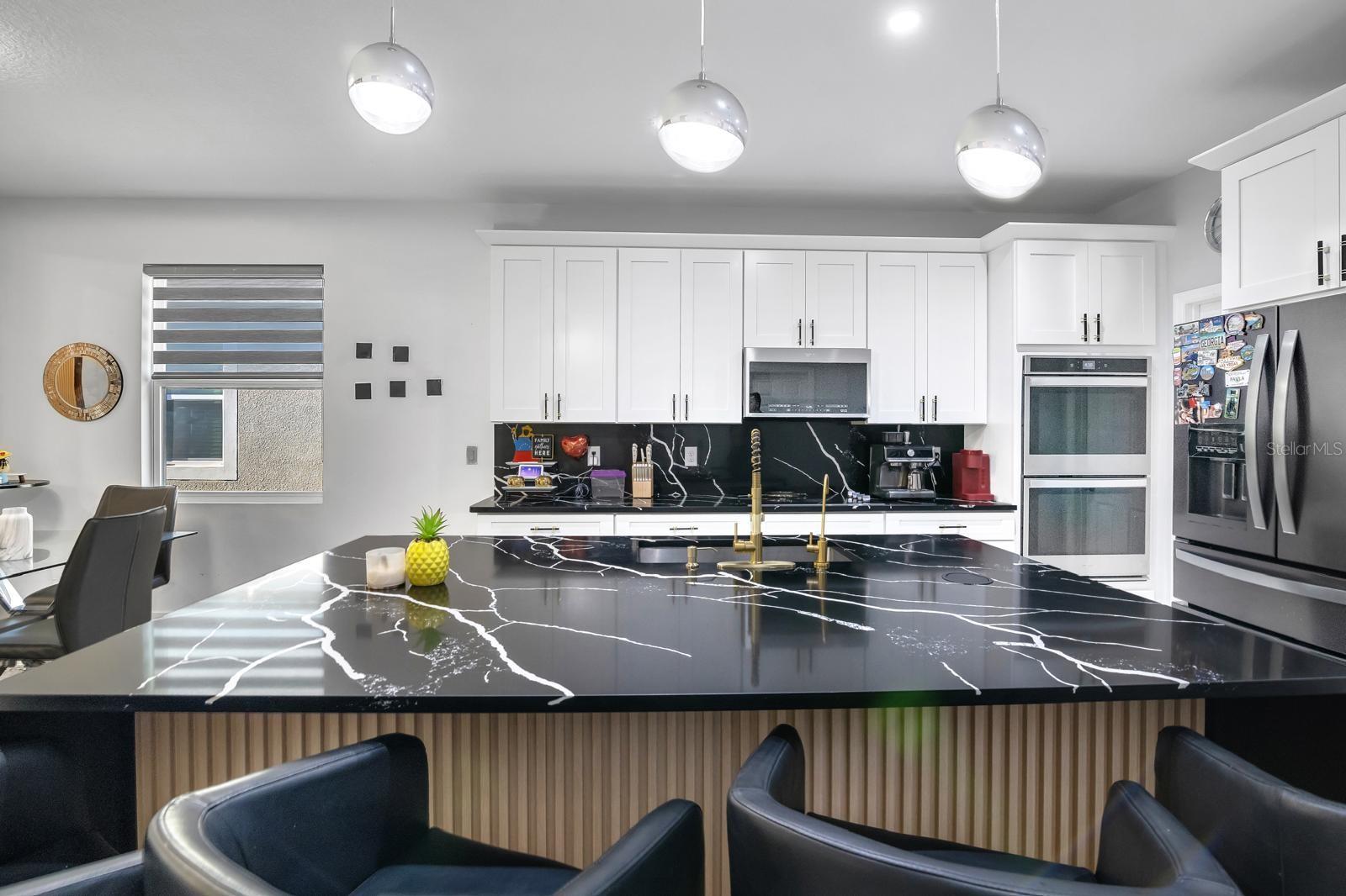 SELLER MOTIVATED OFFERING 10K IN BUYER'S CLOSING COSTS. Get more home for less price. Welcome to 2566 Trielle Ave, an exceptional 4-bedroom, 3-bathroom home located in the desirable gated community of Tapestry in Kissimmee. This residence blends sleek modern design with over $60K in premium upgrades, offering a move-in ready lifestyle with unmatched style and value. Enjoy elegant marble-style porcelain tile flooring throughout (no carpet), a chef-inspired kitchen with striking waterfall-edge black granite counters, premium black stainless steel appliances, double ovens, and custom cabinetry. The open-concept layout is perfect for entertaining, featuring a dramatic custom TV wall, built-in wine cellar with wood and glass finishes, stylish pendant lighting, and designer window treatments. Retreat to a luxurious primary suite with a spa-like en-suite bathroom and expansive walk-in closet. The finished garage with epoxy floors adds functional beauty, —ideal for Florida living. Additional features include a whole-house Inventus water softener & filtration system, custom accent walls, and a bold front door for elevated curb appeal. Residents of Tapestry enjoy 24-hour gated security, a resort-style pool, splash pad, clubhouse, gym, and playgrounds—all just minutes from The Loop, Disney, shopping, and major highways. Seller is highly motivated. This is a rare opportunity to own a truly upgraded home in a prime location at an unbeatable price!