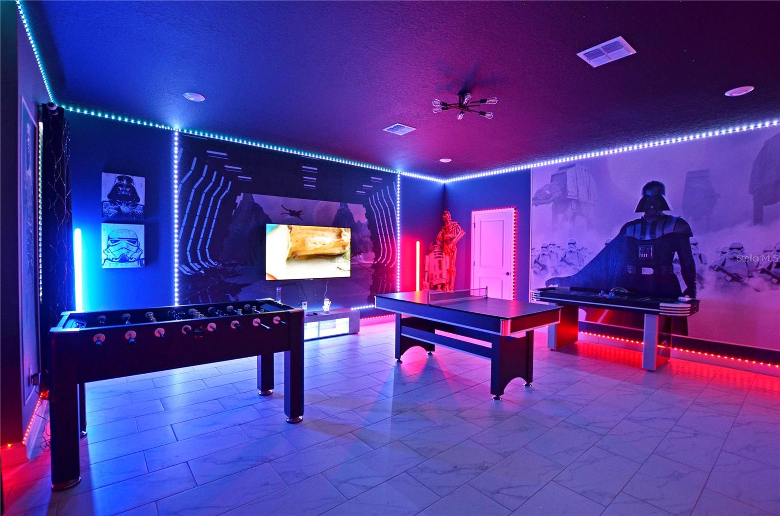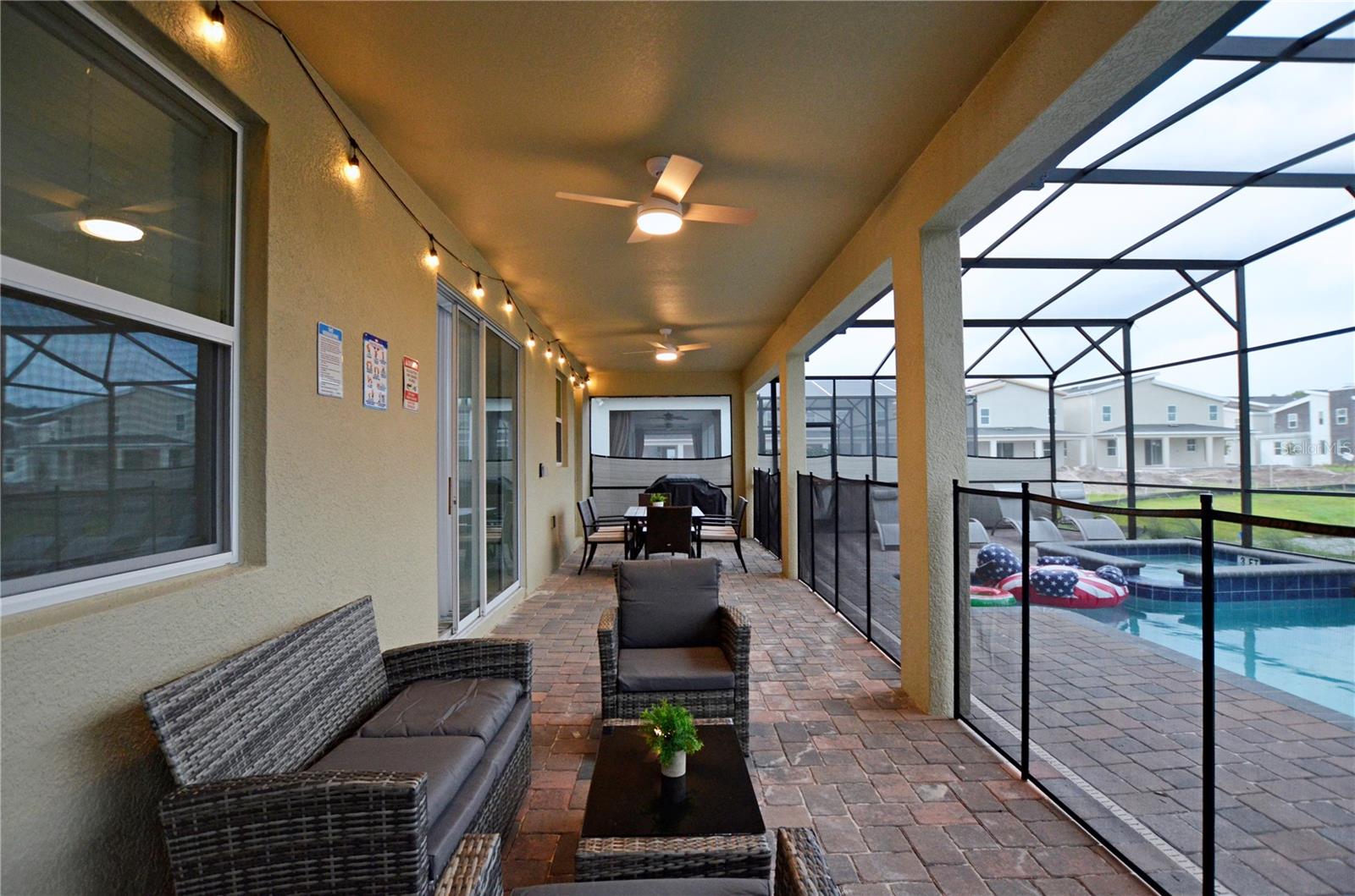 WELCOME TO PARADISE and luxury living at Storey Lake Resort! This meticulously maintained waterfront vacation home features 9 bedrooms and 5 full bathrooms. The Game Room and many of the Bedrooms are Star Wars themed. Very fun for the whole family! This property is not only a dream vacation home but also an exceptional investment opportunity. With its prime location and remarkable features, it promises to be the perfect investment property for those looking to capitalize on the lucrative vacation rental market. First floor features include: Inviting entrance foyer, Primary bedroom with en-suite bathroom, large game room with 3 game tables and large screen TV, 2nd Bedroom and 2nd full bathroom, spacious gourmet kitchen with breakfast bar, large closet pantry, open floor plan with Great Room and Dining Room. Sliders to the 40 X 10 covered patio and screen enclosed swimming pool with spa ... overlooking the beautiful water pond! Second floor features include, open loft media room, inside utility closet with washer and dryer ... and 7 more bedrooms and 3 more full bathrooms! Every detail has been thoughtfully designed to create an atmosphere of indulgence and relaxation and perfectly caters to the needs of large families, groups of friends, or anyone seeking a lavish and spacious retreat. Storey Lake Resort itself is known for its exclusive amenities, making it a true gem among vacation communities. Residents and guests have access to the communities recreational facilities, including a clubhouse, fitness center, water park, sports courts, and much more. Orlando's most famous attractions ( Disney World, Universal Studio, Old Town, SeaWorld...), restaurants, and shopping centers are just minutes away. East coast beaches and the Gulf of America are a little over an hour away. Call today to preview this amazing home!