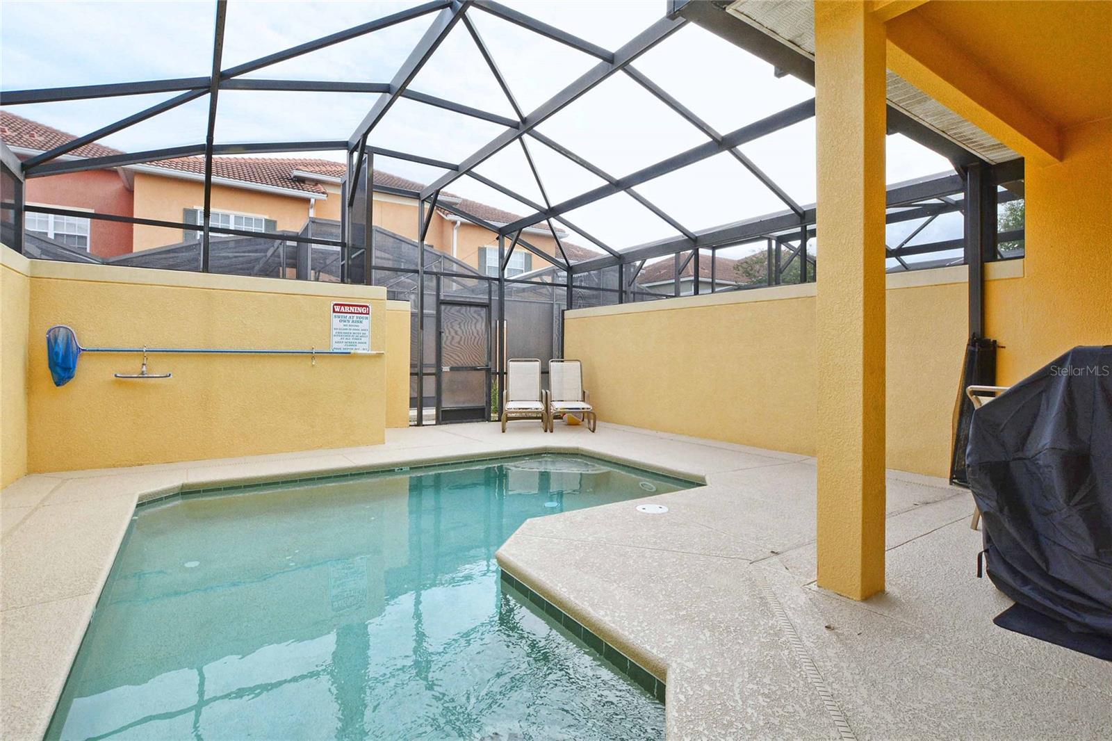 Beautiful Townhome with great club house proximity. Currently in active rental program with existing rentals in place.. private pool , ceramic tile, granite countertops, stainless steel appliances and professionally furnished. One of Disney's closest and well known vacation home communities. packed with resort guest amenities this home is ready to go. A 24/7 gated and guarded community. The Resort features a store , grill , gym , gameroom along side a beautiful lagoon style pool with multiple spas and waterfall grotto , kids play area , tennis , basketball and playgrounds... Entire amenity is set beside a beautiful fresh water pond directly behind the resort ... lots of sun and 15 mins from disney property ... Perfect