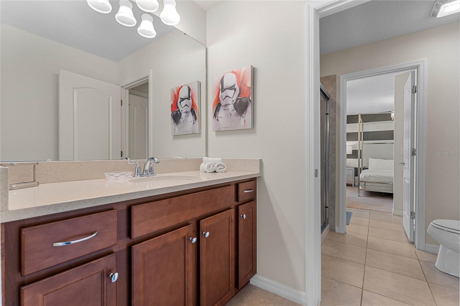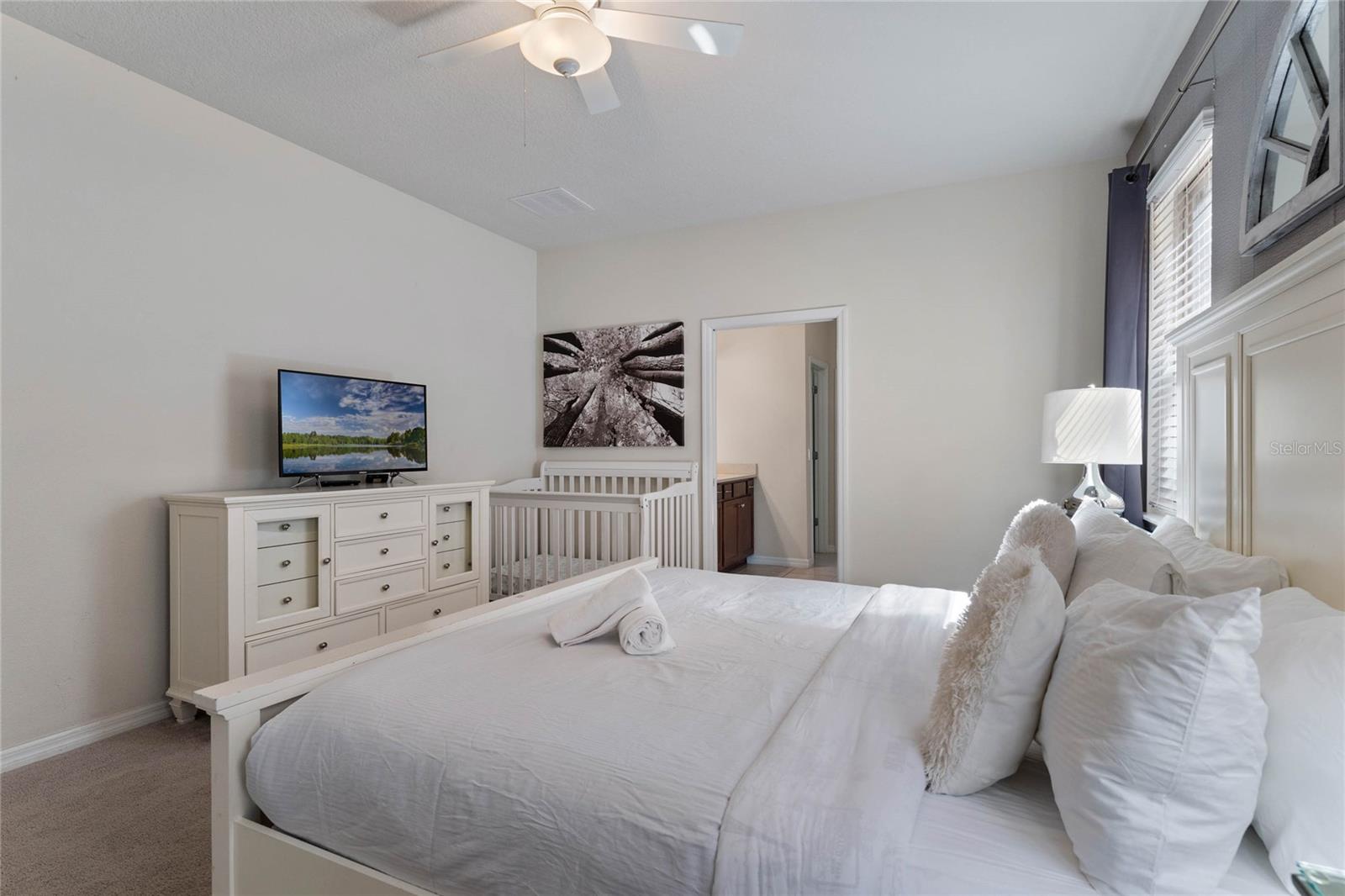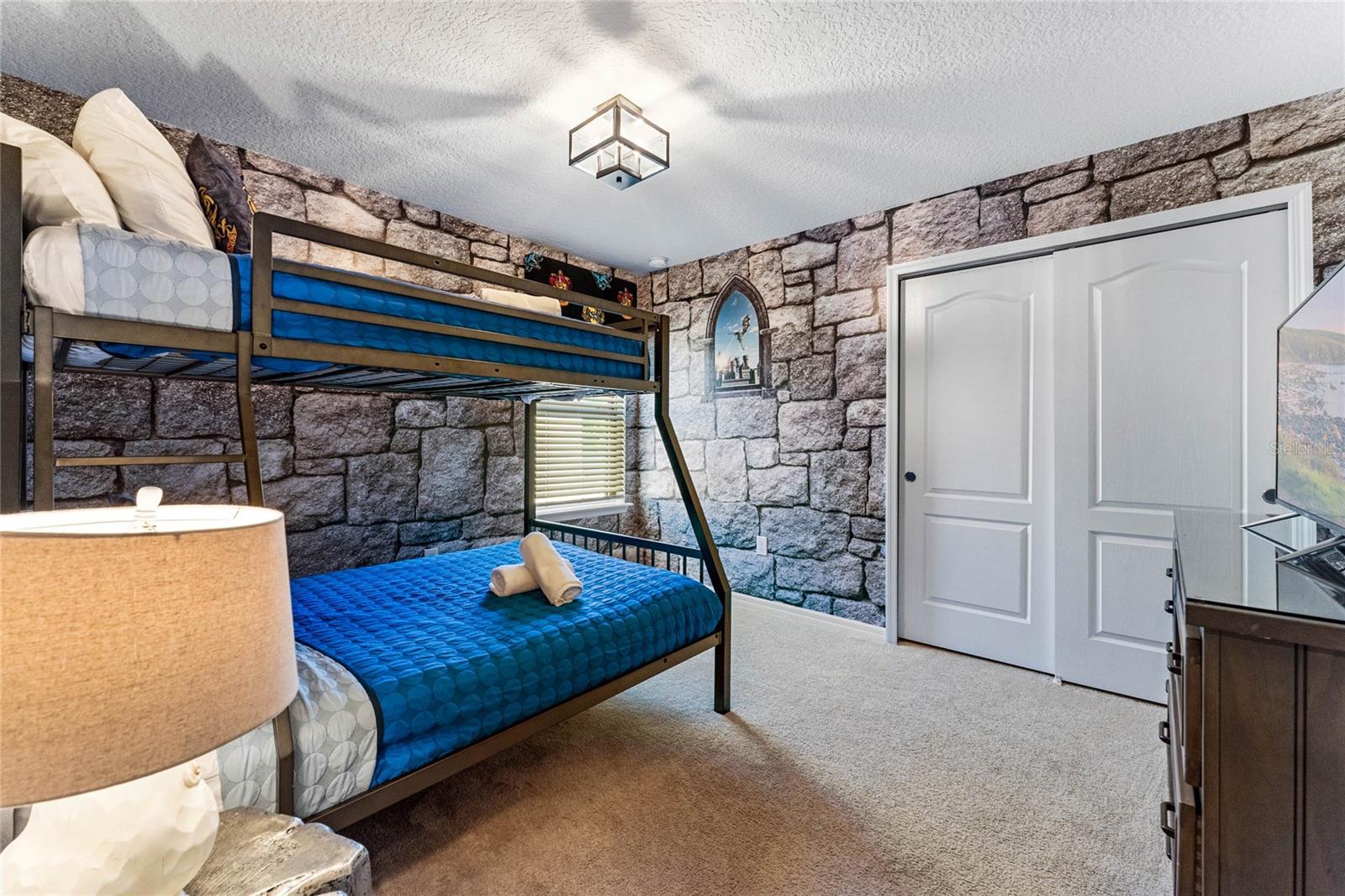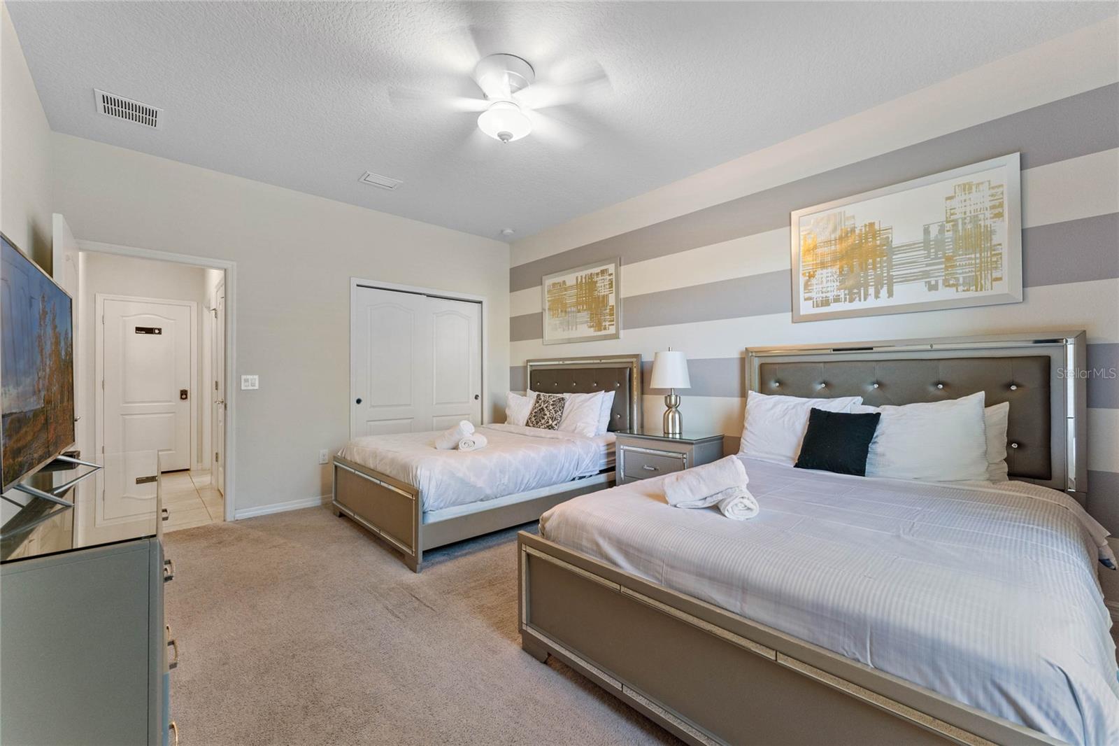 Welcome to this beautifully designed and fully furnished vacation retreat in the sought-after Windsor at Westside Resort! This bright and spacious home is perfect for entertaining or relaxing after a day exploring Central Florida. With themed bedrooms, multiple en suite rooms, and a large open-concept living space, there's plenty of room for everyone to spread out and enjoy.The kitchen features an oversized island that flows seamlessly into the dining and living areas—ideal for hosting family and friends. Step outside to your south-facing pool and spa, offering privacy and tranquility. Upstairs, you'll find a versatile loft with new wallpaper perfect for movie nights or game time. This home is not only stunning but also a smart investment, having generated over $70K in gross revenue in the last years. Future bookings are already in place for an easy start. Located just minutes from world-class golf, shopping, restaurants, and Orlando’s top attractions, Windsor Island Resort also offers unbeatable amenities. Enjoy the resort-style clubhouse, lazy river, splash pad, waterslides, tiki bar, sports courts, fitness center, and 24/7 guard-gated entry. HOA perks include cable, internet, valet trash service, and beautifully maintained landscaping.Whether you’re searching for a vacation home or an investment property, this is a rare opportunity to own in one of the area’s top communities. Paradise awaits!