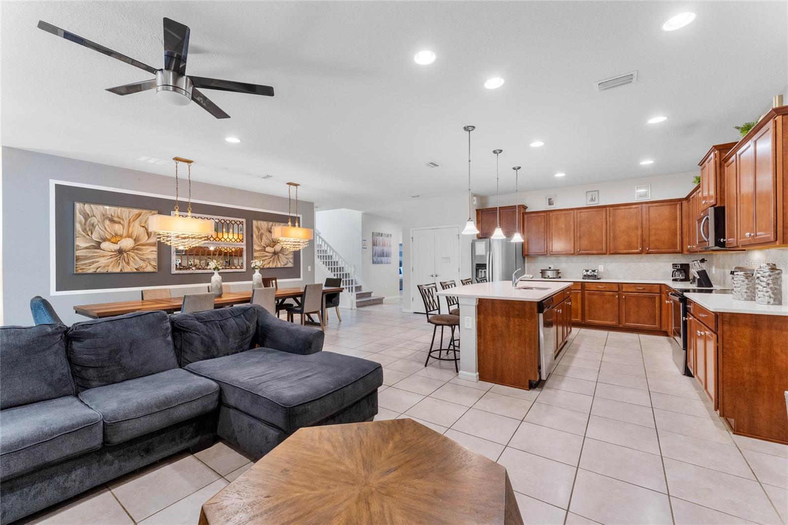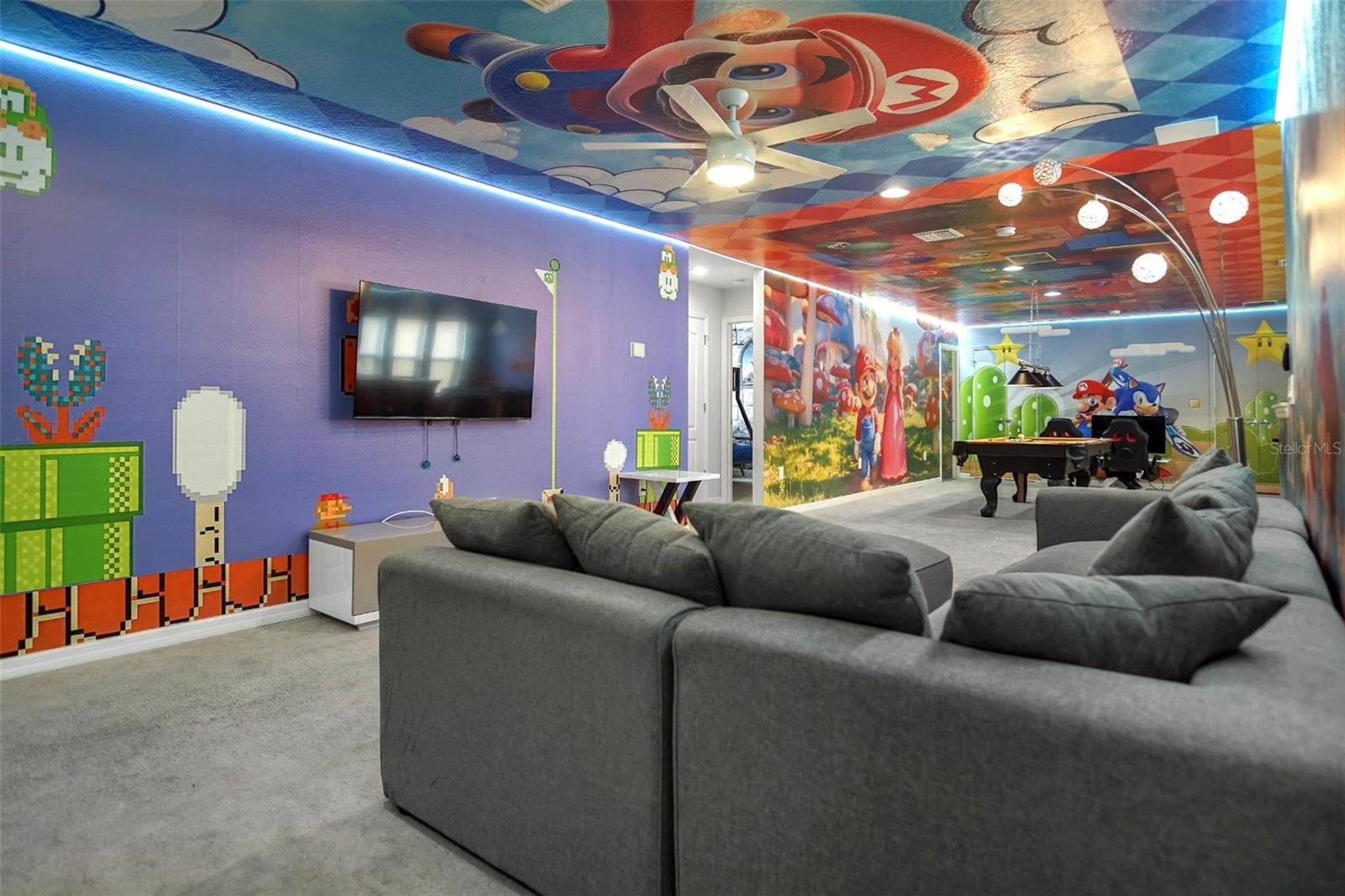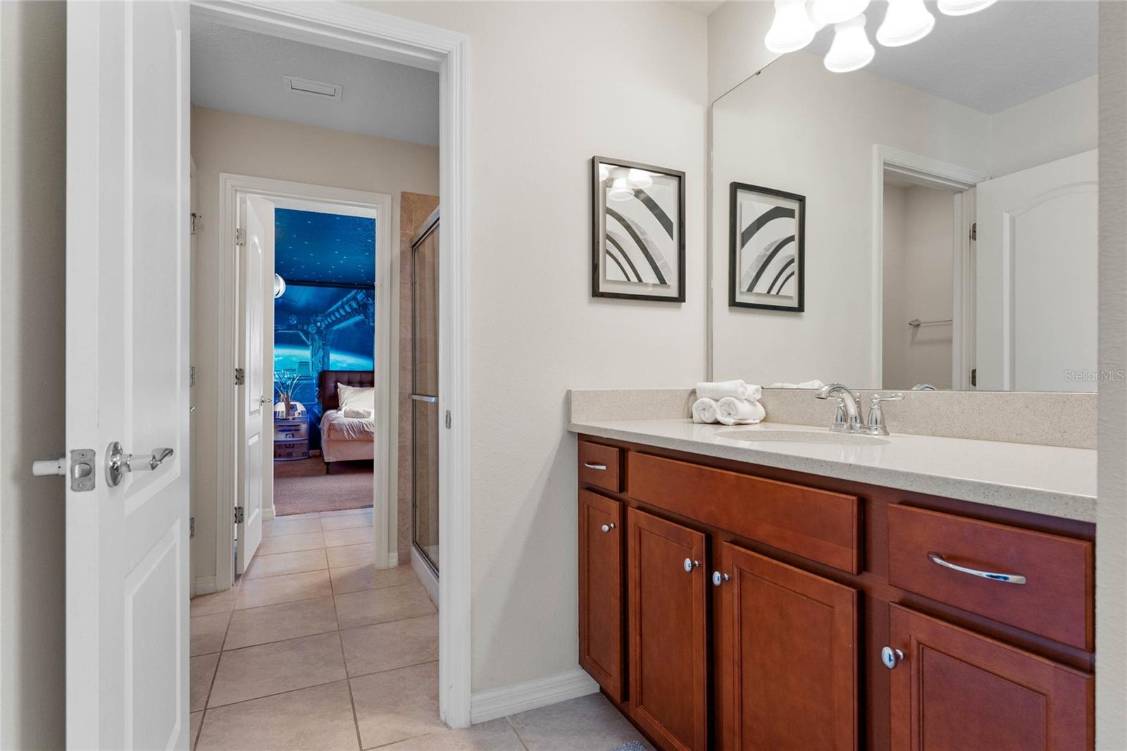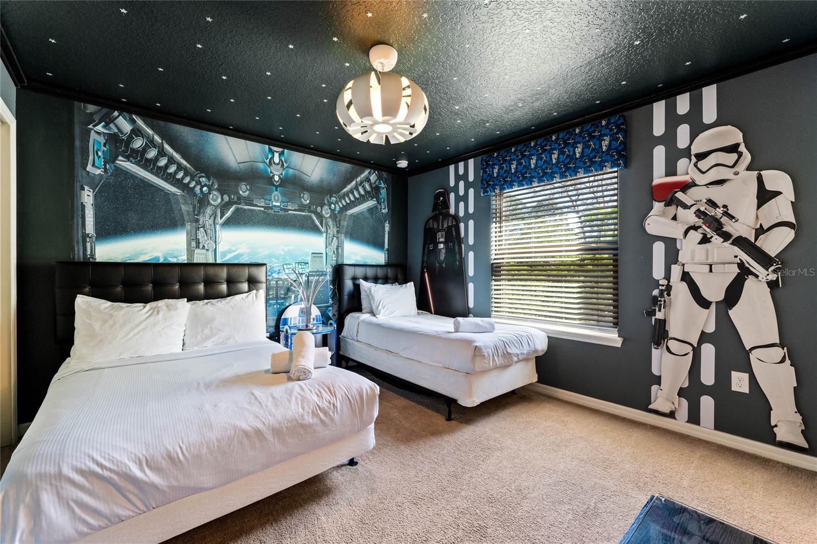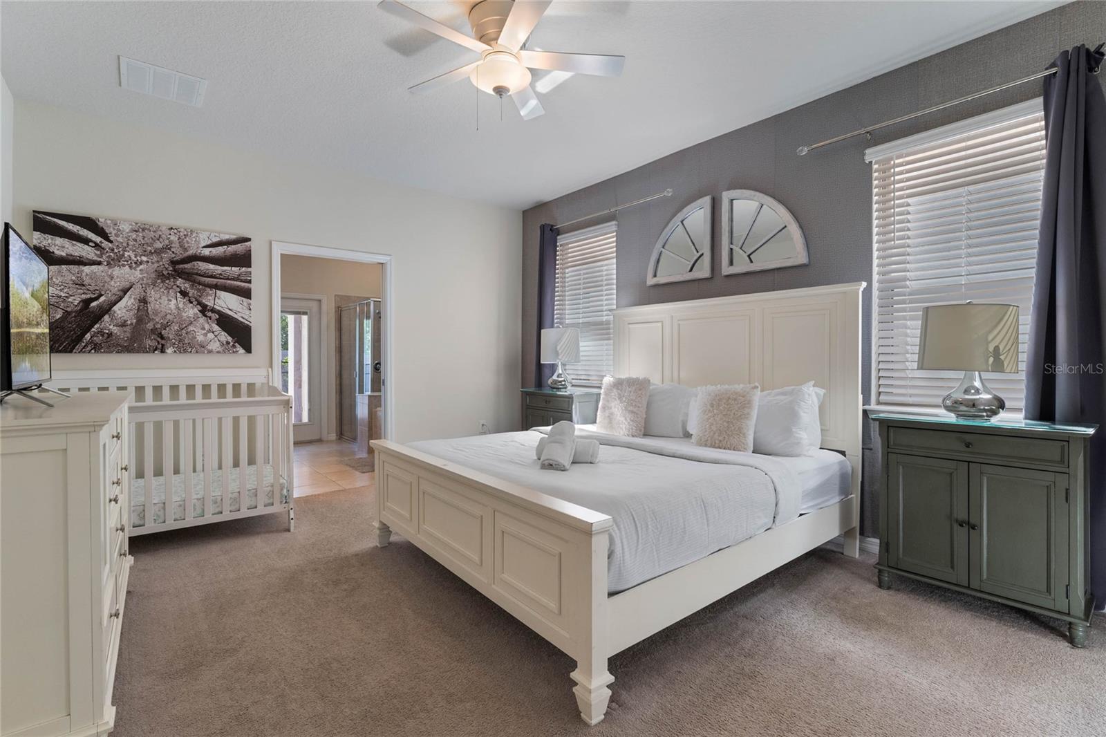 Welcome to this beautifully designed and fully furnished vacation retreat in the sought-after Windsor at Westside Resort! This bright and spacious home is perfect for entertaining or relaxing after a day exploring Central Florida. With themed bedrooms, multiple en suite rooms, and a large open-concept living space, there's plenty of room for everyone to spread out and enjoy.The kitchen features an oversized island that flows seamlessly into the dining and living areas—ideal for hosting family and friends. Step outside to your south-facing pool and spa, offering privacy and tranquility. Upstairs, you'll find a versatile loft with new wallpaper perfect for movie nights or game time. This home is not only stunning but also a smart investment, having generated over $70K in gross revenue in the last years. Future bookings are already in place for an easy start. Located just minutes from world-class golf, shopping, restaurants, and Orlando’s top attractions, Windsor Island Resort also offers unbeatable amenities. Enjoy the resort-style clubhouse, lazy river, splash pad, waterslides, tiki bar, sports courts, fitness center, and 24/7 guard-gated entry. HOA perks include cable, internet, valet trash service, and beautifully maintained landscaping.Whether you’re searching for a vacation home or an investment property, this is a rare opportunity to own in one of the area’s top communities. Paradise awaits!