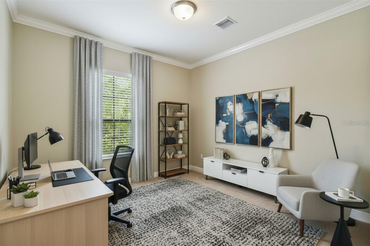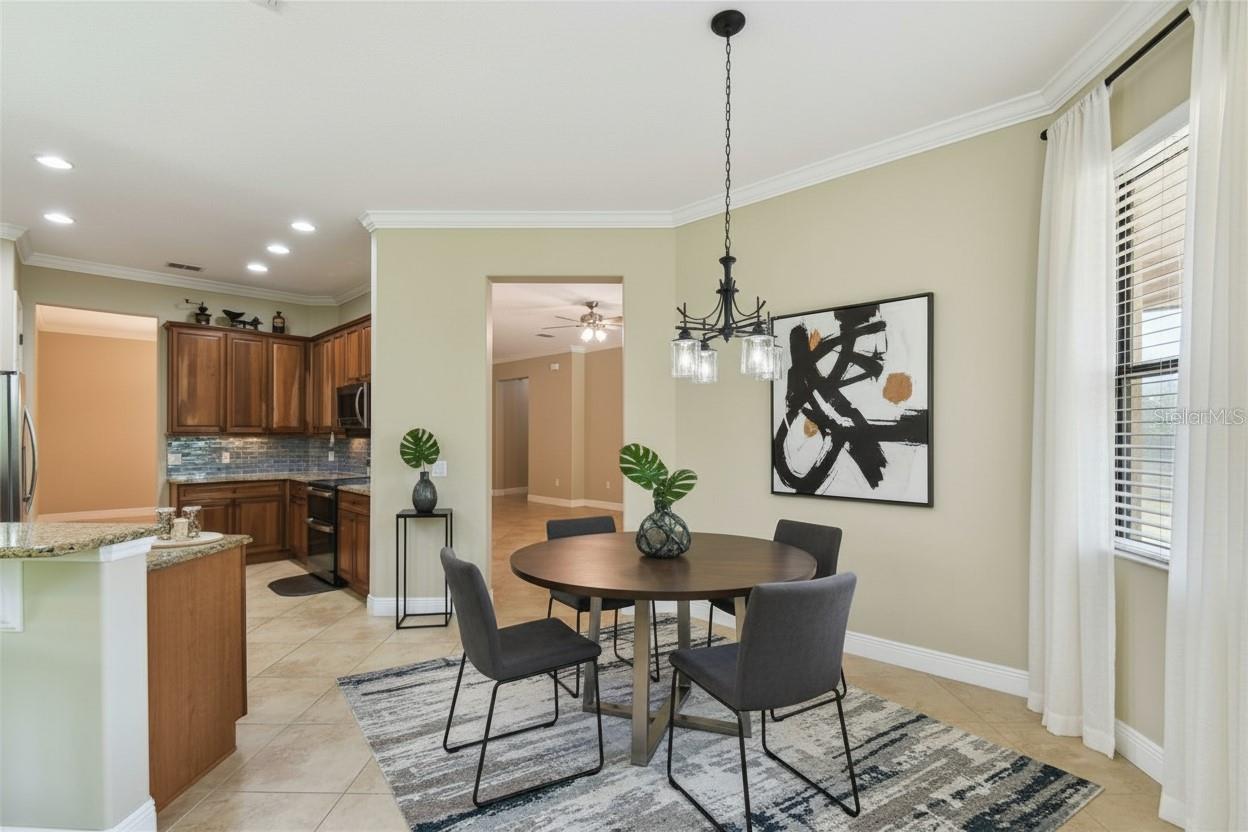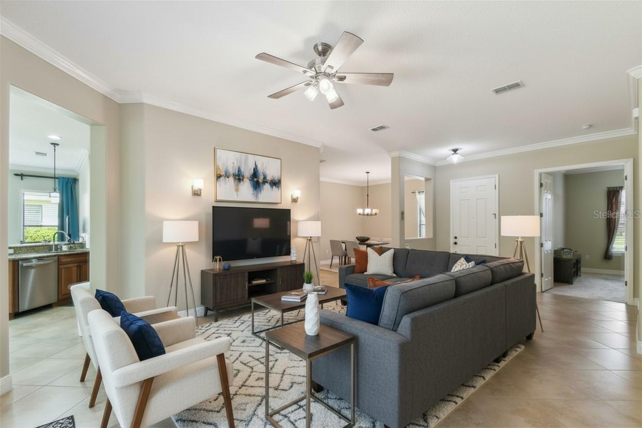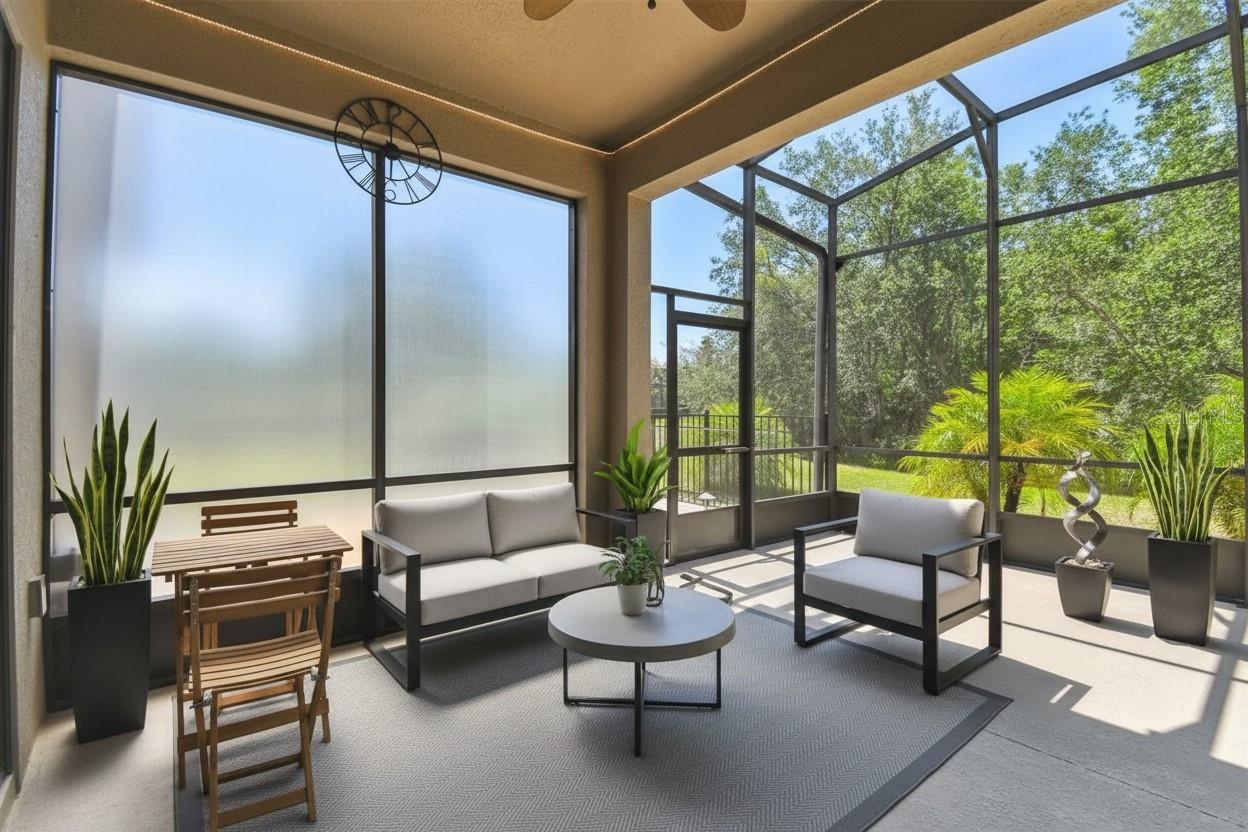 One or more photo(s) has been virtually staged. PRICE REDUCTION! Welcome to this beautifully designed Marseille model, featuring 2 bedrooms, 2.5 bathrooms, a Florida room, den/study, dining room, and breakfast nook. Situated on an oversized conservation lot in a quiet and peaceful neighborhood, this home offers the perfect combination of comfort, style, and convenience, just moments away from the Palms Amenity Center. From the moment you arrive, you’ll be impressed by the custom upgraded landscaping and exterior lighting that enhance the home’s curb appeal. The large driveway leads to a spacious 2-car garage with an additional golf cart garage, providing ample parking and storage options. Step inside to discover a thoughtfully designed interior with diagonal tile flooring and crown molding throughout the main living areas. The open floor plan creates a seamless flow between spaces, making it ideal for both relaxing and entertaining. The den/study provides a versatile space that can be used as a home office, library, or hobby room, while the dedicated dining room and breakfast nook offer multiple options for dining and gathering. The heart of the home is the custom kitchen, which features granite countertops, a stylish tile backsplash, and an eat-at bar for casual dining. This well-appointed space is perfect for preparing meals and entertaining guests, with plenty of counter space and storage to meet your needs. The large primary bedroom is a true retreat, offering a tranquil space to unwind at the end of the day. It boasts an en-suite bathroom with a luxurious custom shower, dual vanities, and a convenient knee makeup space. The second bedroom is equally inviting, providing comfortable accommodations for guests or family members. One of the standout features of this home is the Florida room, which offers additional living space with plenty of natural light and a peaceful ambiance. Step outside to the screened lanai and fenced patio, where you can enjoy the serene conservation views and outdoor living at its finest. The patio features a cooling misting system, perfect for staying comfortable during warm Florida days. HVAC system with UV Filter (2021) and Water Heater (2021) can be controlled by a app on your phone. Newer range and dishwasher 2023. This home is ideally located near the Palms Amenity Center, offering access to top-notch community amenities, including fitness facilities, pools, pickleball courts, and social activities. Whether you’re enjoying the tranquility of your oversized conservation lot or taking advantage of the vibrant community lifestyle, this home truly has something for everyone. Don’t miss the opportunity to own this exceptional Marseille model, loaded with custom upgrades and located in a quiet neighborhood. All this in one of the top 55+ communities in America. Solivita offers residents access to state of the art amenities and work out facilities, dance and aerobics studios, 14 heated swimming pools, 2 heated spas, tennis courts, pickleball courts, softball, shuffleboard, bocce ball, billiards room, art gallery, 3 restaurants and 2 championship 18-hole golf courses.