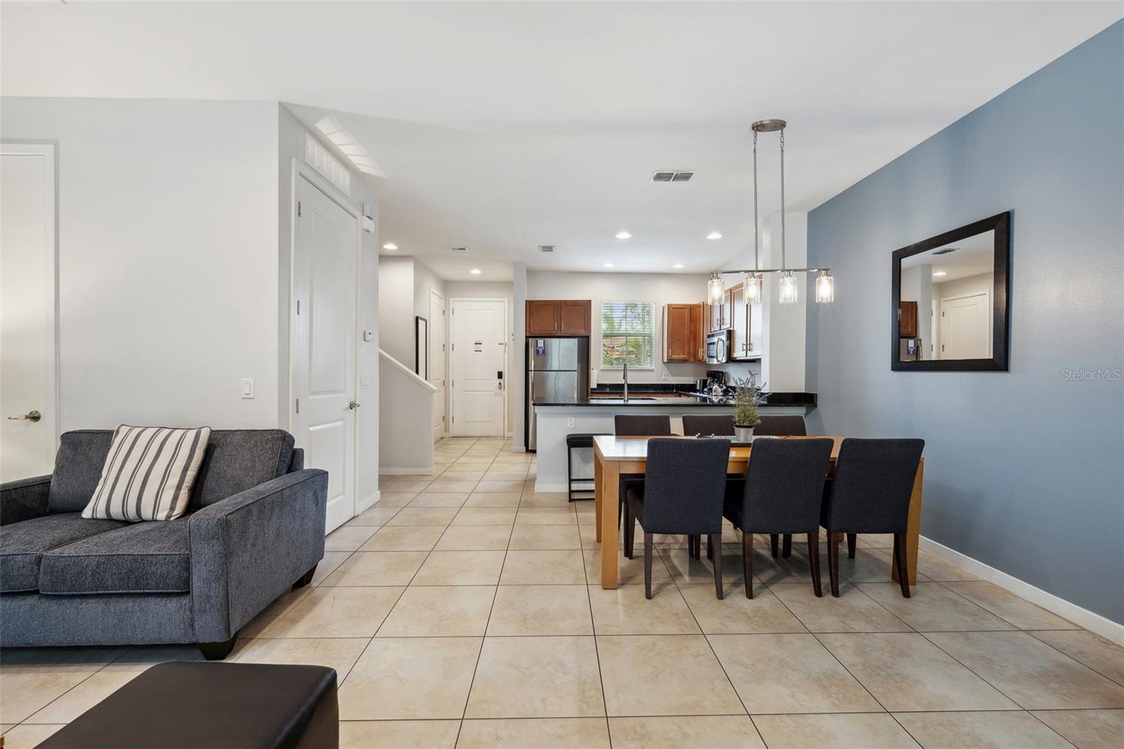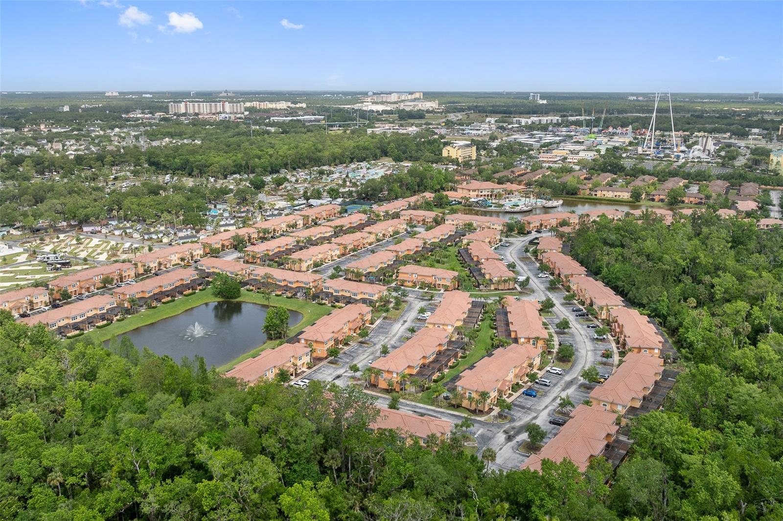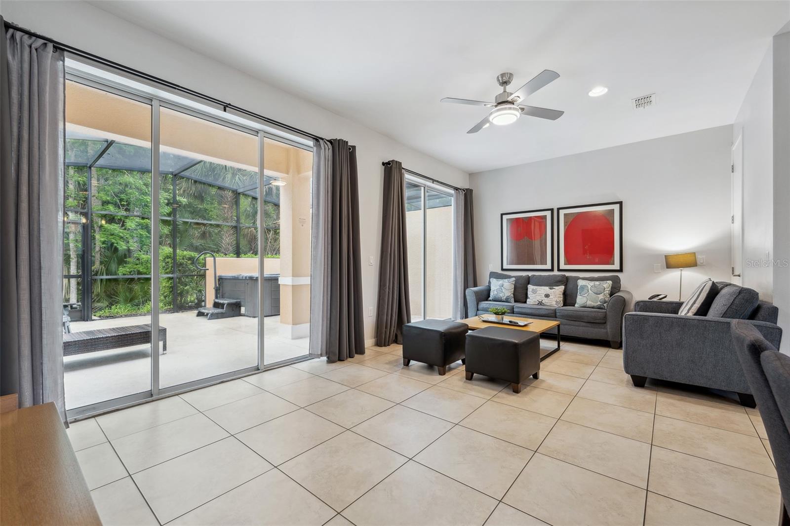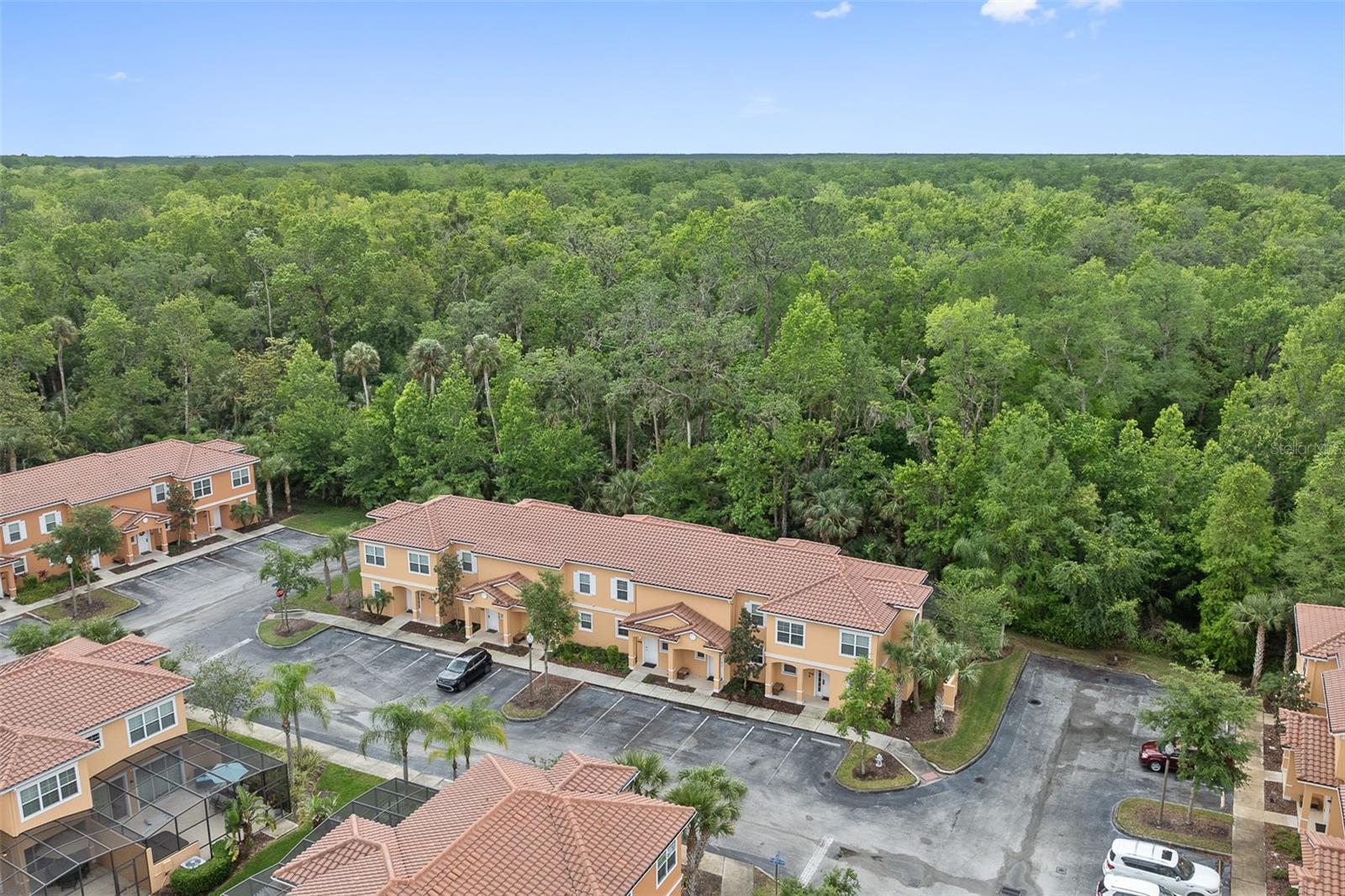 Welcome to your dream getaway or income-producing gem in the heart of Central Florida! This beautifully appointed 2-bedroom, 2.5-bath townhome is located in the guard-gated community of Regal Oaks at Old Town—just steps from the thrills of Old Town and minutes to Disney, Universal Studios, and International Drive. Offered fully furnished with above-average furnishings, this turnkey property is ready to impress both vacationers and investors alike. Whether you're seeking a stylish retreat or a short-term rental opportunity, this home checks all the boxes. Inside, you'll love the open-concept layout, enhanced by all hard flooring throughout—no carpet anywhere for a clean, low-maintenance lifestyle. The main level features sleek tile floors, a spacious living and dining area, and a well-equipped kitchen with solid wood cabinets, granite countertops, modern appliances, and a cozy breakfast nook. Upstairs, you’ll find two large en-suite bedrooms, each offering comfort, privacy, and style—ideal for guests or multiple occupants. Step outside to your private, screened-in patio, where a Jacuzzi hot tub and elevated outdoor furniture create the perfect retreat. This townhome also boasts an outstanding rear view and added privacy, as it backs directly to lush conservation land—offering a peaceful setting with no rear neighbors. As a center unit, the home enjoys added tranquility and is surrounded by beautifully maintained grounds. Regal Oaks delivers resort-style amenities including a zero-entry pool with private cabanas, tennis courts, fitness center, clubhouse with full-service restaurant, game room, and scenic walking trails. The HOA covers cable TV, high-speed internet, exterior maintenance, valet trash service, pest control, and 24-hour gated security—making this a truly hassle-free ownership experience. With no minimum lease period, short-term rentals are fully allowed, giving you the flexibility to use this as a vacation home, full-time residence, or income-generating rental. And with very few fully furnished units with high-end finishes, conservation views, and this level of value, it’s a rare opportunity in one of the most in-demand areas near Disney.