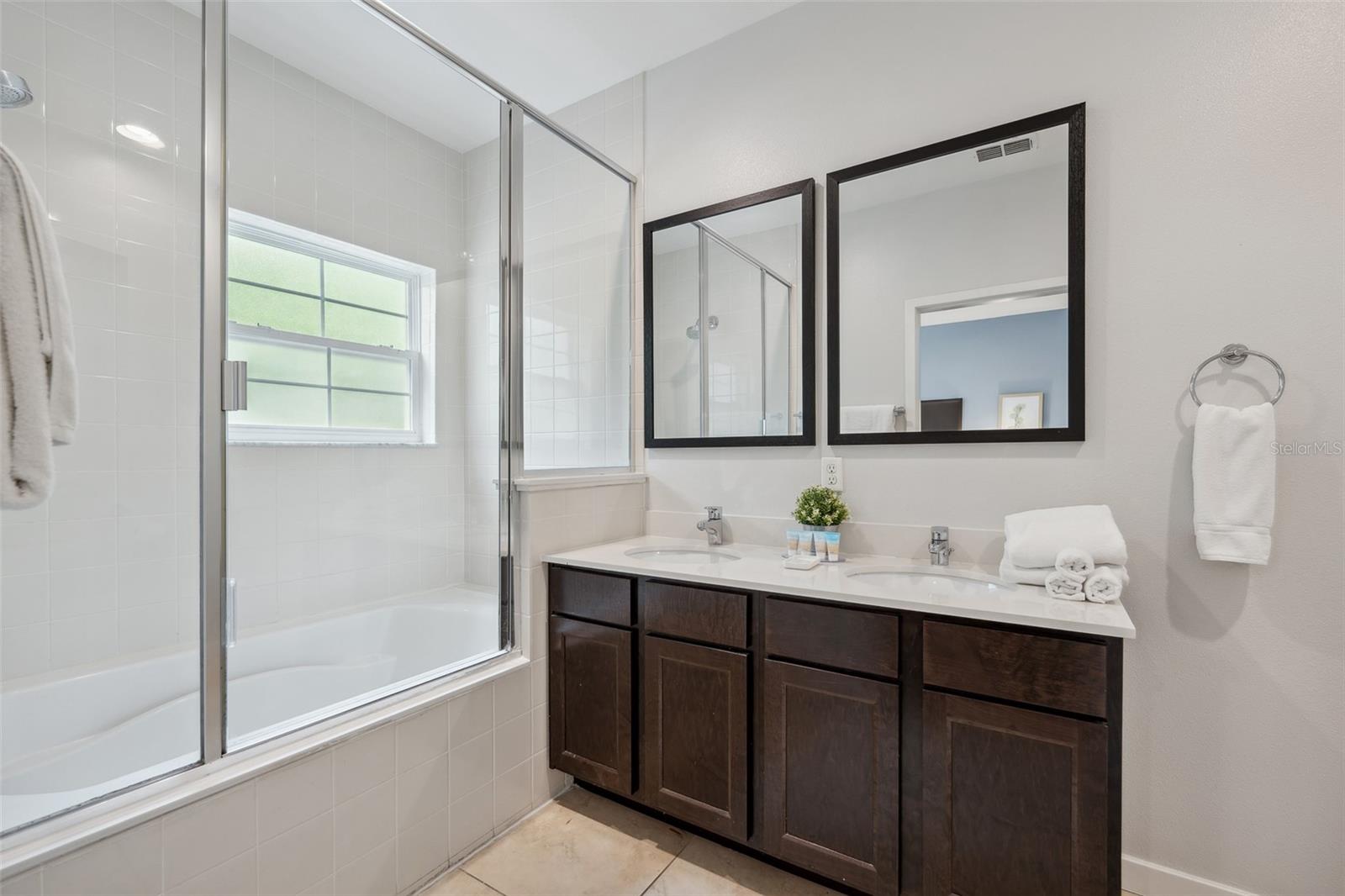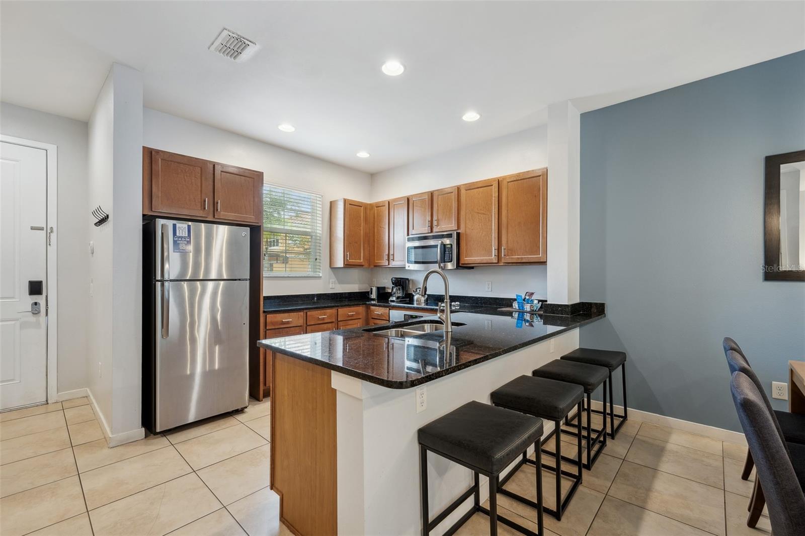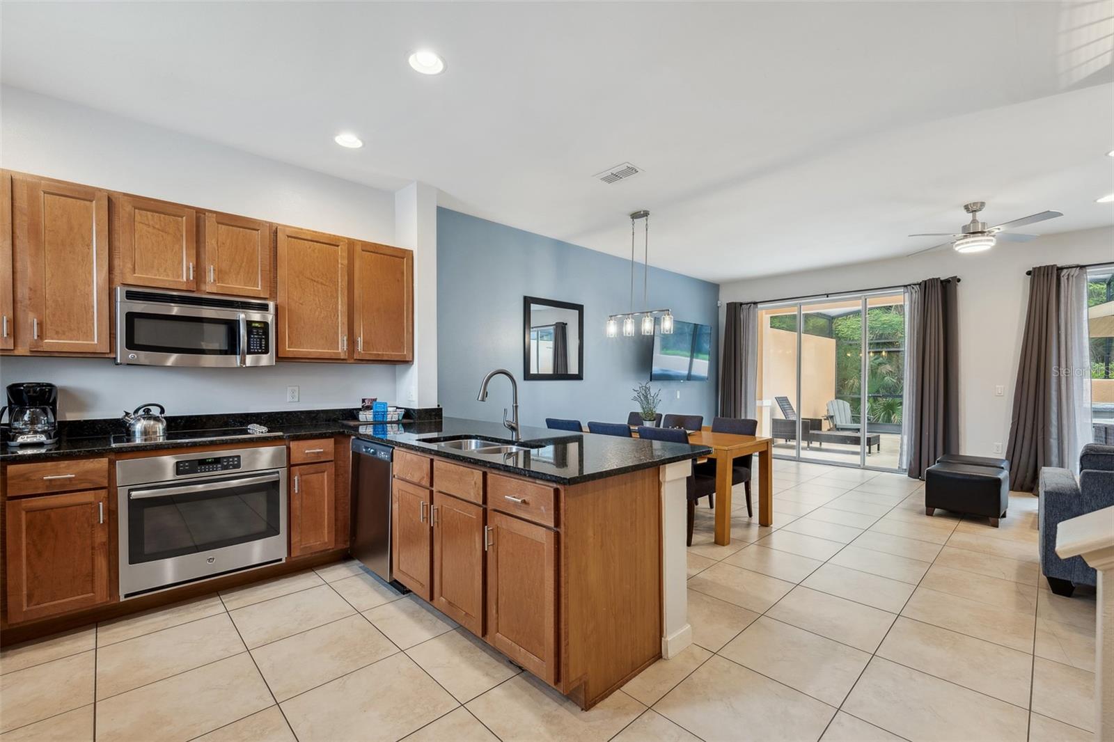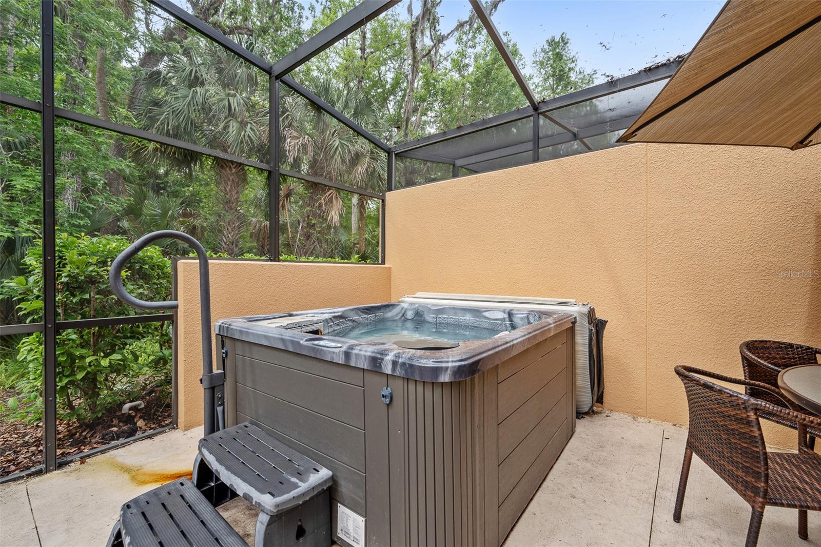 Welcome to your dream getaway or income-producing gem in the heart of Central Florida! This beautifully appointed 2-bedroom, 2.5-bath townhome is located in the guard-gated community of Regal Oaks at Old Town—just steps from the thrills of Old Town and minutes to Disney, Universal Studios, and International Drive. Offered fully furnished with above-average furnishings, this turnkey property is ready to impress both vacationers and investors alike. Whether you're seeking a stylish retreat or a short-term rental opportunity, this home checks all the boxes. Inside, you'll love the open-concept layout, enhanced by all hard flooring throughout—no carpet anywhere for a clean, low-maintenance lifestyle. The main level features sleek tile floors, a spacious living and dining area, and a well-equipped kitchen with solid wood cabinets, granite countertops, modern appliances, and a cozy breakfast nook. Upstairs, you’ll find two large en-suite bedrooms, each offering comfort, privacy, and style—ideal for guests or multiple occupants. Step outside to your private, screened-in patio, where a Jacuzzi hot tub and elevated outdoor furniture create the perfect retreat. This townhome also boasts an outstanding rear view and added privacy, as it backs directly to lush conservation land—offering a peaceful setting with no rear neighbors. As a center unit, the home enjoys added tranquility and is surrounded by beautifully maintained grounds. Regal Oaks delivers resort-style amenities including a zero-entry pool with private cabanas, tennis courts, fitness center, clubhouse with full-service restaurant, game room, and scenic walking trails. The HOA covers cable TV, high-speed internet, exterior maintenance, valet trash service, pest control, and 24-hour gated security—making this a truly hassle-free ownership experience. With no minimum lease period, short-term rentals are fully allowed, giving you the flexibility to use this as a vacation home, full-time residence, or income-generating rental. And with very few fully furnished units with high-end finishes, conservation views, and this level of value, it’s a rare opportunity in one of the most in-demand areas near Disney.