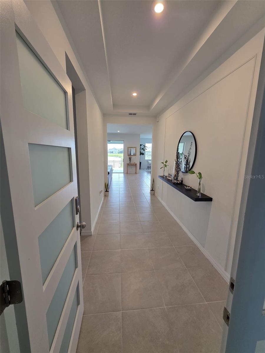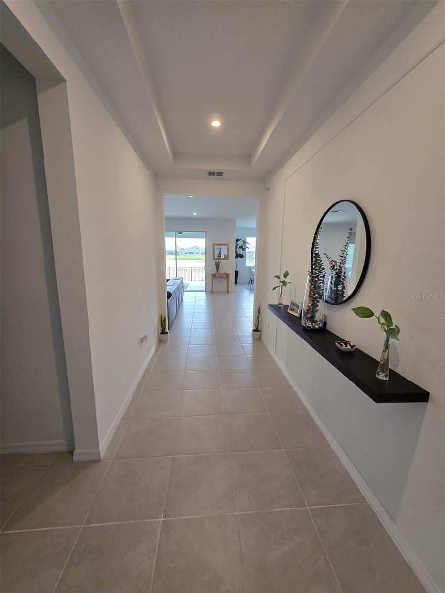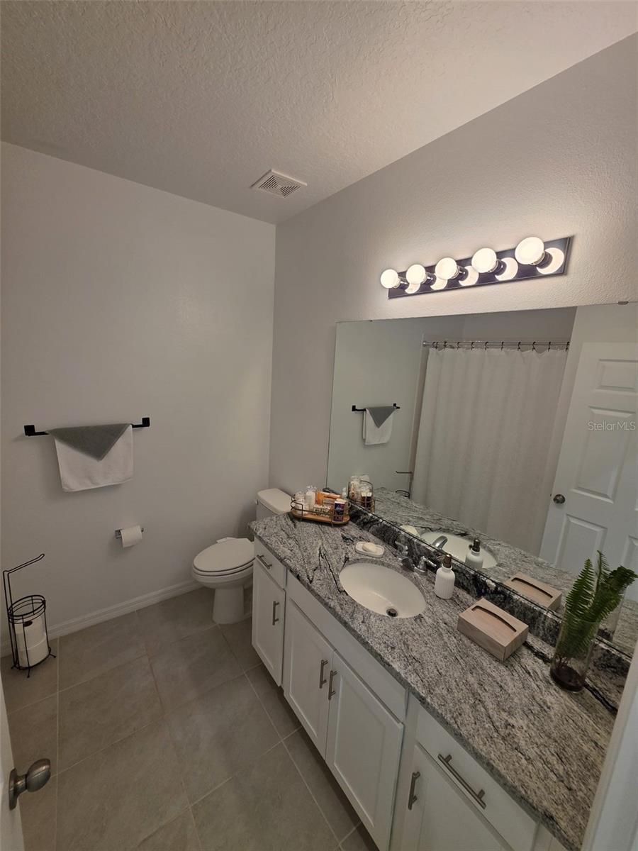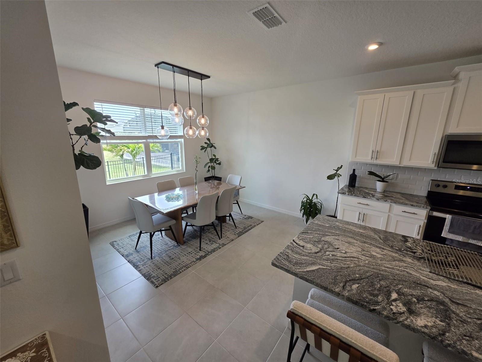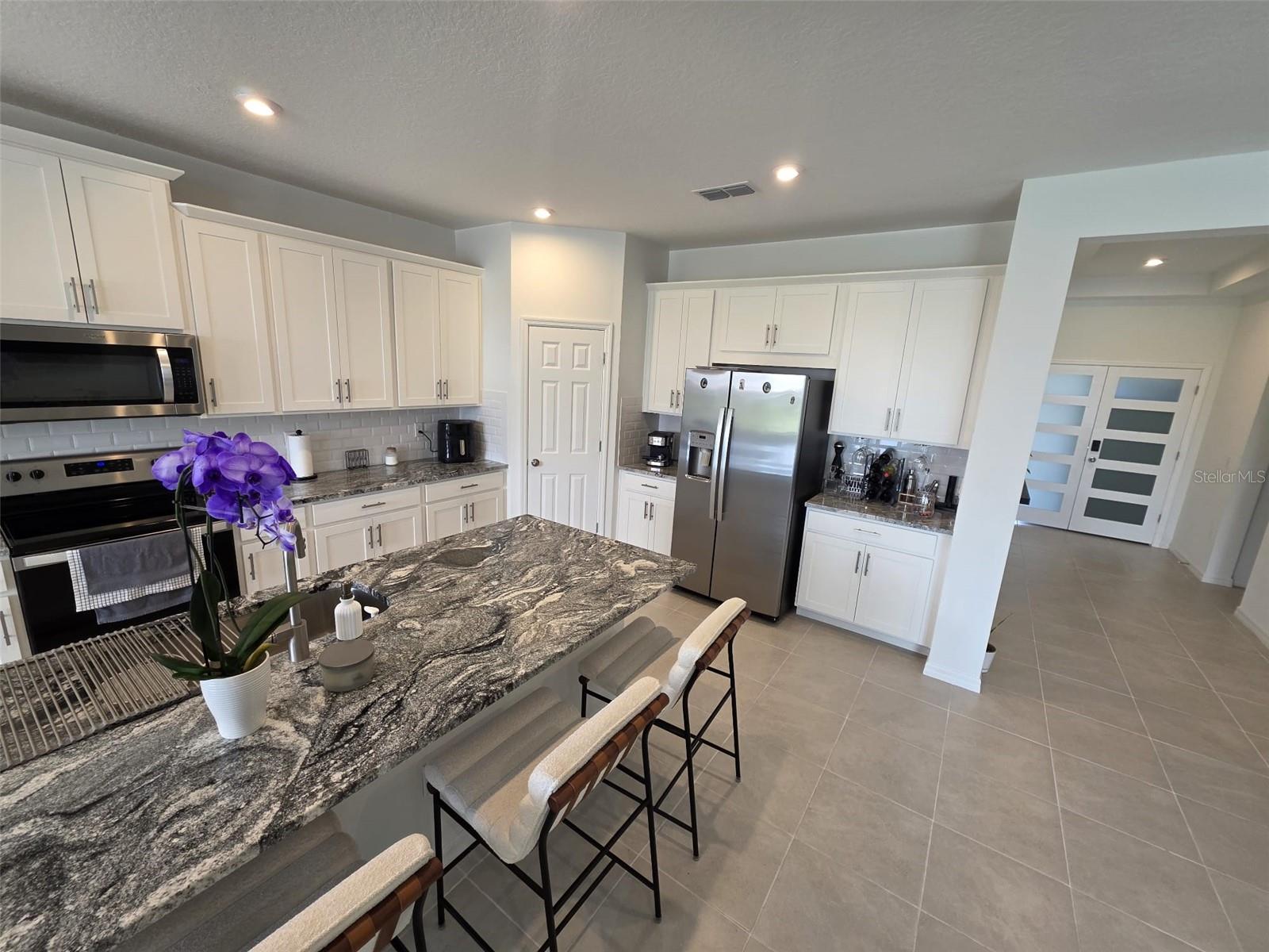 This single story home newly built in 2021 offers 2,500 square feet of living space with 4 beds and 3 baths. The open concept floor plan and high ceilings, a bright and spacious living area with brand new stainless steel appliances. The kitchen contains a large island, granite counter tops, and 42” cabinets. An expansive bonus room offers flexible living space. The master bedroom faces the water and features a master bathroom with a walk in closet, dual vanity and glass shower. This house is equipped with a smart lock and smart thermostat. There is a large screened in lanai with water views perfect for enjoying the Florida sunshine. This house belongs to the Tohoqua community with access to a resort-style pool, clubhouse, fitness center, walking trails, two tennis courts and a playground. A new high school and K-8 school is being planned within Tohoqua. Located less than 30 minutes from Disney and Universal and less than 10 minutes to the Florida Turnpike.