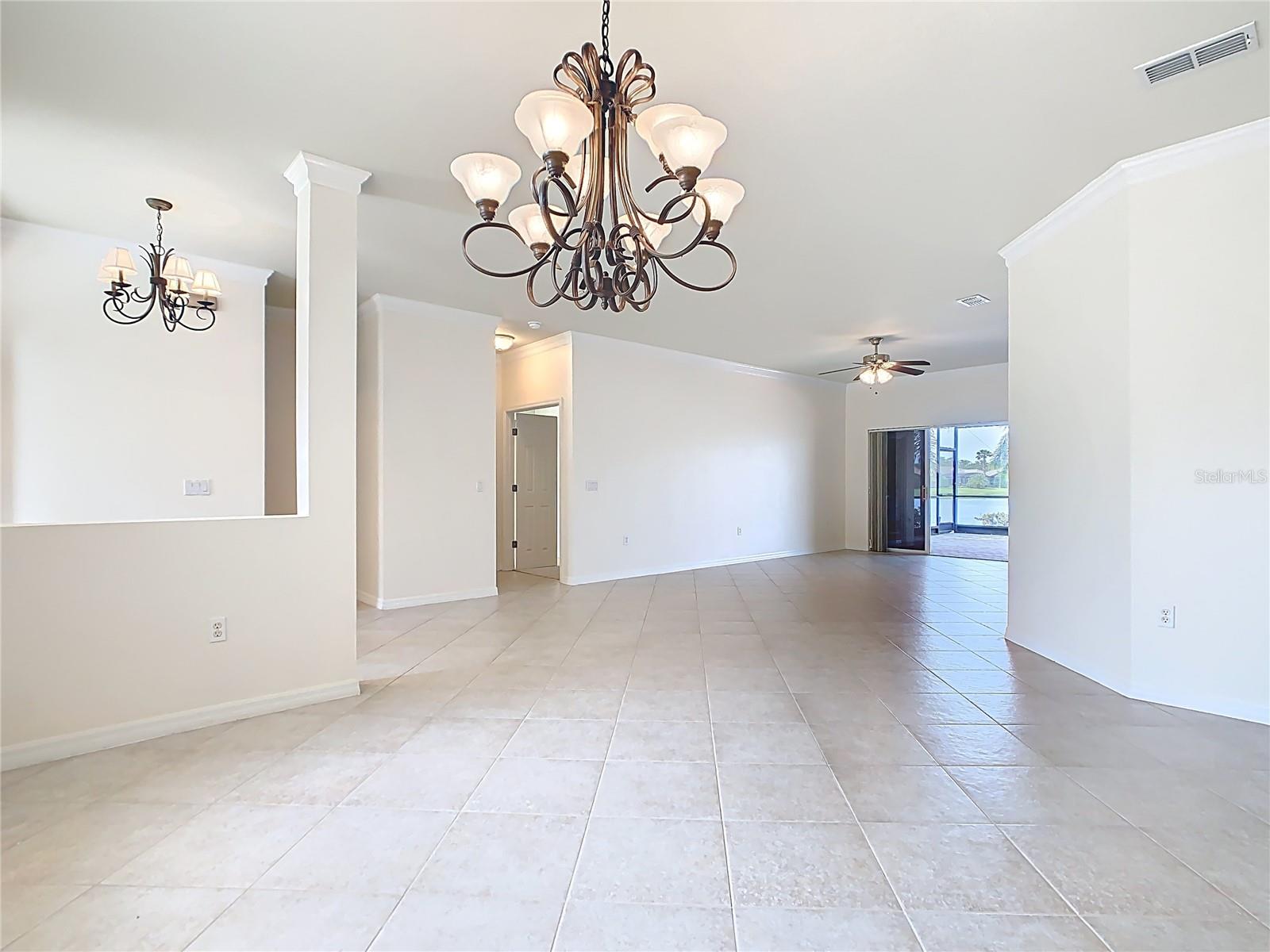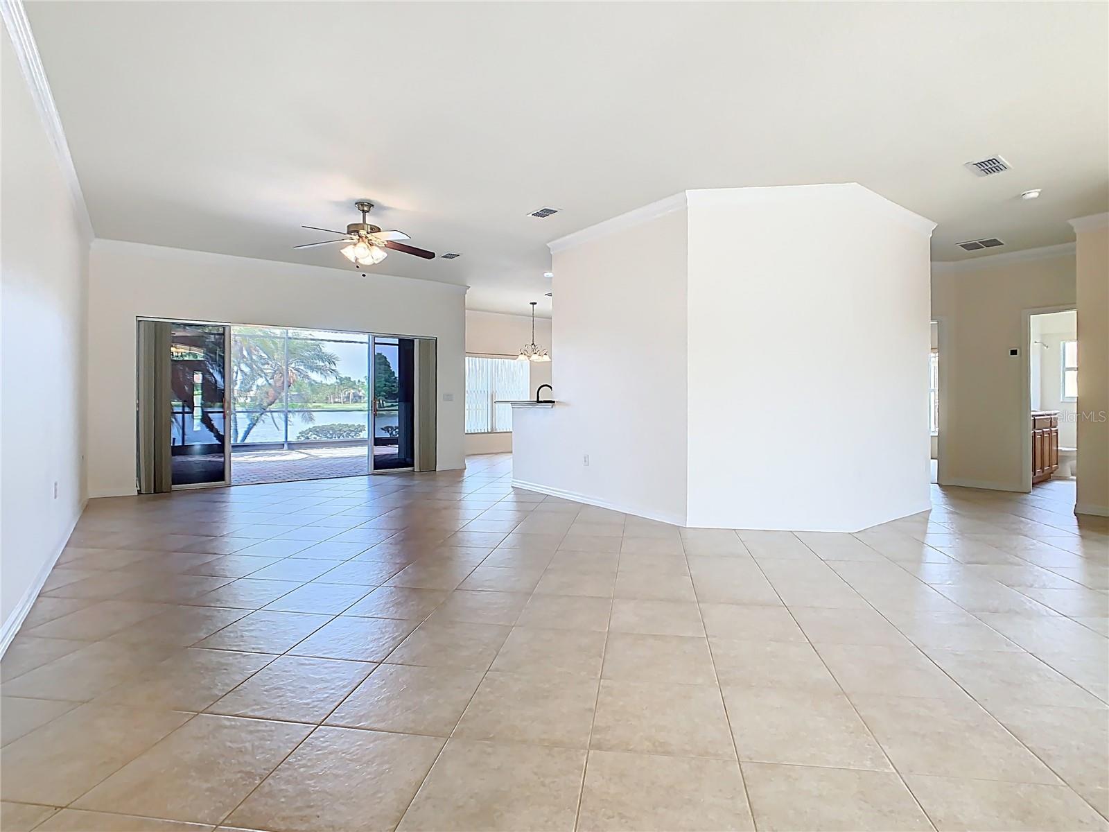 Under contract-accepting backup offers. Welcome Home to 644 Shorehaven Drive, a Tile Roof Mozart Model Home with a Fabulous Sweeping Water View of Shorehaven Lake in the Terra Vista Neighborhood of Solivita. This model is built with a side entry 2 Car Garage on over 1/5th of an acre. LOCATION, LOCATION, LOCATION - This home certainly has it! The large covered Front Porch is a great place for sitting and enjoying a visit with friends and neighbors. The Entry Door with Sidelight invites you into a spacious open plan with large lanai overlooking the water. The Tile floor is laid on the diagonal in all public areas. The Kitchen features 42” Maple Cabinetry with Granite Counters, and pull outs in all the lower cabinets. A solar tube streams in natural light. Casual Counter Top Kitchen Dining plus a Breakfast Nook surrounded by windows. This model has 2,344 sq feet of living space that includes 2 Bedrooms, 2.5 Baths, Living Room, Florida Room, Den, Dining Room and a Breakfast Nook. The Primary Suite has a Double Door Entry, Bay Window with a beautiful view, a generous walk-in closet plus a built-in closet for addtional storage, as well as a spacious bath with a walk-in shower, a garden tub and a large vanity with dual sinks and separate private WC. The Guest Bedroom is on the opposite side of the residence adjacent to the Guest Bath and provides privacy to both the owner and overnight visitors. Lots of public space with a Den, Florida Room and a Great Room. Open Plan and Modern, the bones of this model are amazing and with a few of your own touches this home will be the home of your dreams. The Covered and Screened Lanai with sliders from the Living Room, Primary Suite, Florida Room and Breakfast Nook overlooks the sparkling lake extending your living and entertaining space. Love to grill outdoors, a paver patio has been added enhancing your enjoyment of this beautiful property. Solivita is an award winning 55 PLUS Golf Cart Community with over 4300 acres and 5500 homes featuring 2 18 hole Championship Golf Courses, Aquatic Driving Range, Practice Area and Pro Shop, 2 State of the Art Fitness Centers with equipment, classes and trainers. Join any of our over 200 clubs, learn a new sport ….bocce, pickleball, tennis, softball, shuffleboard, take a class at Solivita University or meet friends for a drink or a meal at Stonegate Grille, Mosaics or the Bisto. Shop at K&M, our hometown pharmacy/sundries store or twice weekly market. The HOA includes security, lawncare and irrigation throughout the community as well as fiber optics for internet and television. Across the street from the main entrance are a hospital and medical facilities as well as Poinciana Plaza Shopping Center featuring Sprouts Market, TJMaxx, Ross, Ulta Beauty, Hand and Stone, Burlingtons, 5Below, Panda Express, Outback Steakhouse and more to come! Looking for a great home to make your own, call for an appointment to view this home and start enjoying the Solivita lifestyle you deserve!