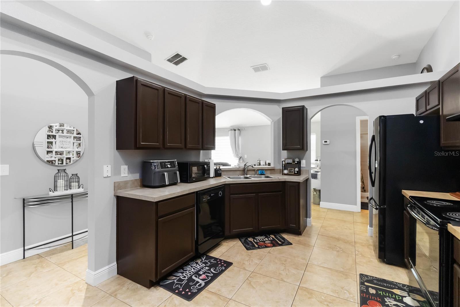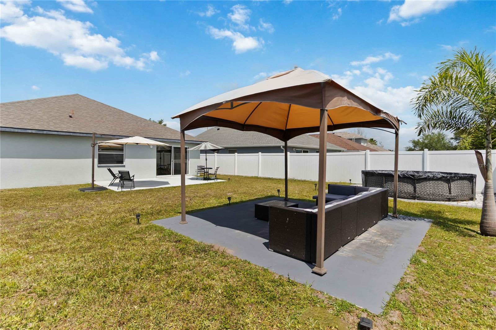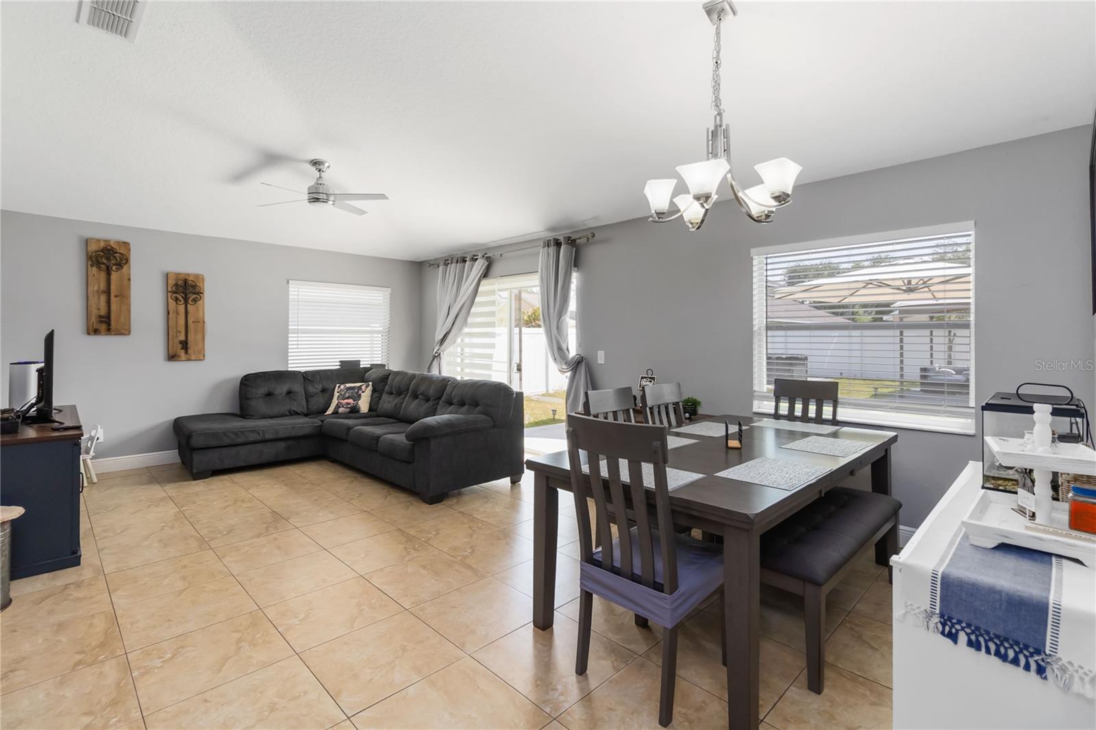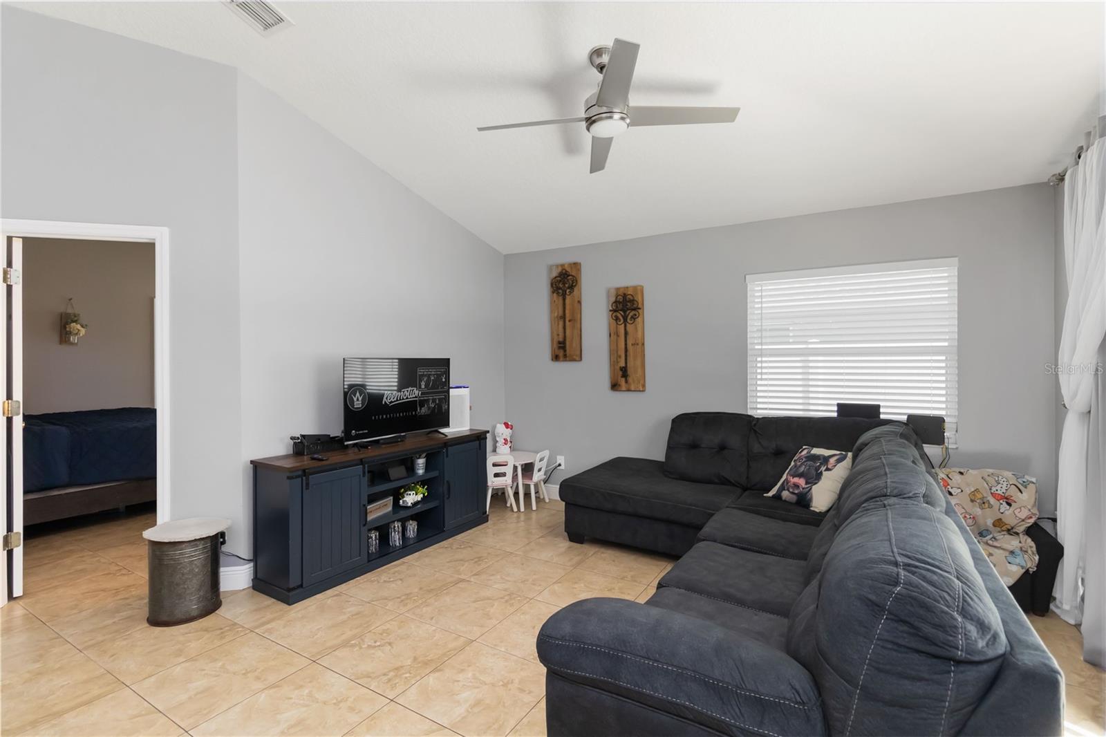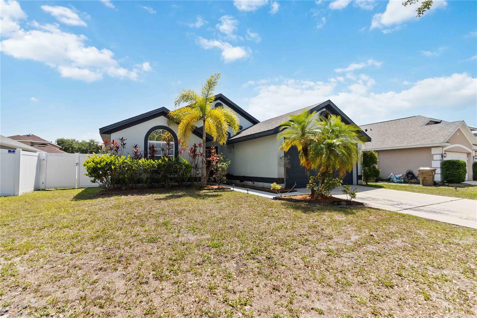PRICE REDUCTION! Welcome Home! Step into this beautifully maintained 3-bedroom, 2-bath home with a dedicated home office and a serene outdoor oasis right outside your back door. Ideally located just minutes from Lake Nona, Medical City, the VA Hospital, and Boxi Park, this gem offers the perfect blend of comfort, convenience, and modern style. From the moment you walk in, you'll love the sleek tile flooring throughout, providing both durability and timeless elegance in every room. The spacious kitchen is ideal for holiday cooking and family gatherings, making it the heart of the home. The primary suite is your private retreat, complete with a thoughtfully designed en-suite bathroom featuring a separate tub and shower. The two additional bedrooms are located on the opposite side of the home for added privacy, and the guest bath has been fully upgraded for your visitors' comfort. Half of the garage has been converted into an efficient bonus space—perfect for a private office or guest suite. Step out back and you’ll find a large, fenced-in yard enclosed by modern vinyl fencing, creating a secure and private setting for summer get-togethers, entertaining, and plenty of room to store your BBQ grill or lawn equipment. Enjoy the added convenience of walking or biking to the community school and pool. Don't miss your chance to own this versatile and inviting home—schedule your private tour today! (Please note: Property is video monitored)