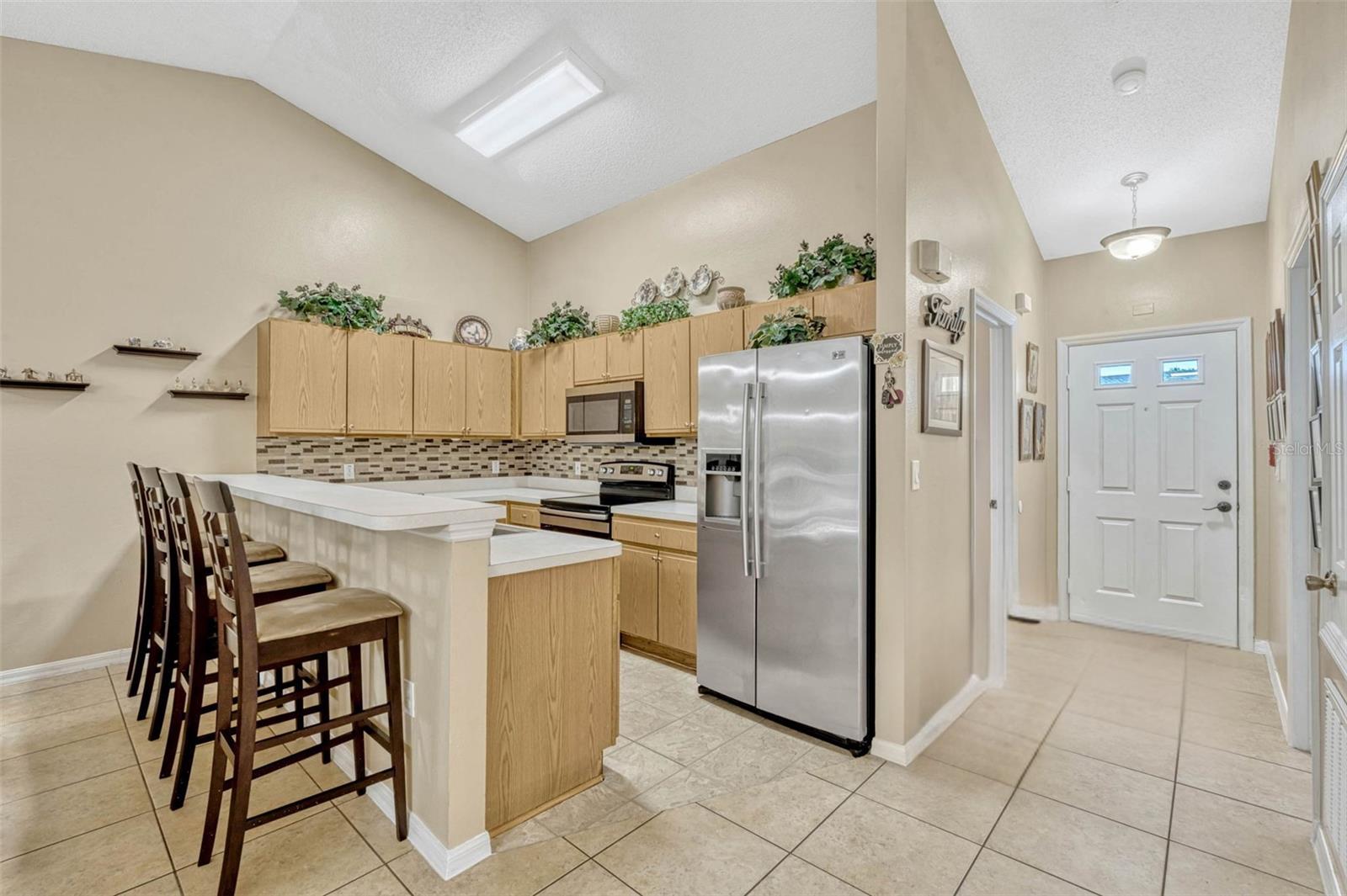 Charming 3-Bedroom Townhome in Jade East – Gated Community in Kissimmee, FL Welcome to 1150 Jade East Lane, a well-maintained 3-bedroom, 2-bath townhome in the sought-after gated community of Jade East in Kissimmee. This single-story home features 1,148 sq. ft. of open-concept living with vaulted ceilings, tile flooring in the main areas, and plush carpet in the bedrooms. The kitchen offers a breakfast bar, stainless steel appliances, and decorative backsplash, flowing seamlessly into the living and dining areas—perfect for easy entertaining. The primary suite includes a private bath and generous closet space. Relax in the screened lanai, surrounded by greenery and privacy. Enjoy in-unit laundry with washer/dryer, ceiling fans, and assigned parking just steps from your front door. This home is equipped with a brand-new home network system featuring Hi-Speed Ethernet Cat-6 cabling, providing enhanced internet connectivity in every room—ideal for remote work, streaming, and smart home devices. Centrally located with easy access to the Florida Turnpike, this property is also just a short drive from Orlando's world-famous theme parks and the MCO airport, making it a prime location for convenience and entertainment. Community perks include a sparkling pool, lush landscaping, and gated entry for peace of mind. Ideal for first-time buyers, downsizers, or snowbirds seeking low-maintenance living in a friendly neighborhood.