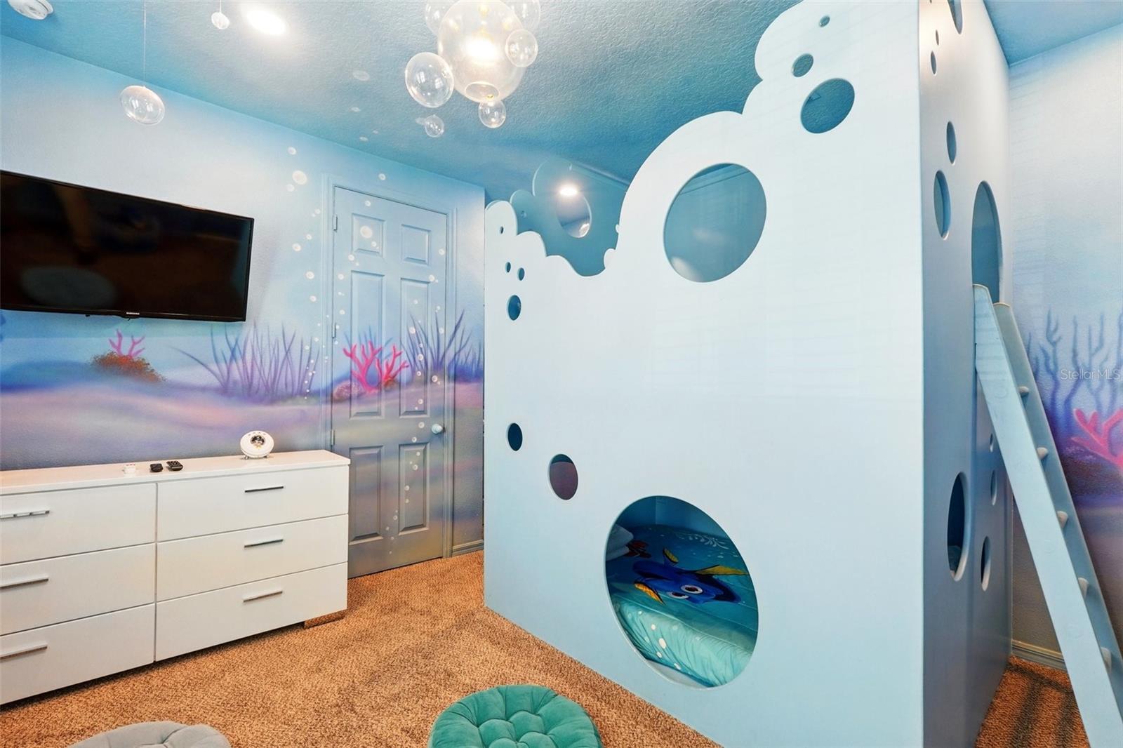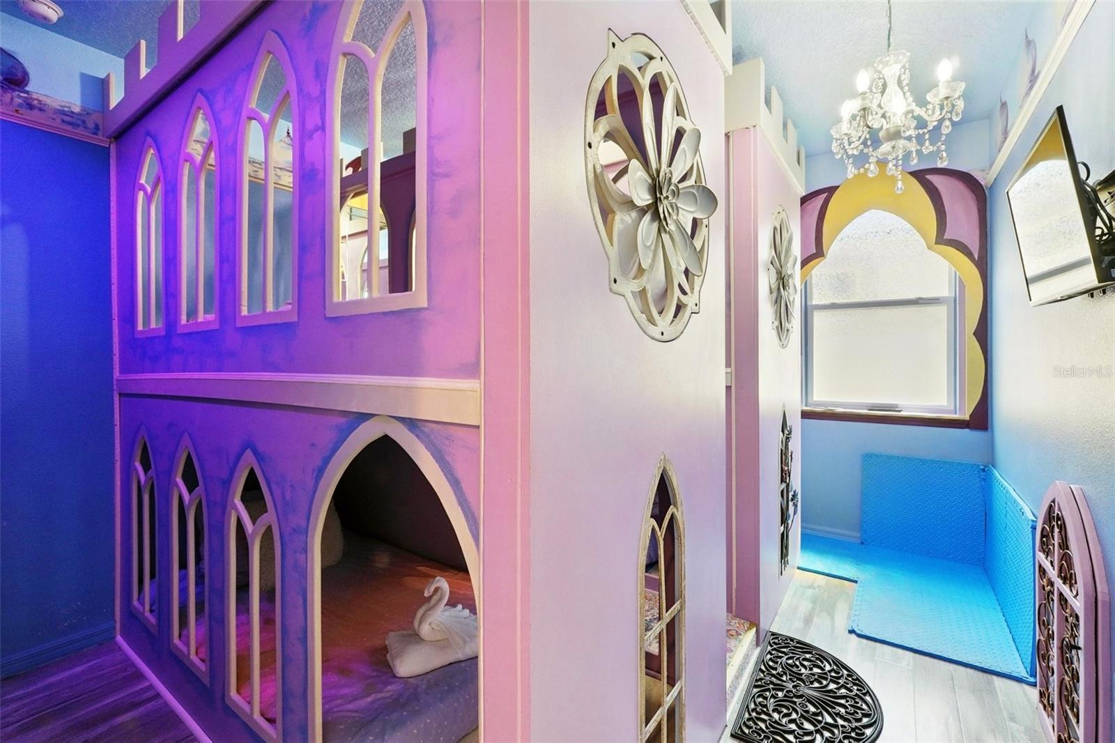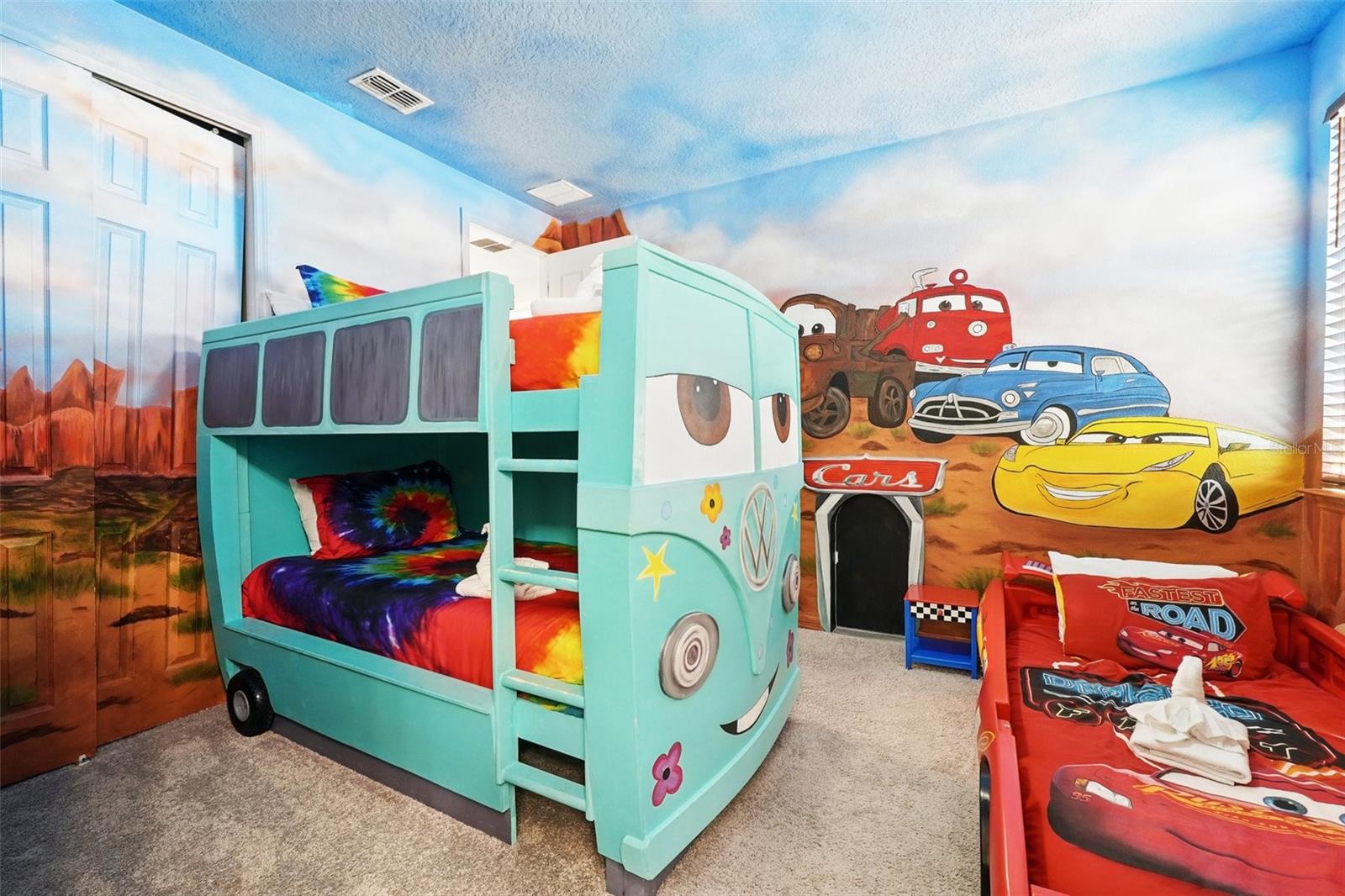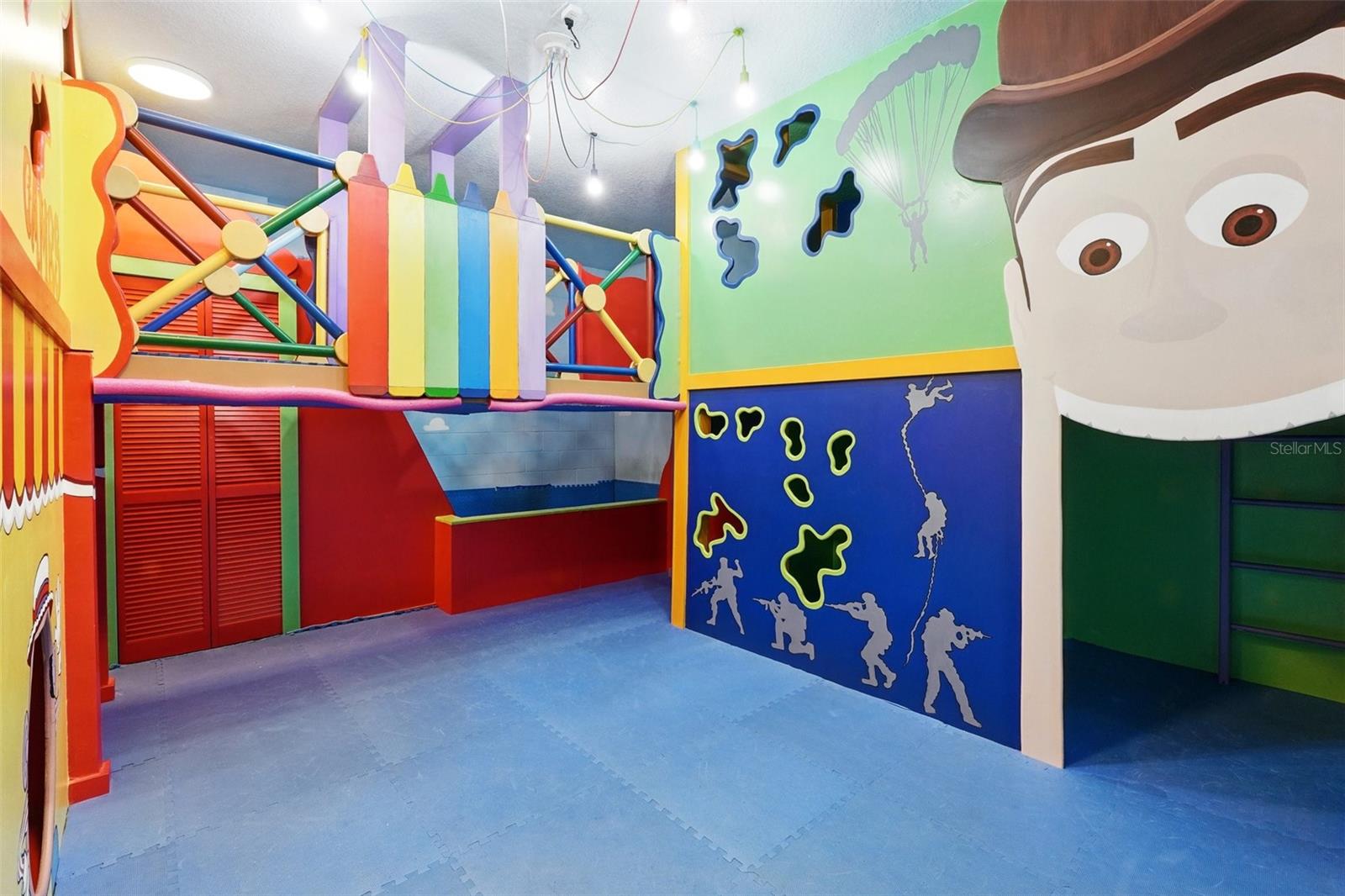 Experience the ultimate vacation retreat with this stunning 6-bedroom, 5-bathroom home in Solara Resort Near Disney, now offering nearly 4,200 sq ft of professionally designed living space under air. Just renovated in April 2025, the home features a freshly painted exterior and some interior, brand-new landscaping (installing next week), and a spectacular, fully built-out air-conditioned playroom in the converted Garage, which is now a Toy Story-themed padded play/romp room. No expense has been spared in crafting a magical experience for guests of all ages. The downstairs playroom includes padded flooring, a climbing rock wall, a ball pit, hidden coves, and bridges. Upstairs, three custom-themed children’s bedrooms are handcrafted with ‘Cars,’ Finding Nemo, and 'Beauty and the Beast' castle designs—complete with slides, bunk beds, multicolor lighting, and secret connecting doors for added fun. Fully turnkey and furnished, this home includes everything needed for your personal enjoyment or a high-performing short-term rental. The upstairs open loft offers even more entertainment with gaming consoles, a pool table, TV, and seating area. The screened-in, heated pool and spa are perfect for relaxing, with wide sliders connecting to the open-plan living room, dining area, and kitchen. Solara Resort offers top-tier amenities with a Huge Clubhouse including a surf simulator, enormous heated pool, splash pad, water slides, full-service restaurant/bar, fitness center, spa, Soccer Field, Volley ball and more. HOA covers daily trash pickup, high-speed internet, cable TV, full lawn service and irrigation care and 24/7 gated security. All current and future bookings convey with Vacasa Mgmt if the buyer stays with the current management. Don’t miss this rare opportunity—schedule your private showing today! 360 Tour: https://www.zillow.com/view-imx/7d84ced0-a1dc-4eee-ac43-ba4029f3c1f2?setAttribution=mls&wl=true&initialViewType=pano&utm_source=dashboard