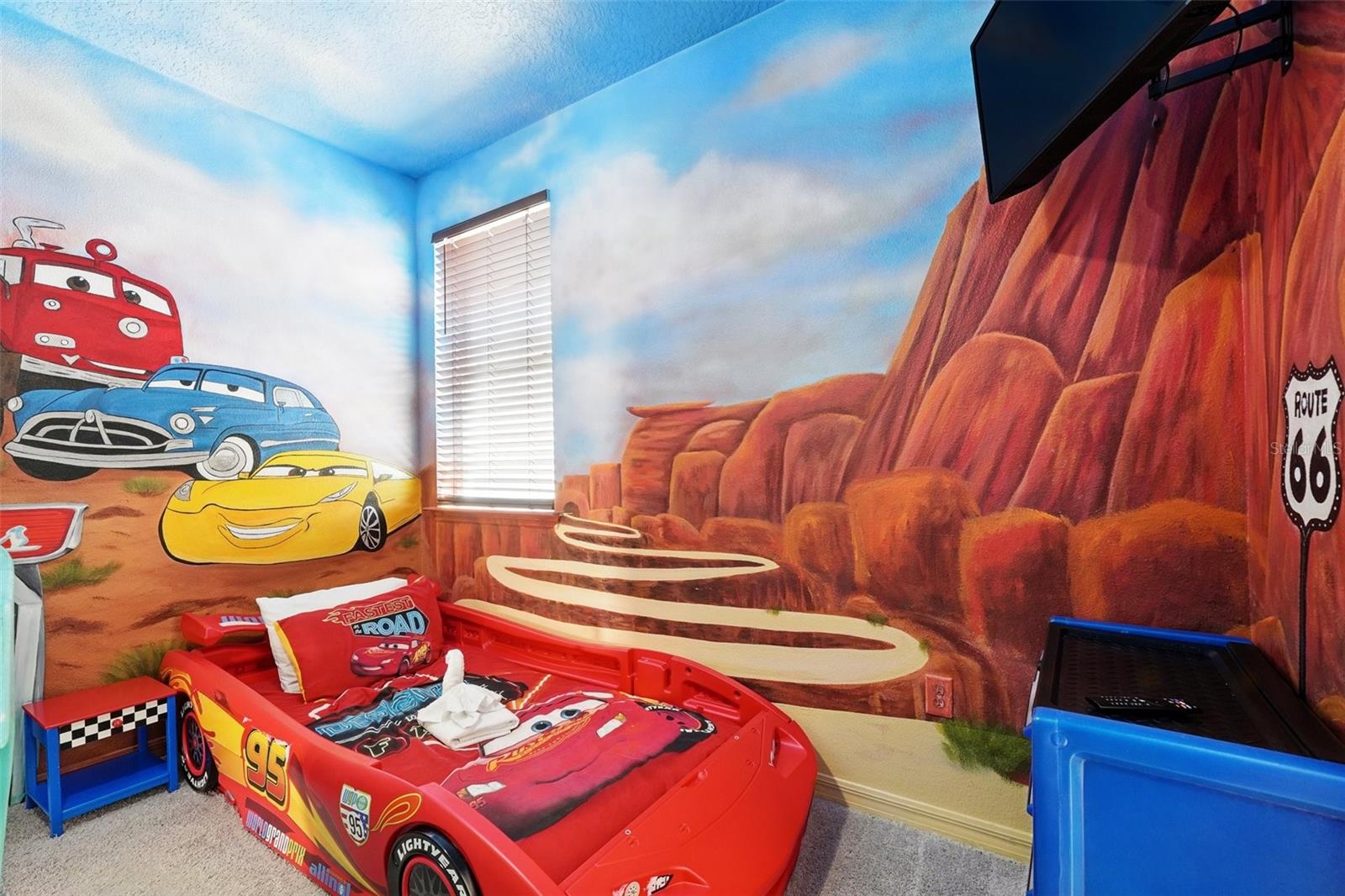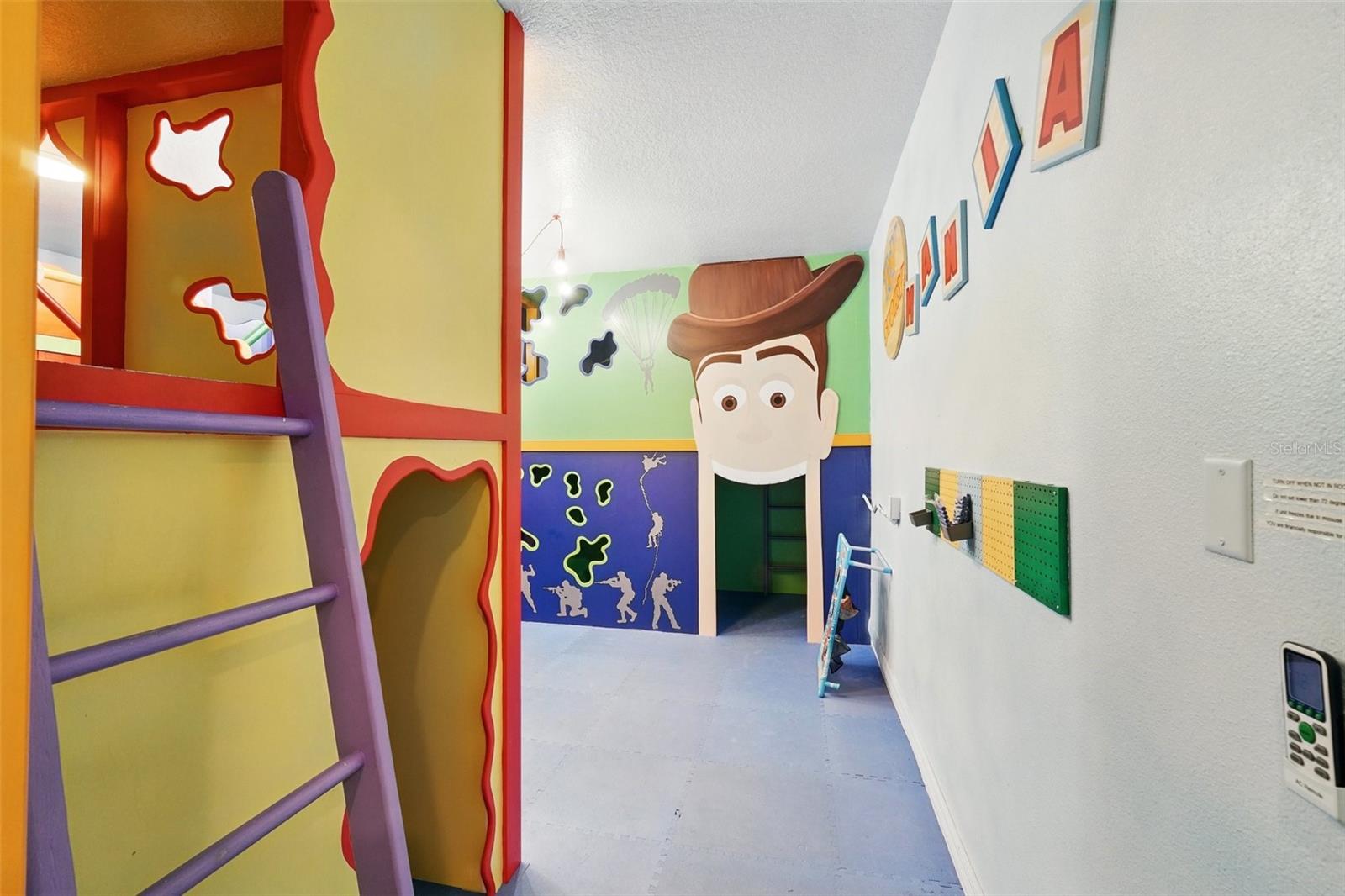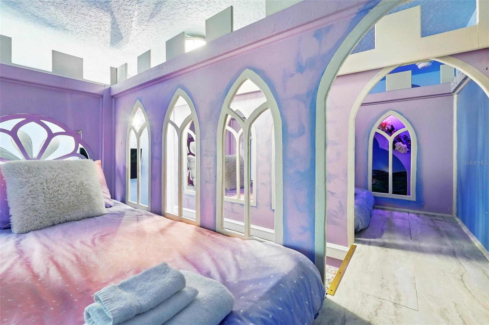 Experience the ultimate vacation retreat with this stunning 6-bedroom, 5-bathroom home in Solara Resort Near Disney, now offering nearly 4,200 sq ft of professionally designed living space under air. Just renovated in April 2025, the home features a freshly painted exterior and some interior, brand-new landscaping (installing next week), and a spectacular, fully built-out air-conditioned playroom in the converted Garage, which is now a Toy Story-themed padded play/romp room. No expense has been spared in crafting a magical experience for guests of all ages. The downstairs playroom includes padded flooring, a climbing rock wall, a ball pit, hidden coves, and bridges. Upstairs, three custom-themed children’s bedrooms are handcrafted with ‘Cars,’ Finding Nemo, and 'Beauty and the Beast' castle designs—complete with slides, bunk beds, multicolor lighting, and secret connecting doors for added fun. Fully turnkey and furnished, this home includes everything needed for your personal enjoyment or a high-performing short-term rental. The upstairs open loft offers even more entertainment with gaming consoles, a pool table, TV, and seating area. The screened-in, heated pool and spa are perfect for relaxing, with wide sliders connecting to the open-plan living room, dining area, and kitchen. Solara Resort offers top-tier amenities with a Huge Clubhouse including a surf simulator, enormous heated pool, splash pad, water slides, full-service restaurant/bar, fitness center, spa, Soccer Field, Volley ball and more. HOA covers daily trash pickup, high-speed internet, cable TV, full lawn service and irrigation care and 24/7 gated security. All current and future bookings convey with Vacasa Mgmt if the buyer stays with the current management. Don’t miss this rare opportunity—schedule your private showing today! 360 Tour: https://www.zillow.com/view-imx/7d84ced0-a1dc-4eee-ac43-ba4029f3c1f2?setAttribution=mls&wl=true&initialViewType=pano&utm_source=dashboard