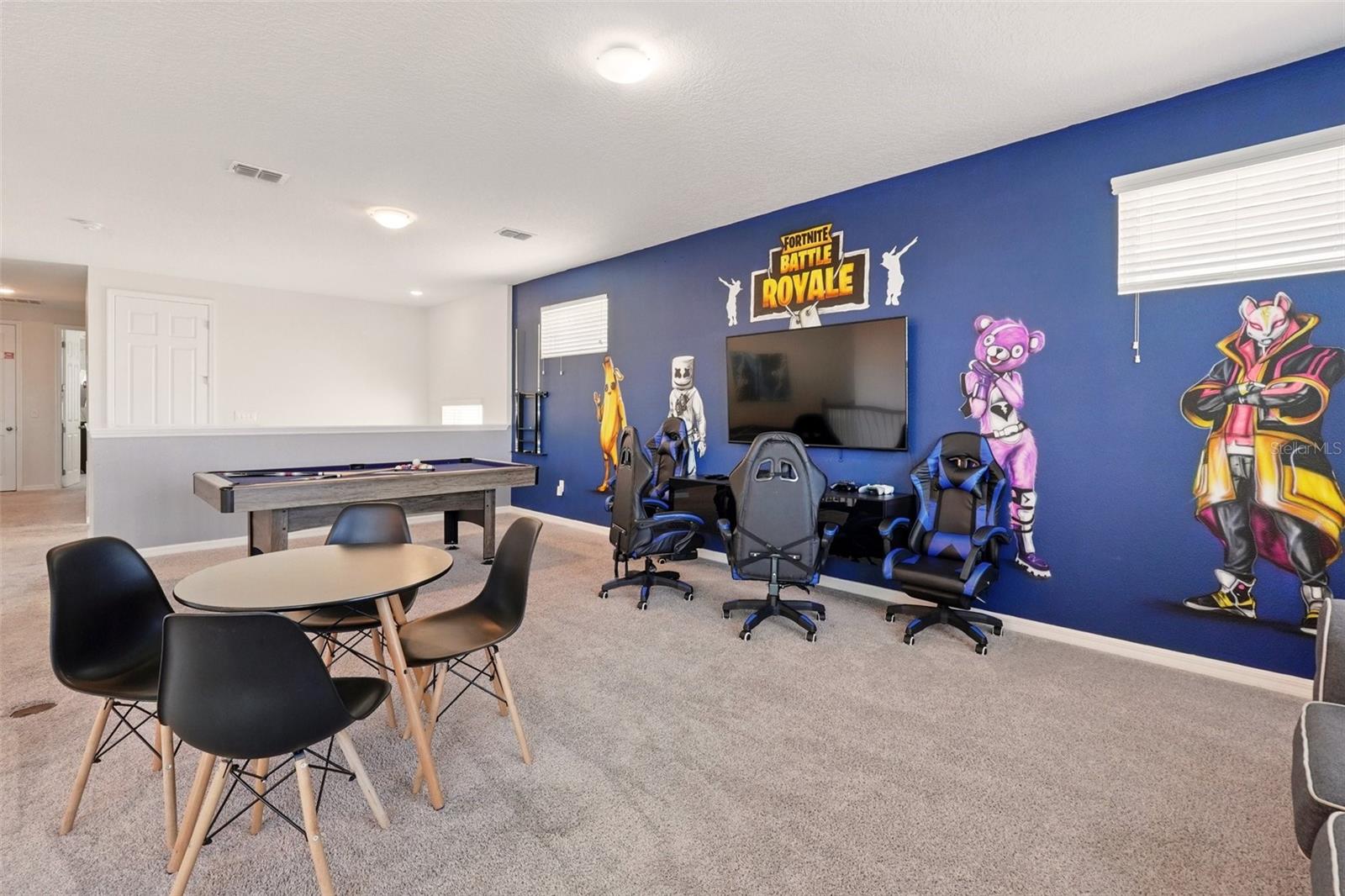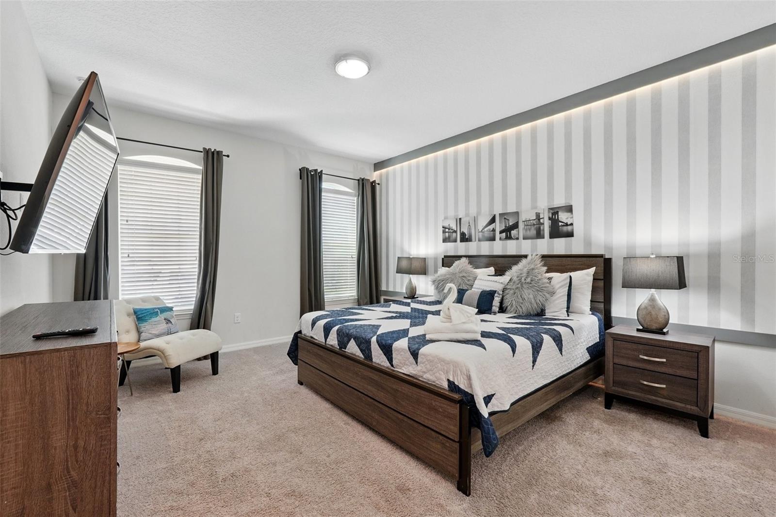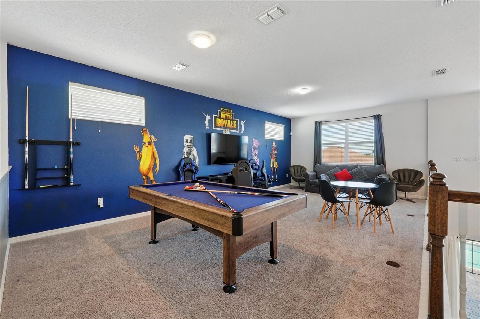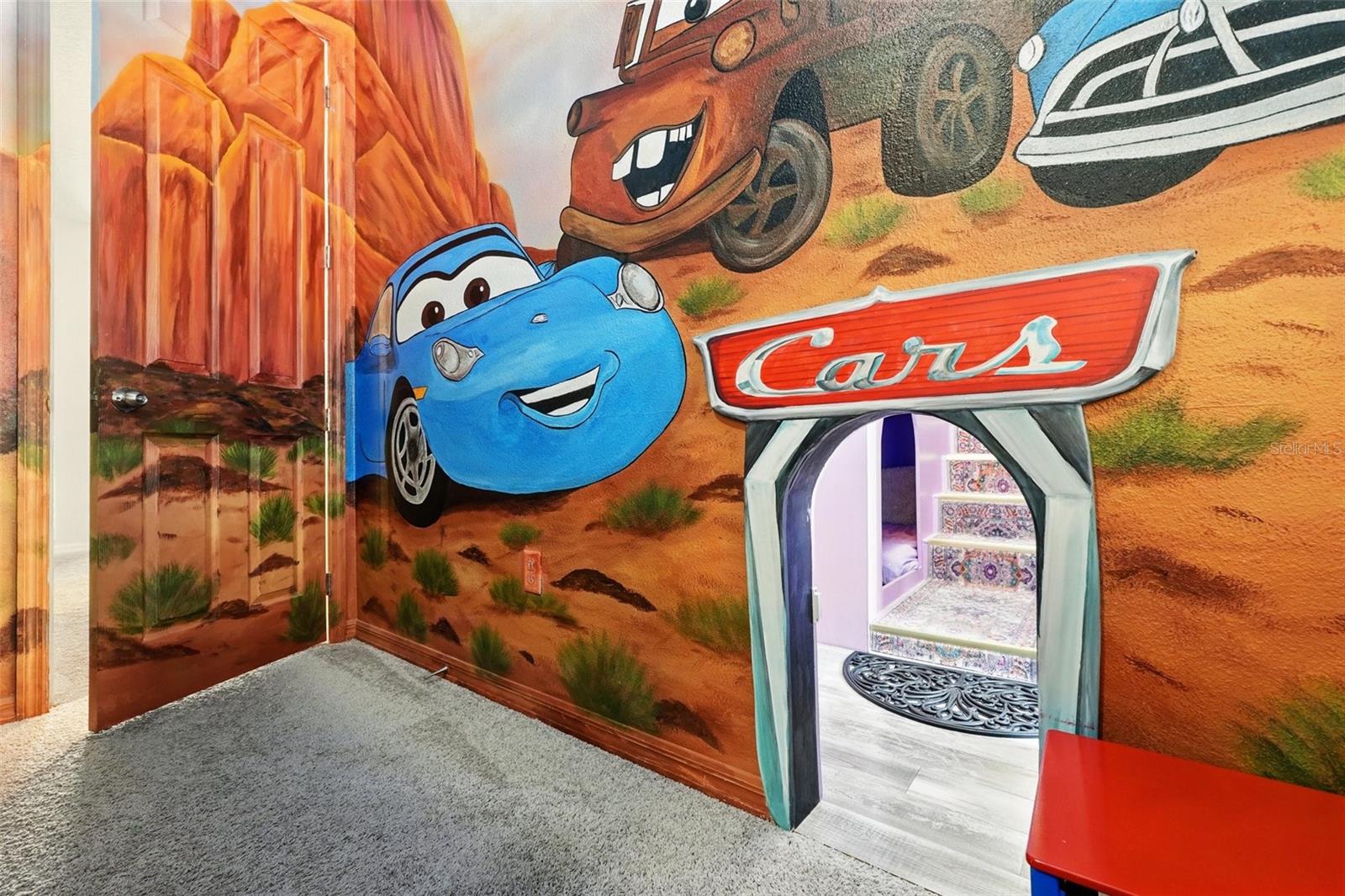 Experience the ultimate vacation retreat with this stunning 6-bedroom, 5-bathroom home in Solara Resort Near Disney, now offering nearly 4,200 sq ft of professionally designed living space under air. Just renovated in April 2025, the home features a freshly painted exterior and some interior, brand-new landscaping (installing next week), and a spectacular, fully built-out air-conditioned playroom in the converted Garage, which is now a Toy Story-themed padded play/romp room. No expense has been spared in crafting a magical experience for guests of all ages. The downstairs playroom includes padded flooring, a climbing rock wall, a ball pit, hidden coves, and bridges. Upstairs, three custom-themed children’s bedrooms are handcrafted with ‘Cars,’ Finding Nemo, and 'Beauty and the Beast' castle designs—complete with slides, bunk beds, multicolor lighting, and secret connecting doors for added fun. Fully turnkey and furnished, this home includes everything needed for your personal enjoyment or a high-performing short-term rental. The upstairs open loft offers even more entertainment with gaming consoles, a pool table, TV, and seating area. The screened-in, heated pool and spa are perfect for relaxing, with wide sliders connecting to the open-plan living room, dining area, and kitchen. Solara Resort offers top-tier amenities with a Huge Clubhouse including a surf simulator, enormous heated pool, splash pad, water slides, full-service restaurant/bar, fitness center, spa, Soccer Field, Volley ball and more. HOA covers daily trash pickup, high-speed internet, cable TV, full lawn service and irrigation care and 24/7 gated security. All current and future bookings convey with Vacasa Mgmt if the buyer stays with the current management. Don’t miss this rare opportunity—schedule your private showing today! 360 Tour: https://www.zillow.com/view-imx/7d84ced0-a1dc-4eee-ac43-ba4029f3c1f2?setAttribution=mls&wl=true&initialViewType=pano&utm_source=dashboard