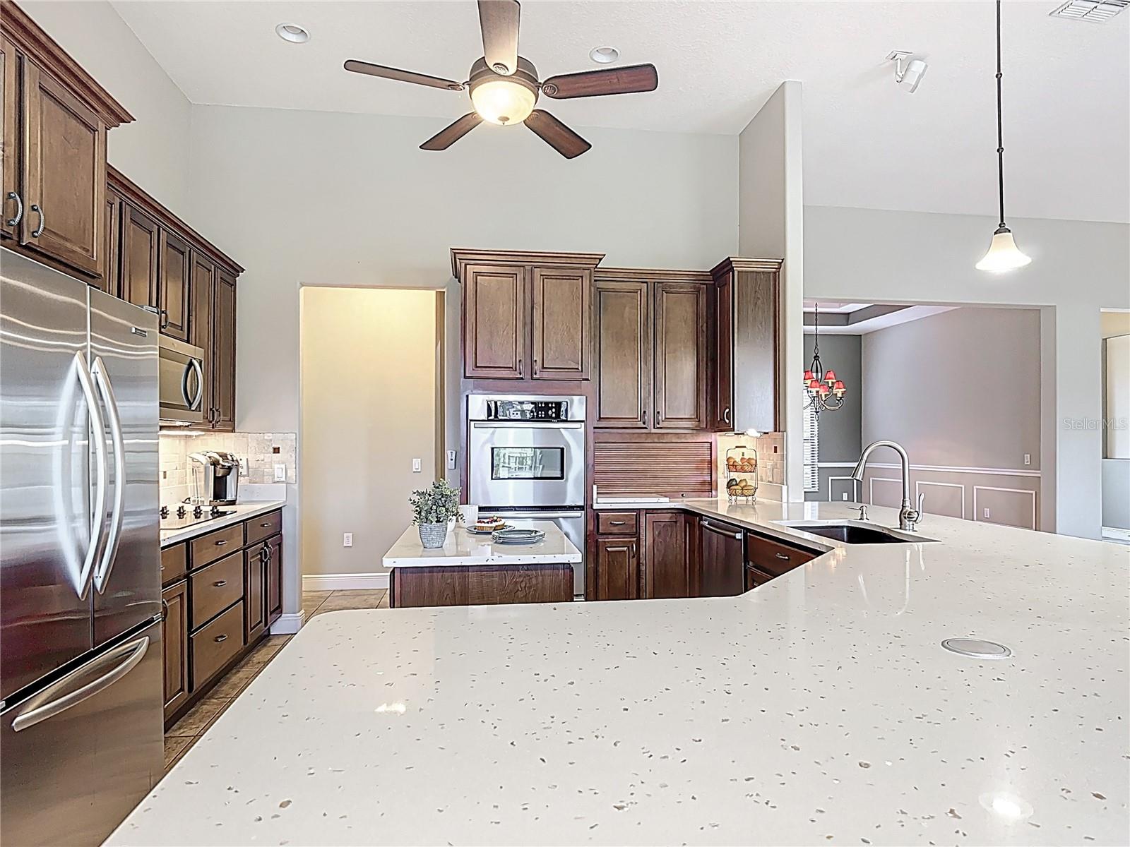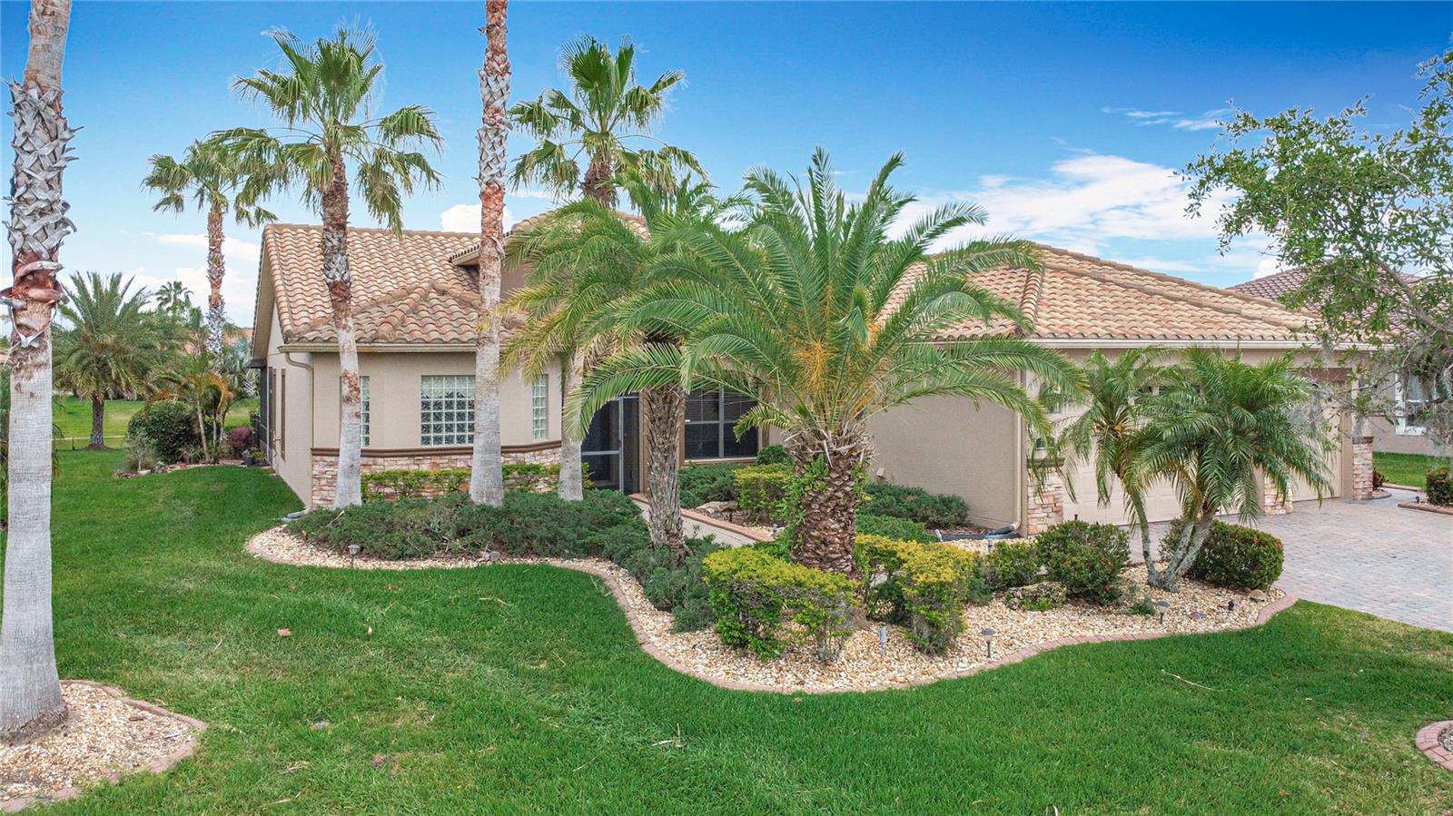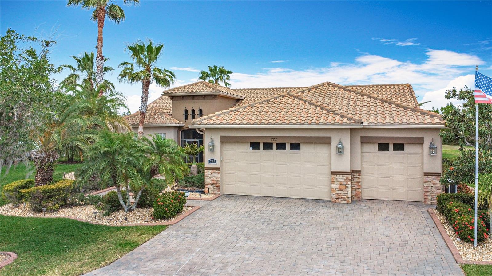 Welcome Home to 772 San Raphael St in the Portofino Estates Neighborhood of Solivita. Impressive VENETIAN model home with Glass Double Door entry and a Stunning Waterfront View. 3 Bedrooms, each with their own full bath, plus a Powder Bath, Gourmet Kitchen, Dining Room, Breakfast Room and a Den. Open plan with 8' Doors and Windows plus 12' Ceilings. The Kitchen is open to the Great Room and Breakfast Room. Upgrades in the Kitchen include a Center Island, Quartz Counter and Undermount Sink, newer Cooktop and Microwave, Pot and Pan Drawers and Lower Pullouts plus Under Cabinet Lighting. The second bedroom includes a Murphy Bed and Bath 3 has been upgraded with a walk-in shower. The Garage has been extended by 4 feet with an EPOXY floor and A/C. Lots of private spaces for small intimate gatherings but this design is an open plan and with 2,616 Sq. Ft. of Interior Space that can accommodate large gatherings comfortably. The Lanai is covered and screened and extends the living and entertaining space. Custom Designed Tropical Landscape and lighting surround the residence. Upgraded Ceiling Fans and lighting, Newer Hot Water System, a Water Softener and a Whole House Water Filtration System. The Great Room, Kitchen and Main Bedroom have custom designed Vertiglide Blinds. The Great Room and Lanai have a Bose Surround Sound System. The Primary Suite is lovely with Custom Closets, an En-Suiite Bath with Dual Vanities, a large Soaking Tub and a separate Walk In Shower and private WC. The Dining Room at the front of the residence has Chair Rail, a custom Tray Ceiling and a view of the custom landscape. The Lanai has additional electrical receptacles plus a 220 line for an outdoor kitchen or spa. The yard is fenced in with Dog Door Access. Solivita is a 55 Plus Active Community with a great location, quiet, safe, with lots of activities. 2 18 Hole PGA Golf Courses, 14 Temperature Controlled Pools, Ponds, Gardens, and Conservation Areas. Play Tennis, Pickleball, Bocce, Horseshoes, or Softball at Freedom Park. Work out in either of 2 State of The Art Fitness Centers staffed with trainers and the latest equipment. Take an Exercise Class, or a class at Solivita University. Shoot pool, Grow Veggies in the Community Garden, Take your best friend to the Dog Park, Visit our twice weekly Farmer's Market, Shop in the Pro Shop or at our Hometown Pharmacy/Sundries Store. Enjoy a drink or meal at our three restaurants, join any of over 200 clubs, or enjoy entertainment in the ballroom. Visit our lending library, take a walk in the park or golf cart ride throughout the community and enjoy the scenery and wildlife. The HOA fee includes lawncare, irrigation, security, road maintenance, tv and internet. Across the street from the main entrance are a hospital and medical offices as well as Poinciana Plaza, a new shopping center featuring TJMAXX, Rack Room Shoes, Below, Ulta Beauty, PETCO, and more! When you purchase a home in Solivita you are not just buying a home but a lifestyle too. Call today to see this home and take advantage of a GREAT OPPORTUNITY to create your dream home in Solivita.