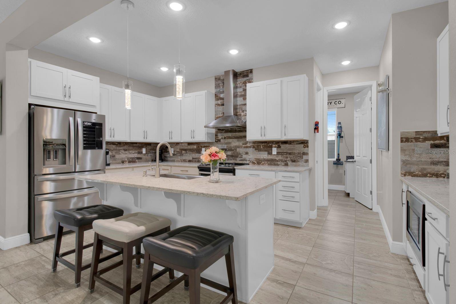 Motivated Seller – Bring Your Best Offer! Beautifully upgraded Antigua model featuring 4 bedrooms (including loft) + flex room + 3.5 baths in the upscale 24/7 gated community of Tapestry. Enjoy an open and bright floor plan with a chef-inspired kitchen offering quartz countertops, stainless steel appliances, 42" cabinets, and a large island perfect for entertaining. The main-floor primary suite includes direct backyard access, dual vanities, soaking tub, and walk-in shower. Upstairs loft works perfectly as a guest suite, office, media room, or game room. This home offers a conservation view, no rear neighbors, screened lanai, pergola-covered patio, and a fully fenced yard. Additional features: tile roof, 2-car garage, interior laundry room, and a separate flex room for added versatility. Tapestry provides resort-style amenities including a resort pool style , fitness center, clubhouse, walking trails, playgrounds, and low HOA. Convenient location minutes from Disney, The Loop, dining, and major highways. Move-in ready—schedule your private showing today!
