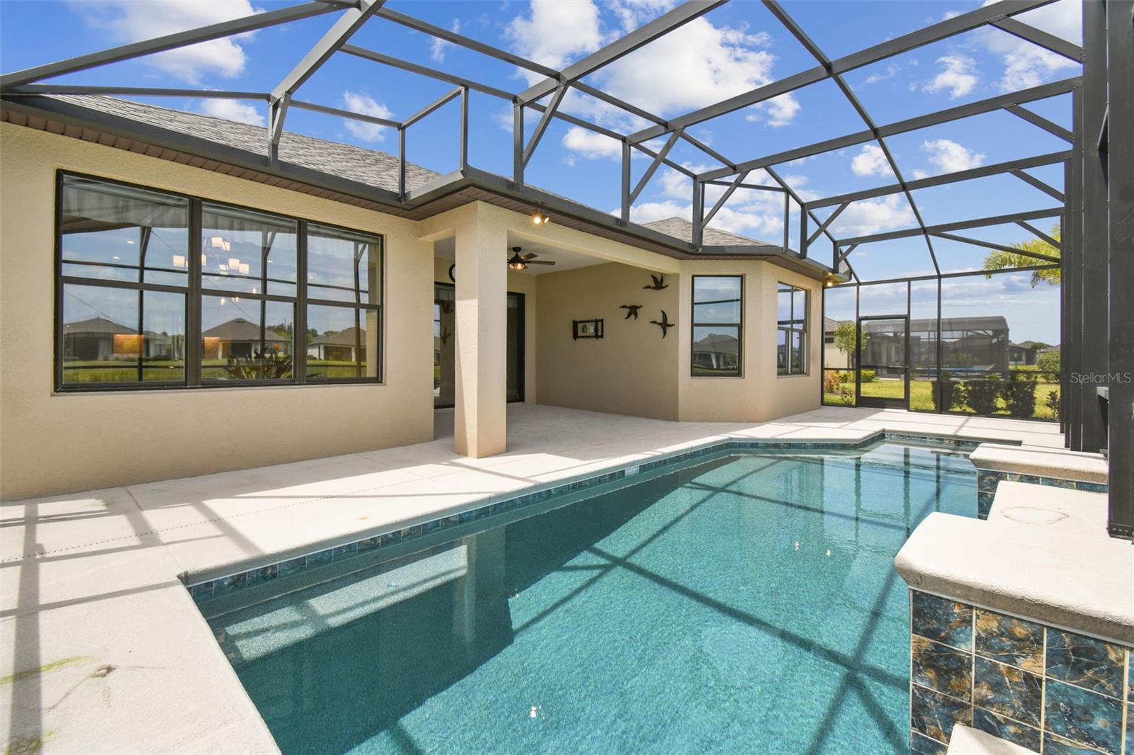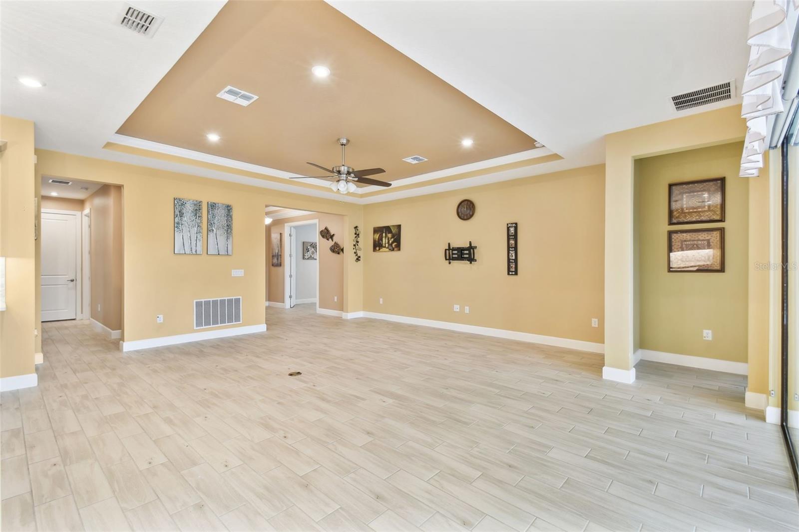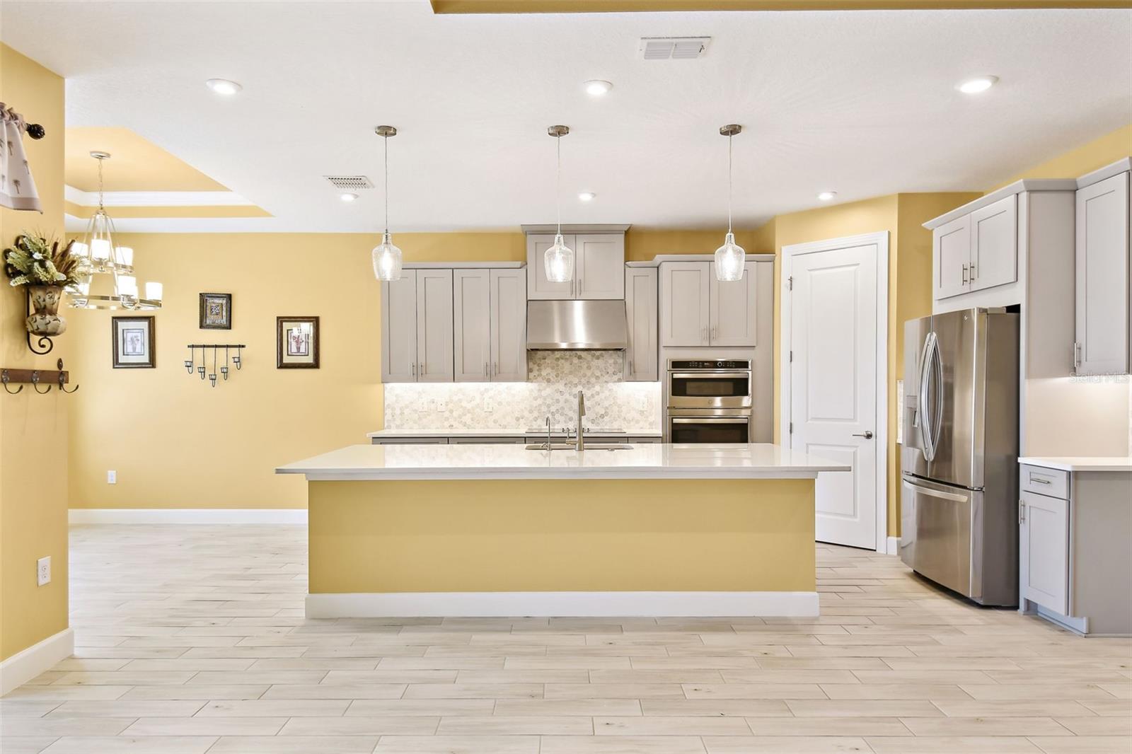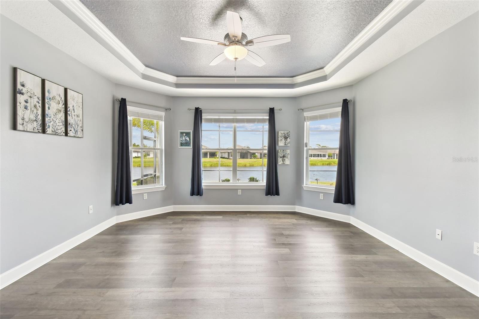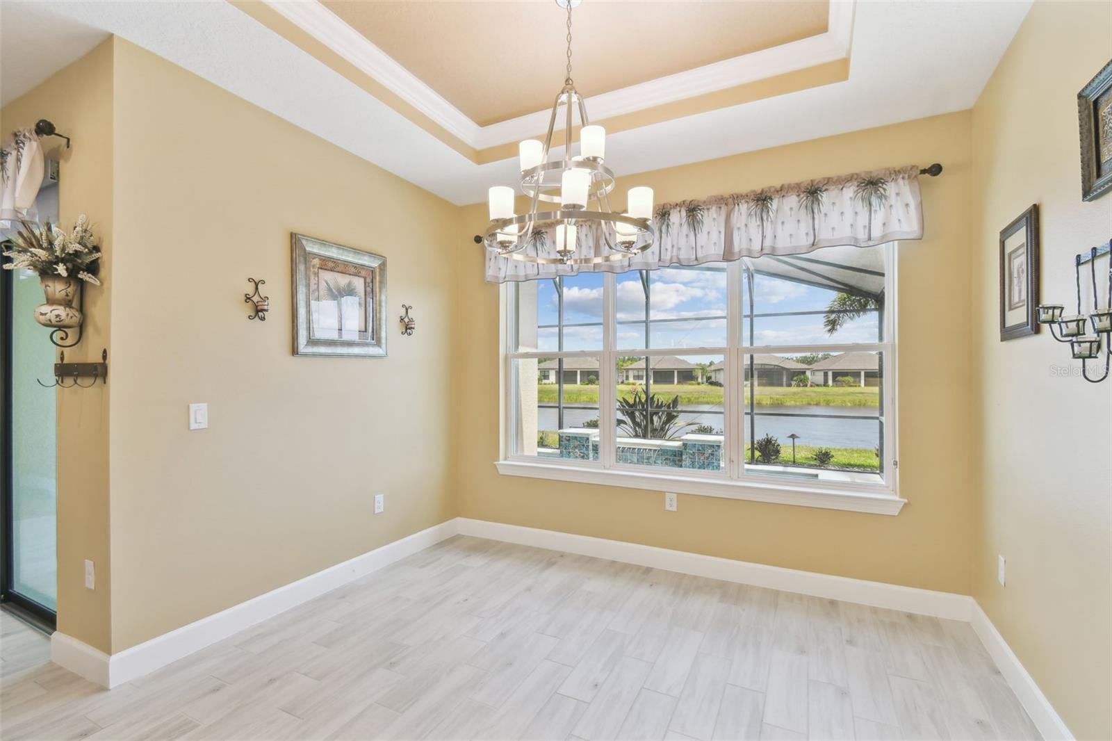 One or more photo(s) has been virtually staged. Huge Market Adjustment! Welcome to your dream home in the award-winning, resort-style 55+ gated community of Solivita! This 3-YEAR-NEW BASTA-model residence combines luxury, comfort, and functionality, offering a relaxed lifestyle with high-end upgrades and serene surroundings. With OVER $130,000 in UPGRADES, you are sure to love this beautifully maintained home. Those upgrades include tray ceilings in the entry way, living area, dining room, and primary bedroom, a private and peaceful SALT WATER heated POOL with a waterfall on a timer – to enjoy at your convenience and leisure – stunning LANDSCAPING, including a beautiful fountain, stonework added to the front of the house, giving it a polished feel, water filtration and softener system, custom kitchen pantry shelving, garage storage shelves, and so much more!! This home has 3 bedrooms, 3 FULL BATHS, and a BONUS ROOM with French doors that can be used as a Den/Study/Office/Hobby Room, or even an additional guest space. You will find a GOURMET KITCHEN with double ovens, perfect for the chef-enthusiast, a large sized island with room for seating, all as a central point to your living and dining area, which make this OPEN-CONCEPT an entertainer’s dream! Enjoy BREATHTAKING WATER VIEWS from all of the main living areas and the primary bedroom, offering a peaceful backdrop to your everyday living. This home features NO CARPET, providing a clean, modern look throughout, and includes a DEDICATED GOLF CART GARAGE. Located less than half a mile from Solivita’s Village Center, you’ll have easy access to year-round activities, dining, entertainment, and festive holiday events—all just a short walk or golf cart ride away. Solivita is a vibrant and gated 55+ community offering a resort-style lifestyle in a beautifully landscaped setting. Residents enjoy access to two championship golf courses, 1 indoor and 13 outdoor swimming pools, two state-of-the-art fitness centers with ongoing wellness and exercise classes, and multiple clubhouses. The community also features tennis, pickleball, and bocce ball courts, a spa, on-site dining options, and numerous multipurpose spaces for arts, crafts, games, and social gatherings. The Village Center serves as the social hub, featuring on-site dining, a spa, and frequent events, including concerts, festivals, and seasonal celebrations. With over 200 clubs and interest groups, along with a golf cart-friendly layout, Solivita provides the perfect balance of relaxation, recreation, and connection for today’s active adult.
