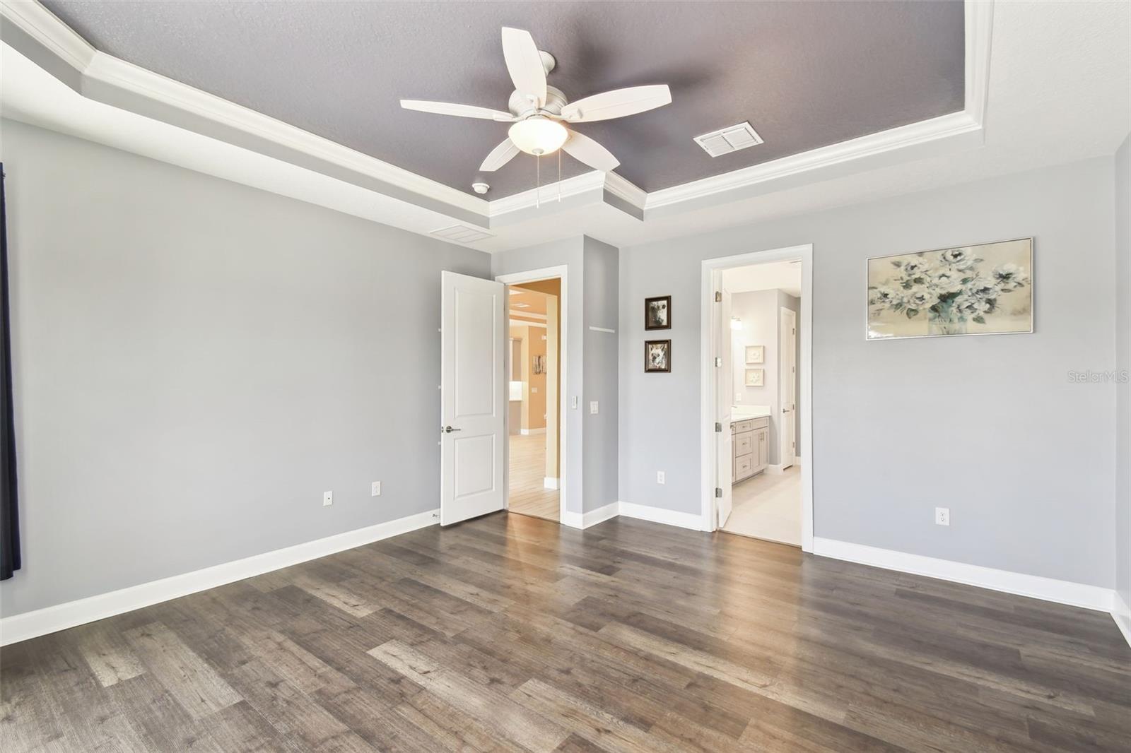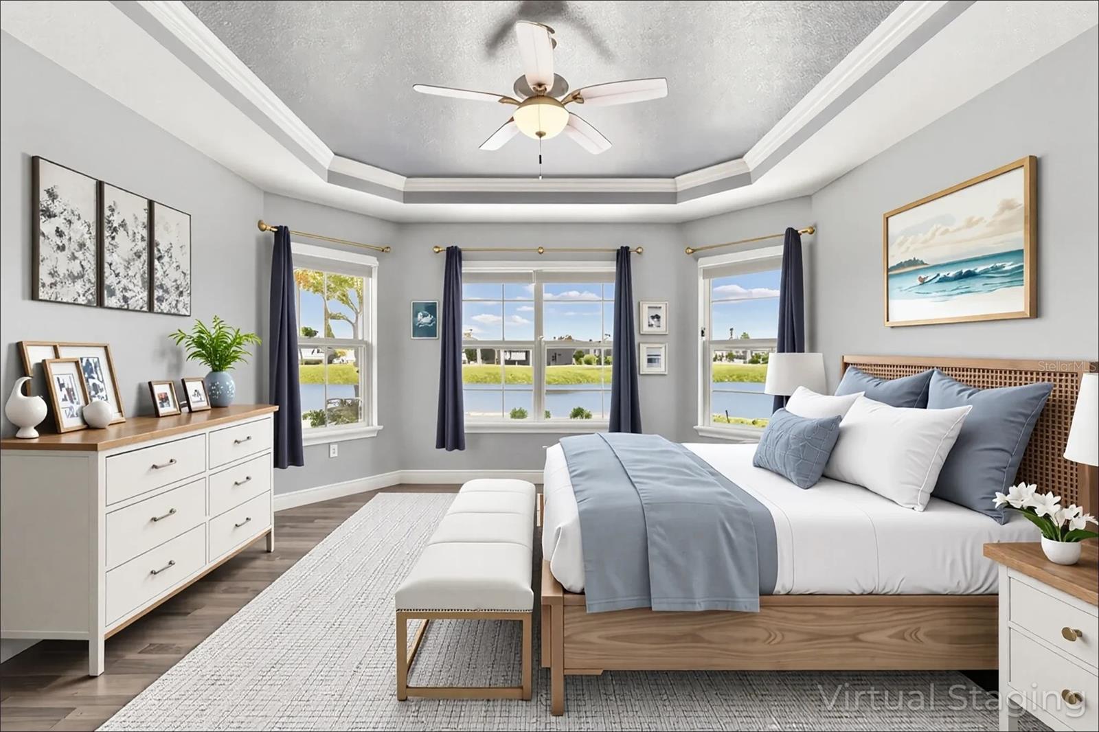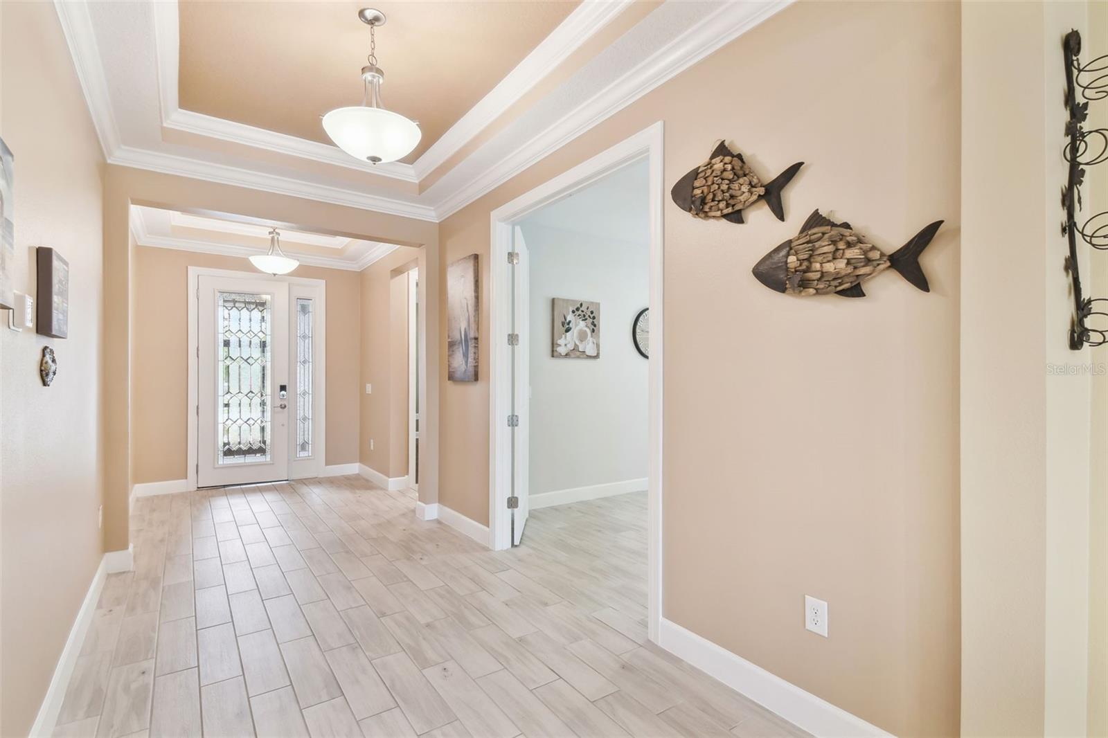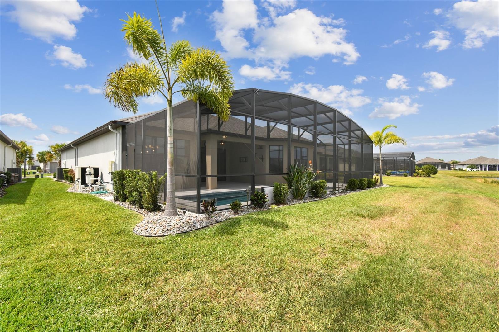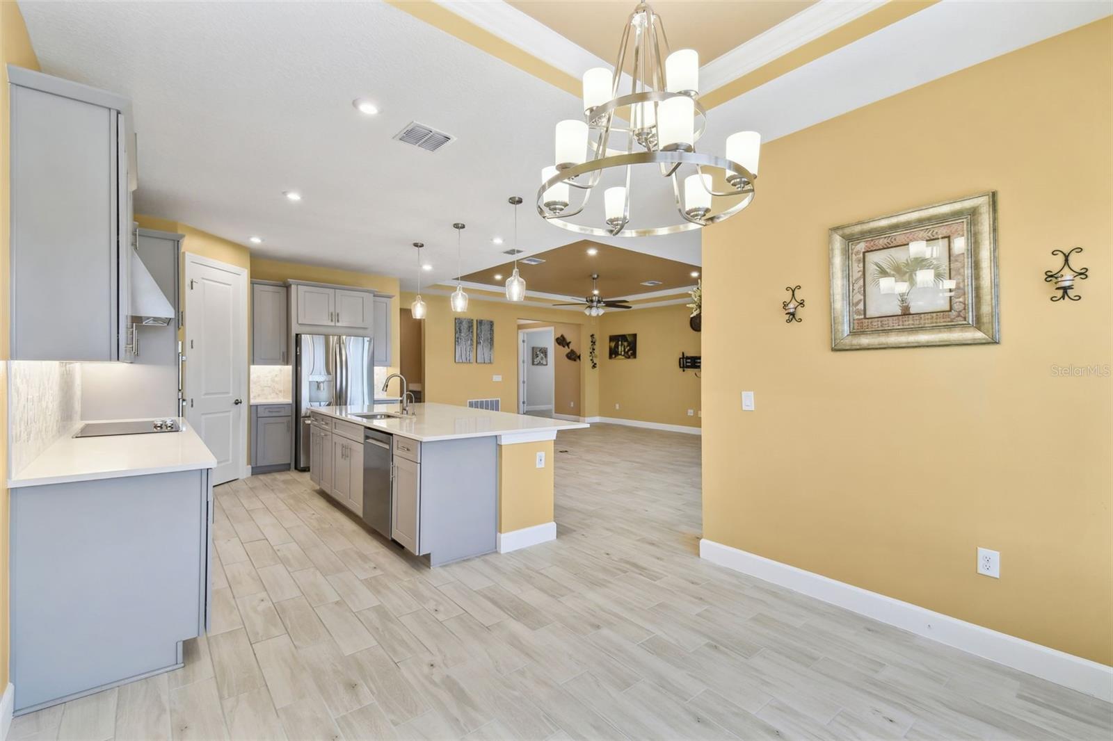 One or more photo(s) has been virtually staged. Huge Market Adjustment! Welcome to your dream home in the award-winning, resort-style 55+ gated community of Solivita! This 3-YEAR-NEW BASTA-model residence combines luxury, comfort, and functionality, offering a relaxed lifestyle with high-end upgrades and serene surroundings. With OVER $130,000 in UPGRADES, you are sure to love this beautifully maintained home. Those upgrades include tray ceilings in the entry way, living area, dining room, and primary bedroom, a private and peaceful SALT WATER heated POOL with a waterfall on a timer – to enjoy at your convenience and leisure – stunning LANDSCAPING, including a beautiful fountain, stonework added to the front of the house, giving it a polished feel, water filtration and softener system, custom kitchen pantry shelving, garage storage shelves, and so much more!! This home has 3 bedrooms, 3 FULL BATHS, and a BONUS ROOM with French doors that can be used as a Den/Study/Office/Hobby Room, or even an additional guest space. You will find a GOURMET KITCHEN with double ovens, perfect for the chef-enthusiast, a large sized island with room for seating, all as a central point to your living and dining area, which make this OPEN-CONCEPT an entertainer’s dream! Enjoy BREATHTAKING WATER VIEWS from all of the main living areas and the primary bedroom, offering a peaceful backdrop to your everyday living. This home features NO CARPET, providing a clean, modern look throughout, and includes a DEDICATED GOLF CART GARAGE. Located less than half a mile from Solivita’s Village Center, you’ll have easy access to year-round activities, dining, entertainment, and festive holiday events—all just a short walk or golf cart ride away. Solivita is a vibrant and gated 55+ community offering a resort-style lifestyle in a beautifully landscaped setting. Residents enjoy access to two championship golf courses, 1 indoor and 13 outdoor swimming pools, two state-of-the-art fitness centers with ongoing wellness and exercise classes, and multiple clubhouses. The community also features tennis, pickleball, and bocce ball courts, a spa, on-site dining options, and numerous multipurpose spaces for arts, crafts, games, and social gatherings. The Village Center serves as the social hub, featuring on-site dining, a spa, and frequent events, including concerts, festivals, and seasonal celebrations. With over 200 clubs and interest groups, along with a golf cart-friendly layout, Solivita provides the perfect balance of relaxation, recreation, and connection for today’s active adult.