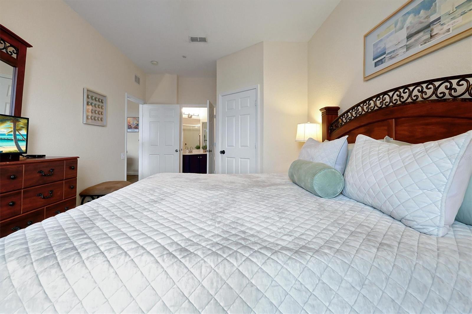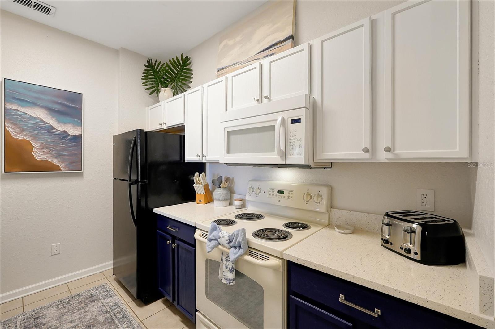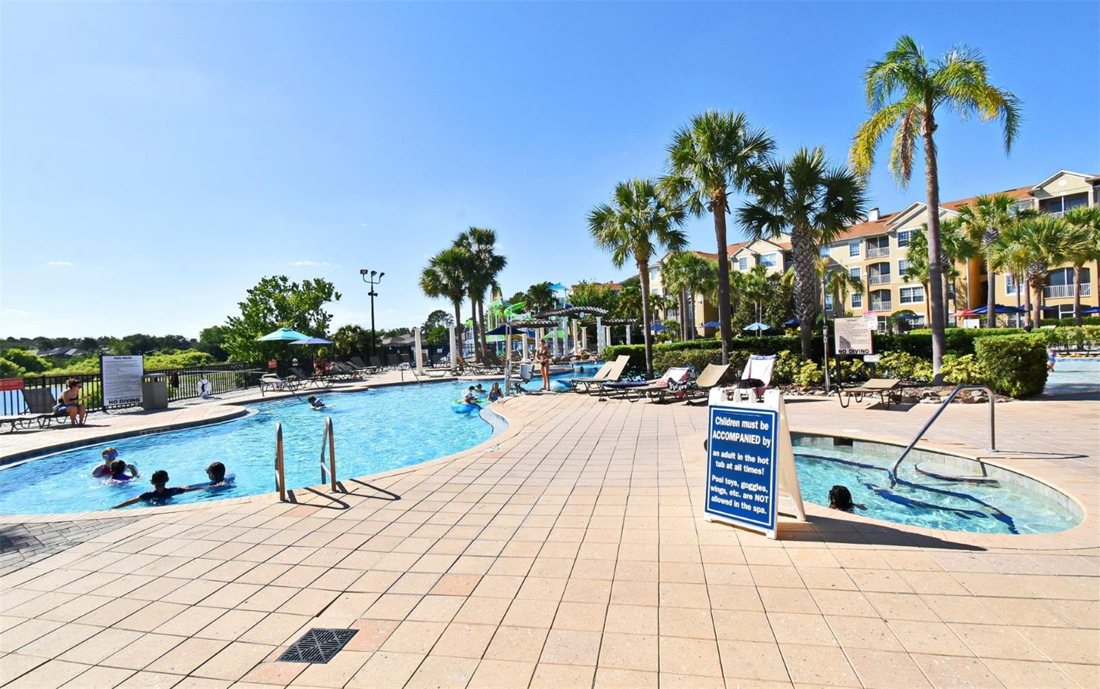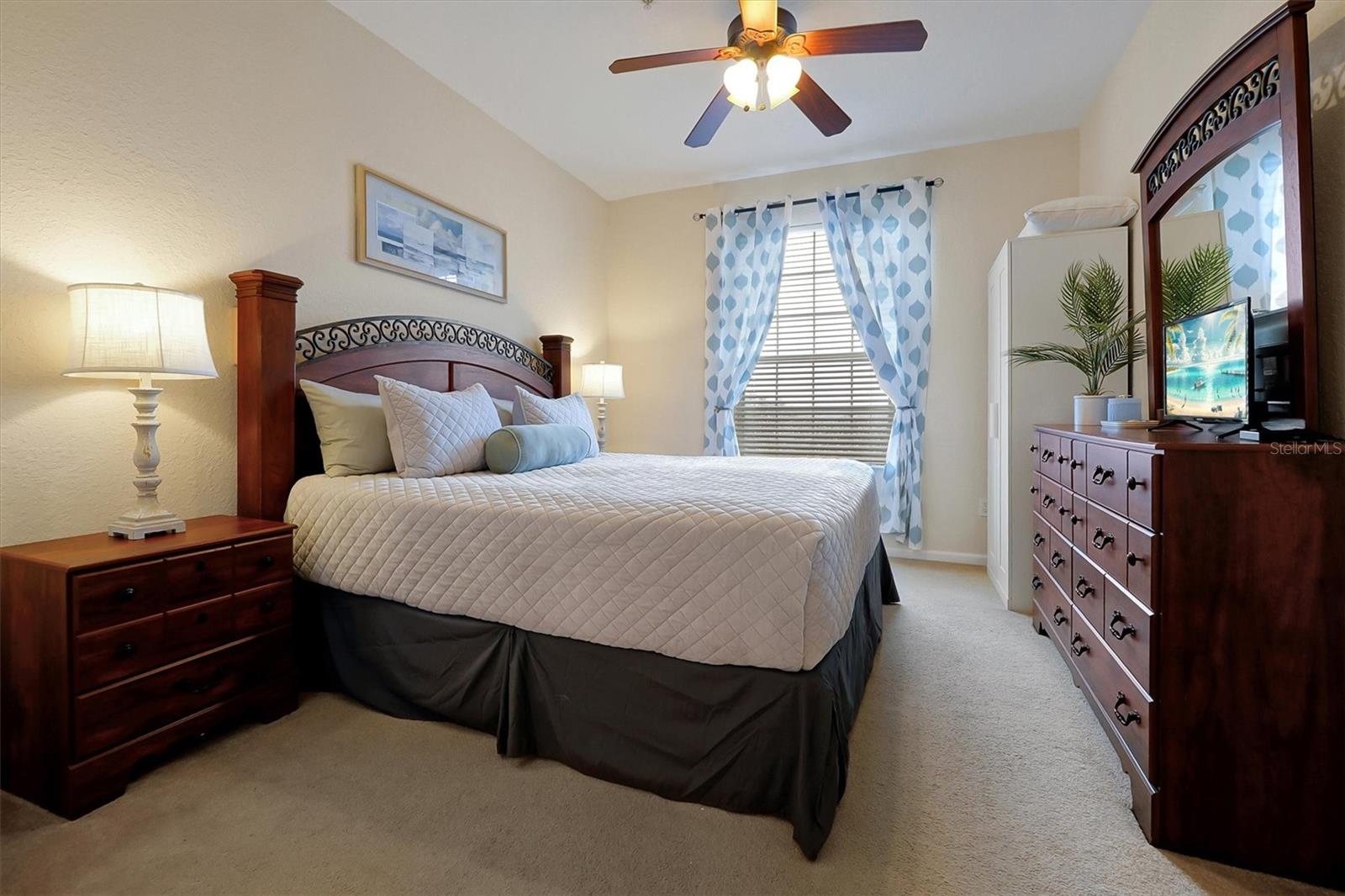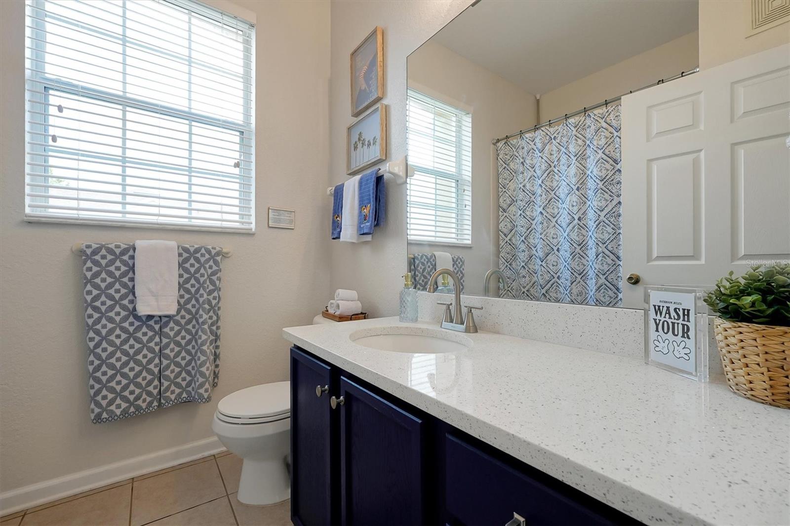 Welcome to this NEWLY RENOVATED charming fully furnished 3 bedrooms, 2 bath condo that could be yours! The condo is located on the 4th floor of an elevator building. Freshly painted, with new luxury flooring, as well as new quartz countertops, sinks and faucets in kitchen and bathrooms. The generously sized primary bedroom with ensuite has a new rainfall shower head and all new bedding and towels and a new armoire and lamps. The property comes with all new dishes, linens, 3 in. memory foam mattresses, brand new quad bunk beds in one of the bedrooms, also with new bedding and new nightstands. New towel racks and behind door hooks, new shower head in 2nd bathroom and a new pop out toddler bed. New artwork throughout the condo as well as new slipcovers for the sofas, new entertainment stand with a new 60 in TV and new lamps, new curtains, new dining room light fixture, updated light switches with dimmers. It has a screened in lanai that has new patio lights and new patio furniture that overlooks a peaceful landscaped view. Beyond the green space is mini golf/tennis and basketball courts. The property is a few steps from the clubhouse that has a beautiful lagoon style pool with a water park, arcade, movie theater, fitness center and sundry store. Windsor Hills is protected by 24 hr security, a manned gate and additional owners-only access. It is near the major attractions, highways, restaurants and plenty of shopping nearby.