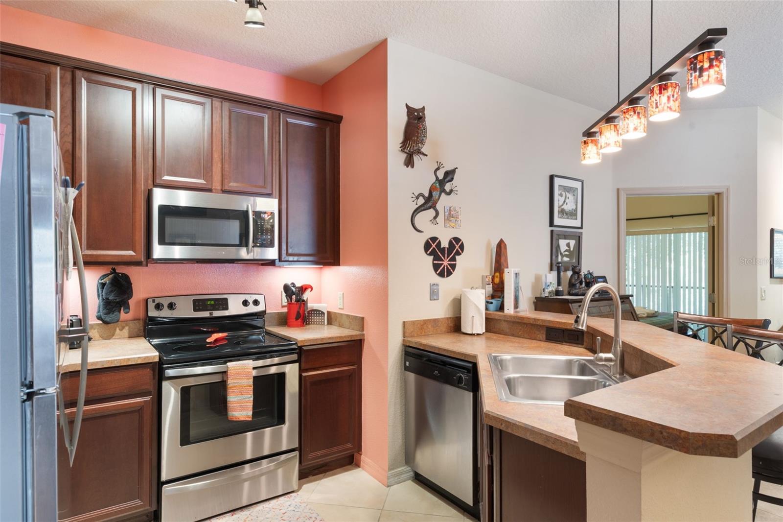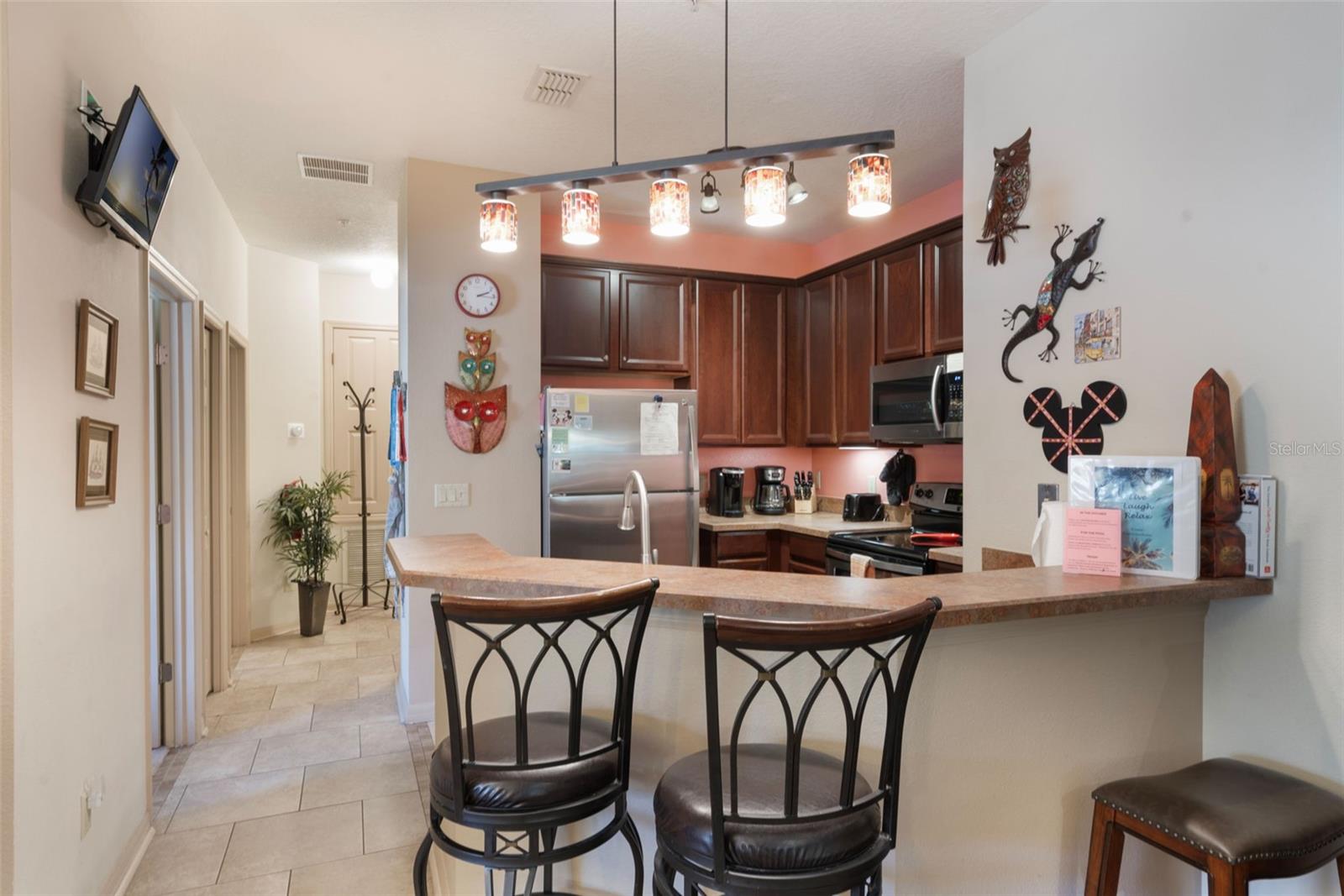 Welcome to 7521 Pellham Way, a beautifully maintained 3-bed / 2-bath condo within the desirable gated Oakwater community. This inviting residence boasts a one-car garage and numerous upgrades for comfortable living. Inside, you'll find upgraded lighting fixtures with dimmers, custom tile flooring in the living room and dining room, an owner's closet and a kitchen cabinet lockout for added security. Additional features include custom drawers in the non-primary bedroom closets. Enjoy peace of mind with a new HVAC system and hot water heater, both installed in 2024. This condo offers a quiet and convenient location within the community, with easy access to central Florida attractions, dining, shopping, and more. Oakwater residents enjoy fantastic public amenities, including a community pool, fitness center, and playground. An option to purchase some furnishings and vacation rental supplies is also available, making this an ideal opportunity for a primary residence, vacation home, or investment property.