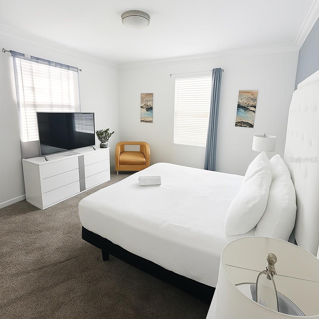 Discover an unparalleled vacation experience in this magnificent 5-bedroom, 5-bathroom home, featuring two luxurious owner's suites for ultimate comfort and privacy. This property offers ample space for relaxation and entertainment, including a dedicated laundry room, a versatile loft, and an exciting game room. Nestled within the highly sought-after Storey Lake community, this home places you at the epicenter of Central Florida's most iconic destinations, with Walt Disney World just 5 miles west, Lake Buena Vista and Disney Springs a mere 3 miles north, and The Loop shopping and dining district only 2.5 miles east. The gourmet kitchen is a chef's delight, boasting elegant quartz countertops, premium 42-inch cabinetry, and sleek slate appliances. As a resident or guest of Storey Lake, you'll have access to an impressive array of resort-style amenities, including a Tiki Bar & Grille, Canoe/Kayak Rental, Lazy River, state-of-the-art Fitness Center, Miniature Golf, Quiet Pool, Splash Pad, Double Water Slide, Volleyball Court, and Sports Court. Experience the exceptional lifestyle that has made Storey Lake a premier choice for residents and visitors alike.