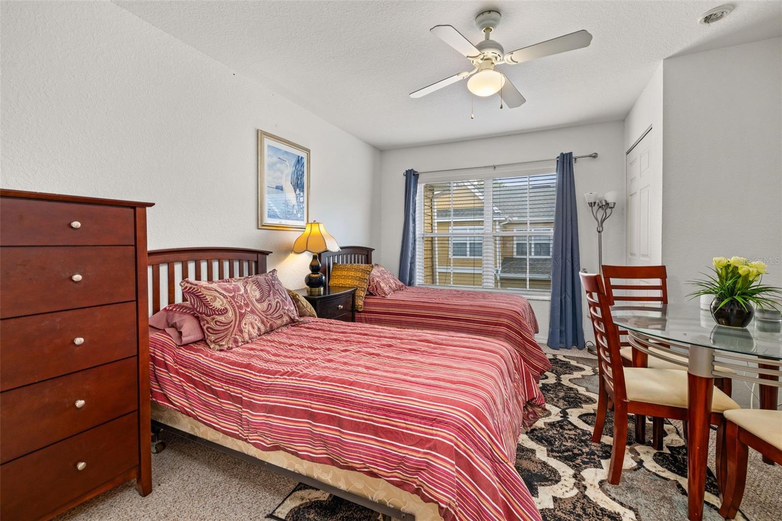 Partially Furnished 3-Bedroom Townhome in Resort-Style Gated Community – Villas at Seven Dwarfs Located just minutes from MAJOR ATTRACTIONS, this charming 3-BEDROOM, 2-BATH townhome is situated in the highly desirable GUARD-GATED community of VILLAS AT SEVEN DWARFS. The home features a SPACIOUS OPEN-CONCEPT living and dining area, a functional kitchen with BREAKFAST BAR, and tasteful decor throughout. The PRIMARY BEDROOM is conveniently located on the FIRST FLOOR, offering a LARGE WALK-IN CLOSET and plenty of natural light. Upstairs, you’ll find two guest bedrooms, each with twin beds, and a shared full bathroom — perfect for hosting family or guests. This home comes PARTIALLY FURNISHED, offering a great start whether you’re looking for a FULL-TIME RESIDENCE, a VACATION GETAWAY, or an INVESTMENT PROPERTY. The community ALLOWS BOTH SHORT-TERM AND LONG-TERM RENTALS, making it an ideal opportunity for PRIMARY HOME OR RENTAL INCOME. Enjoy an abundance of RESORT-STYLE AMENITIES, including a HEATED COMMUNITY POOL AND SPA, SPLASH PAD, FITNESS CENTER, clubhouse with ARCADE AND BILLIARDS, PLAYGROUND, full-size BASKETBALL AND TENNIS COURTS, PADDLE BOATS, SAND VOLLEYBALL, a LIBRARY, and a rare TIKI BAR on-site. Don’t miss your chance to own in one of KISSIMMEE’S MOST AMENITY-RICH AND FLEXIBLE-USE COMMUNITIES!