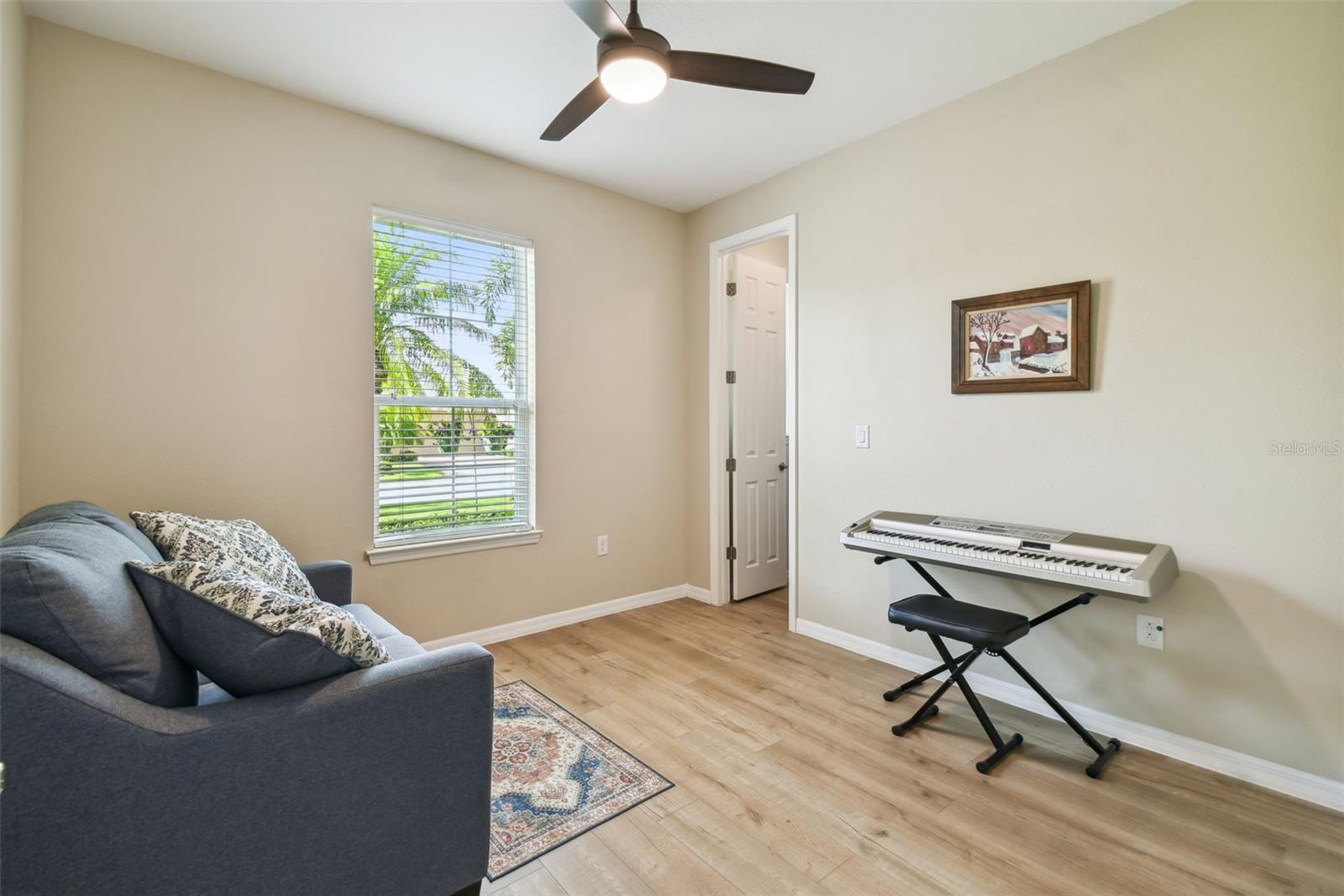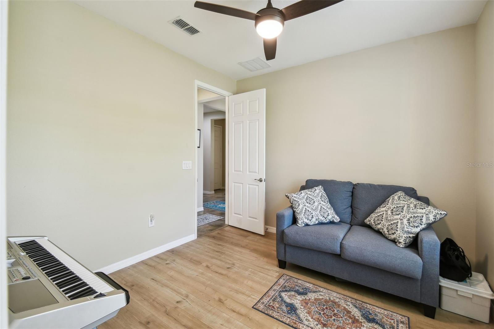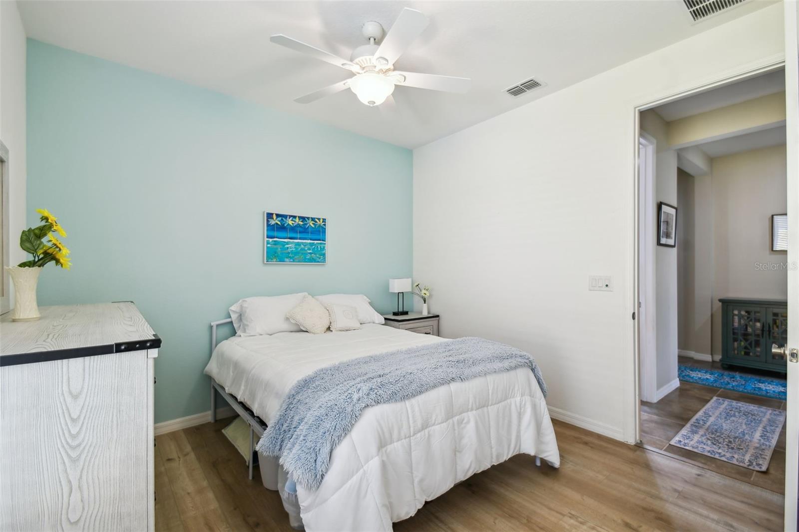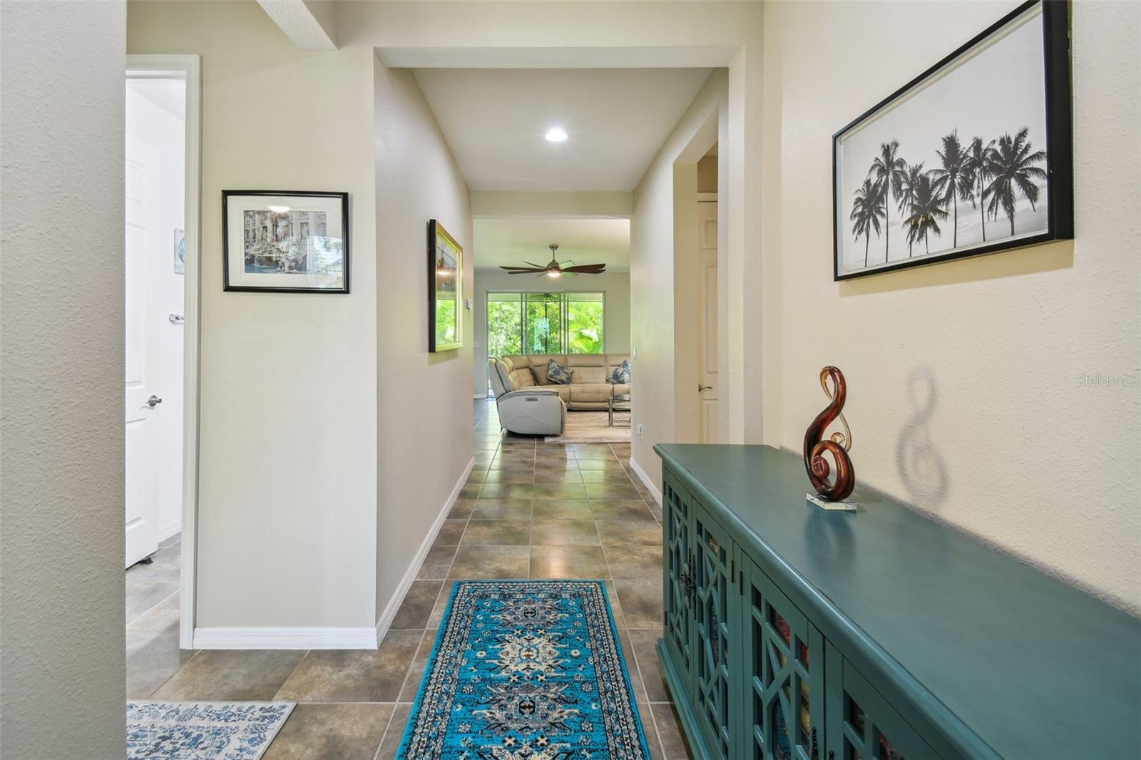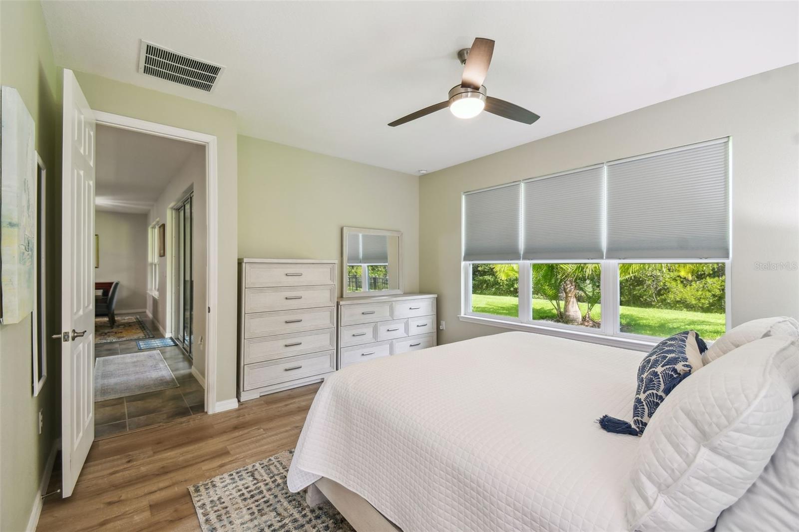 MOTIVATED SELLERS. DON'T PASS THIS ONE UP. HUGE PRICE REDUCTION. NEW PRICE $369,900. FURTHER, REDUCED HOMESTEAD TAXES BENEFIT THE BUYER THROUGH 2026. WINDOW TREATMENTS, EXTRA REFRIGERATOR, LANAI FURNITURE AND GARAGE STORAGE RACKS CONVEY WITH THE HOME. OTHER FURNITURE NEGOTIABLE OUTSIDE OF CONTRACT. This popular Cabella model has a 3-bedroom floor plan ALL with walk-in closets and LVT tile, NO CARPETS in this home. An extended garage with room for two cars AND a golf cart offering plenty of storage. The home has a large backyard with room for a pool and a fence for your furry friends. Open concept layout allows for seamless entertaining; The large great room gives you plenty of options for your furniture layout along with a spacious dining area offering a picturesque view of the Conservation. Prepare to be amazed by the kitchen with a large island, plenty of granite counter space, top-of-the-line stainless steel appliances, upgraded cabinets, and recessed lighting that makes this kitchen both stylish and functional. Plus, the walk-in pantry and additional storage space ensure you'll never run out of room. Retreat to the expansive primary bedroom, where you'll find ample space for a king-size bed and a great view of the conservation area. The en-suite primary bath features solid surface counters, a large walk-in shower and a large walk-in closet. The covered lanai has a beautiful waterfall feature that helps you relax with your favorite beverage while enjoying the tranquil atmosphere. Upgraded landscaping and outdoor lighting make your new home even more inviting no matter what the time. A new garage door opener and whole house surge protector round out all the fantastic features this home offers to the lucky new owner! This beautiful home is located near the Palms amenity center and the West Gate for easy entry and exit from the community. Solivita is a Tuscany Inspired 55+ active community located approximately 40 minutes from Disney World, Sea World, and the Orlando International Airport. Solivita amenities include more than you will ever have time for! 2 state of the art amenity centers with exercise & meeting rooms; a SOFTBALL diamond & field; 3 restaurants - 14 HEATED POOLS; PICKLEBALL and TENNIS courts; BOCCE BALL; Shuffleboard; Horseshoe; a BILLIARDS room; LIBRARY; a DOG PARK; over 250 resident clubs; 36 holes of CHAMPIONSHIP GOLF and SO MUCH MORE!! The HOA fees include 24 hour gated security and complete landscape maintenance and watering. Welcome to the "Solivita Family"!
