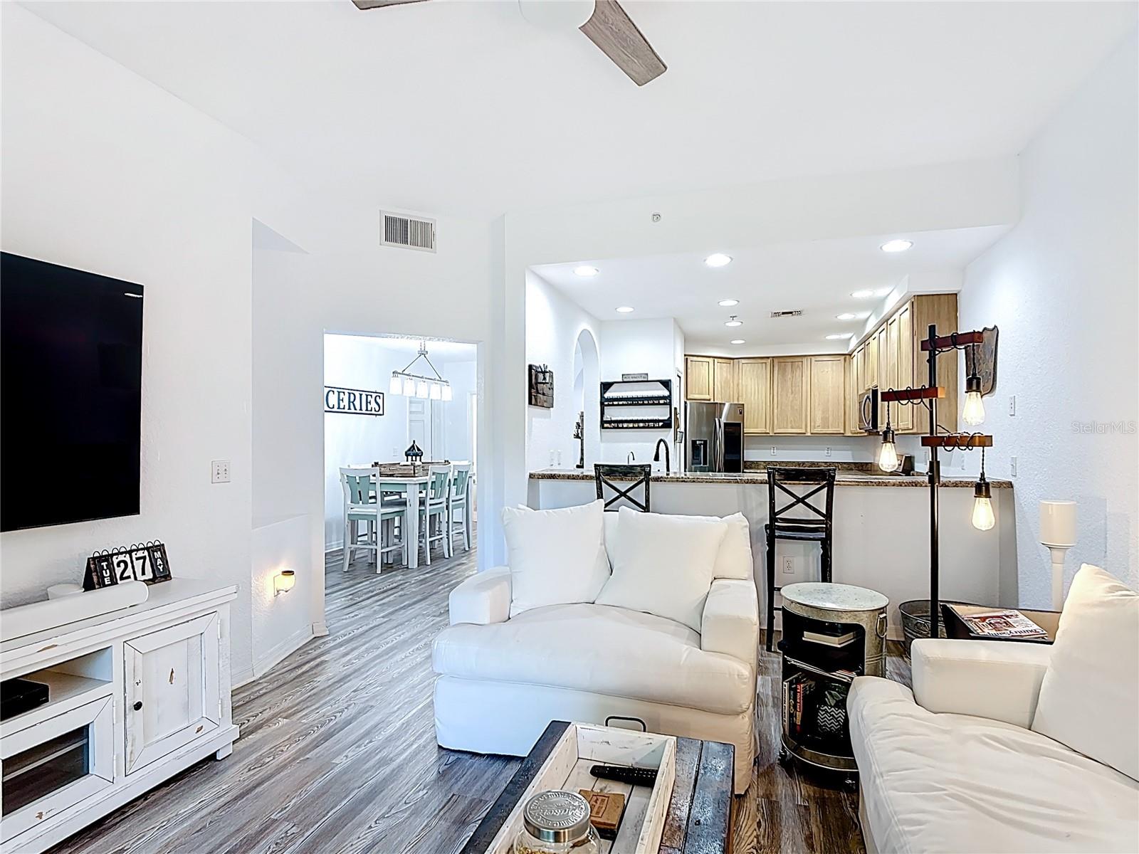 Beautifully updated 2 bedroom, 2 bath condo located in the desirable Caribe Cove Resort community. Step inside to find fresh new LVP flooring in the living and dining rooms, new carpet in the bedrooms, newly painted interior, and brand new stainless steel appliances. The primary suite is spacious with a large en-suite bathroom which has a soaking tub, separate shower, walk in closet and a small private balcony. The second bedroom is generously sized. Enjoy your morning coffee or evening relaxation from the large, private screened-in balcony, which overlooks a peaceful, wooded view providing added privacy. This condo is located in one of the most desirable buildings in the community, tucked quietly at the back with a serene setting that includes a small community pond and a wooded backdrop. The Caribe Cove Resort offers fantastic amenities including a resort-style pool, hot tub, clubhouse, and fitness center. Ideally situated just minutes from Disney, area theme parks, shopping, dining, golf, and all that the Orlando / Kissimmee area has to offer. This condo is move in ready and is perfect as a primary residence, vacation getaway, or investment opportunity. Don’t miss your chance to own in one of the area's most convenient and well priced resort communities!