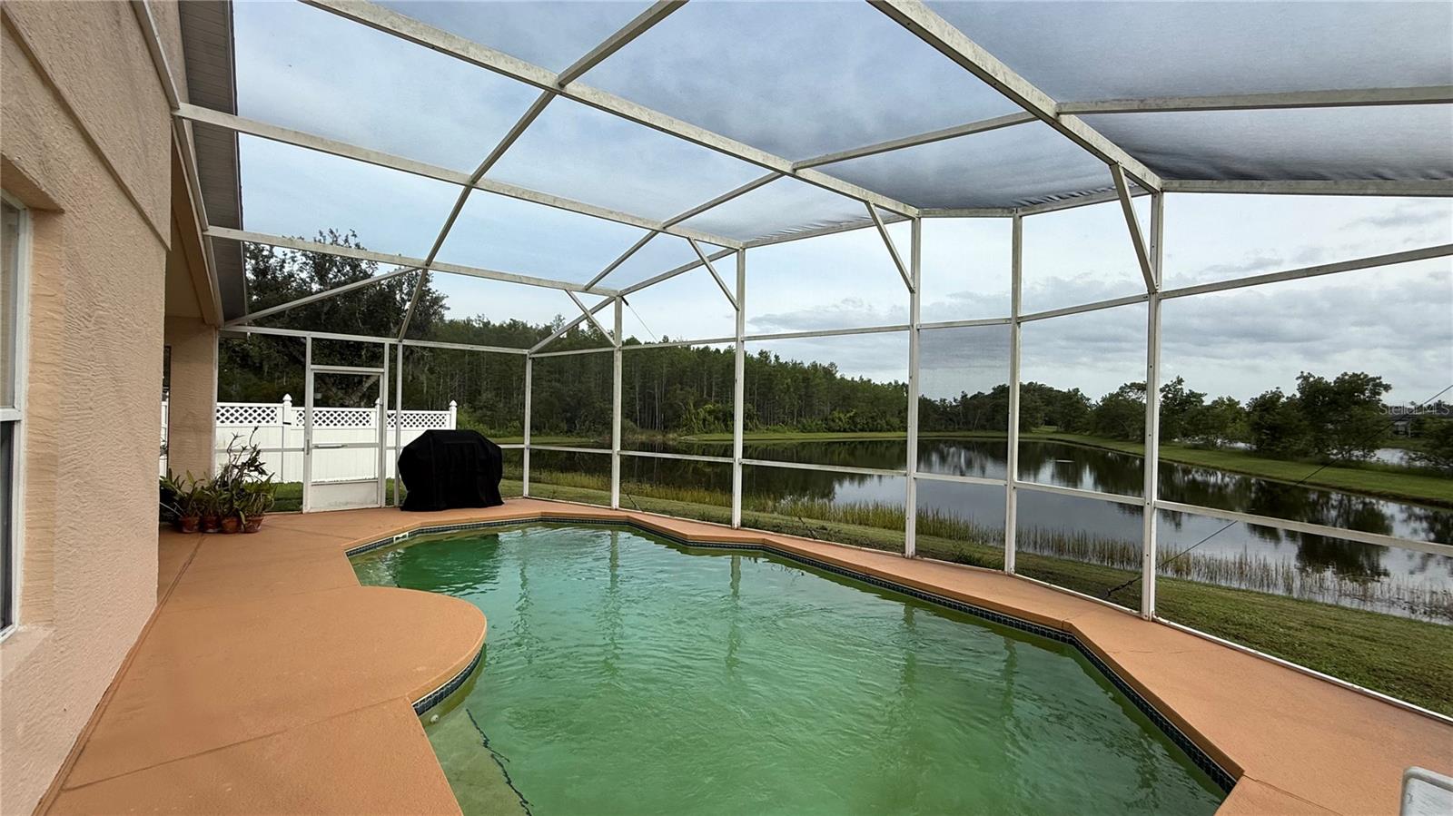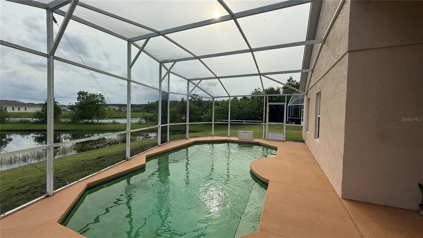 Welcome to this beautifully maintained 4-bedroom, 2-bathroom home featuring a bright and open-concept layout designed for modern living. Impeccably kept and move-in ready, this property offers a clean, spacious interior in excellent condition. * Step outside to your own private oasis — a sparkling in-ground pool protected by a screened enclosure and a covered porch, all overlooking a peaceful pond that provides the perfect backdrop for relaxation or entertaining. * Additional highlights include a private 2-car garage, and a nearly new HVAC system, roof, and water heater — all approximately 3 years old. While the property includes an irrigation system, please note it is currently not functioning and will not be repaired by the sellers. * Nestled in a small, quiet neighborhood on a cul-de-sac, this home offers exceptional privacy and tranquility. It truly has everything you need to enjoy comfortable living in a serene setting. * Don’t miss the opportunity to make this wonderful home your own! * Information recorded in the MLS is intended to be accurate, but NOT GUARANTEED. HOA fees and regulations, home square footage, room sizes, and lot size should be independently verified.