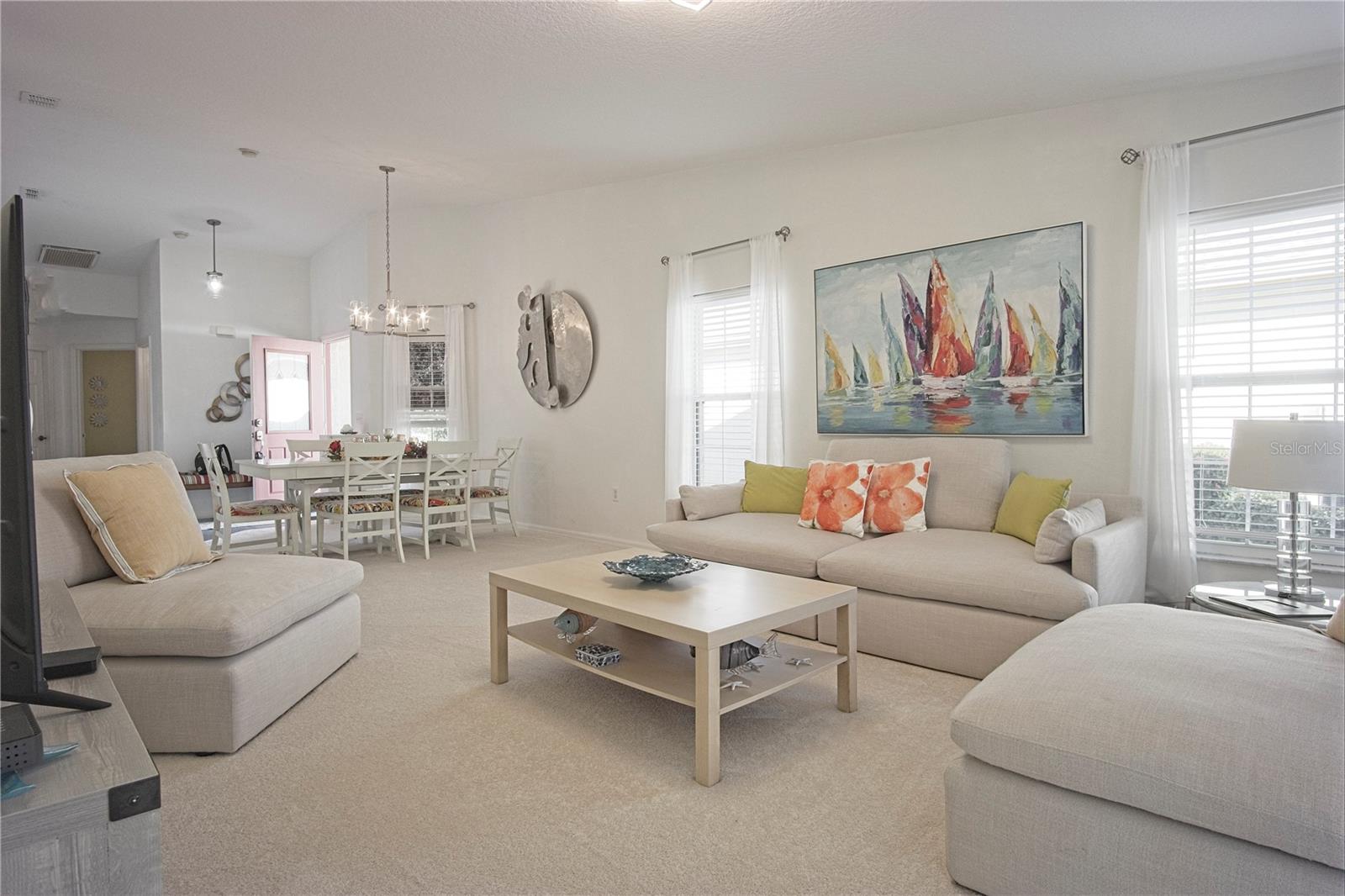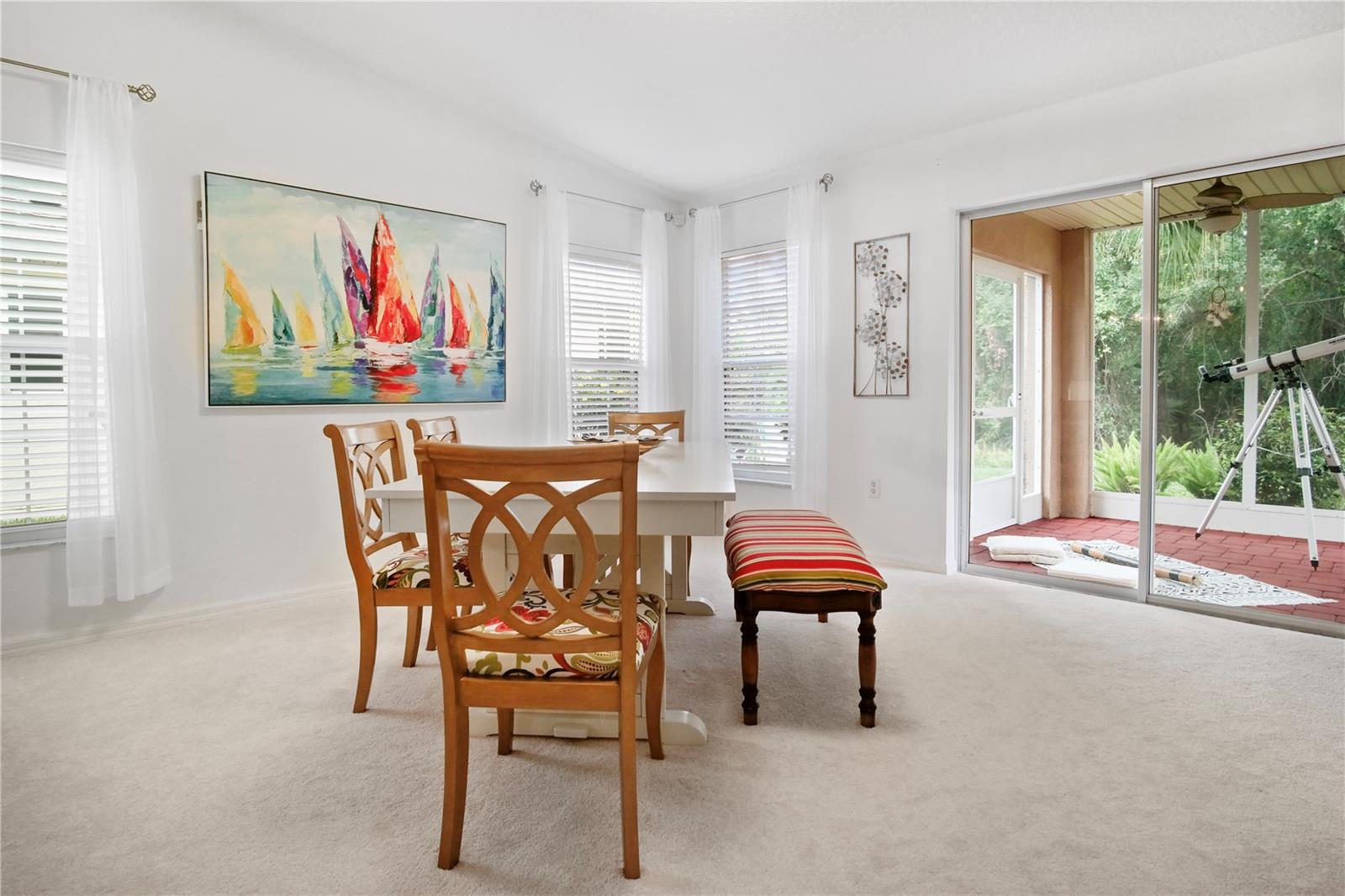 Welcome to this beautifully maintained home, thoughtfully designed for comfort, efficiency, and low-maintenance living. Located on a quiet cul-de-sac and backing up a tranquil conservation area, this home offers peace and privacy. Located in Solivita, one of the nation's premier 55+ communities, this residence offers the ideal setting for those seeking an active and fulfilling lifestyle. Upgrades include New Roof (2025) - Stainless Steel Appliances - Bathrooms - new toilets, faucets, shower fixtures, and sleek glass shower door. The open-concept layout seamlessly connects the living, dining, and kitchen areas, creating a spacious, inviting atmosphere ideal for entertaining and everyday living. The large kitchen is stylish yet functional, with ceramic tile flooring, abundant wood cabinetry, pull-out drawers, and a nook for a dinette set. Enhanced privacy with a split-bedroom layout, positioning the primary suite and guest room on opposite sides of the home. The primary bedroom at the rear offers serene views of a lush conservation area and features a large walk-in closet and en-suite bath with vanity and a walk-in shower. Step outside to a versatile, beautifully designed outdoor living space that expands the home’s livability and charm. A screened lanai serves as a sheltered retreat for year-round enjoyment, providing a seamless transition between indoor comfort and outdoor serenity. Flanking the lania are two paved patio areas, thoughtfully constructed with durable materials for easy maintenance and long-lasting appeal. These outdoor zones are ideal for hosting gatherings, from lively celebrations to peaceful evenings under the stars, offering a perfect balance of functionality and beauty. Just a short walk from one of Solivita’s 14 community pools, you'll enjoy convenient access to resort-style amenities and a vibrant social scene. This move-in-ready home combines smart design, recent upgrades, and a prime location, making it the perfect choice for those ready to embrace the best of 55+ living. Amenities include two championship golf courses, 14 heated pools, two state-of-the-art fitness centers, pickleball, tennis, bocce, walking trails, and over 200 clubs and activities. Residents enjoy multiple dining options, art studios, a ballroom, and full-time lifestyle staff.