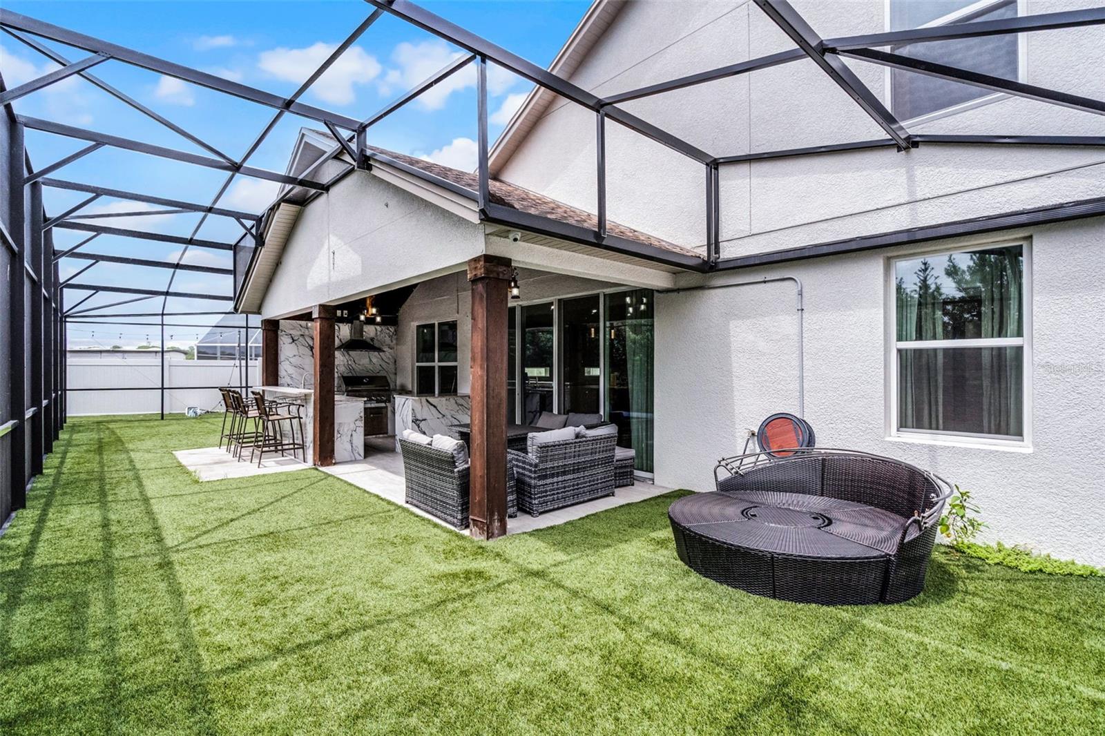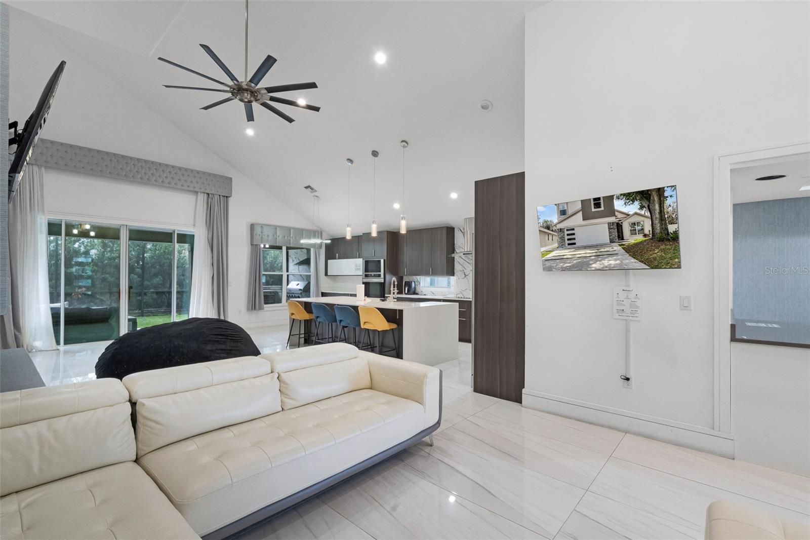 Just 6 miles from the magic of Walt Disney World, 2561 Montego Bay Blvd is more than a vacation home — it’s a turnkey escape built for relaxation and return on investment. Tucked inside the quiet, well-kept Montego Bay community, this fully furnished 4-bedroom, 3.5-bath gem blends comfort, convenience, and charm in all the right ways. It’s been lovingly maintained as a family getaway and only recently opened to short-term rentals, meaning it's in pristine condition and packed with thoughtful upgrades. A brand-new lanai screen spans most of the backyard, where you'll also find an outdoor kitchen perfect for grilling after a day at the parks. Built-in speakers in the living room, primary suite, and backyard bring the soundtrack of your vacation to life, while six exterior security cameras give added peace of mind. Inside, you’ll find 2,766 square feet of bright, airy living space with Smart TVs in every room, oversized beanbags for laid-back movie nights, a fireplace, and a layout perfect for large families or groups. There’s even a first-floor suite for added accessibility. Guests will love the neighborhood amenities, including a community pool and tennis court, and the unbeatable proximity to Disney, Universal, SeaWorld, premium shopping, and endless dining options. Whether you're looking for a high-performing investment or your enchanted hideaway, this home offers the best of both worlds