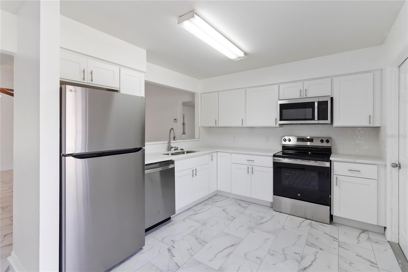 Welcome to 406 Long Drive in Kissimmee’s sought-after Poinciana community! This beautifully updated 3-bedroom, 2-bath home features a modern kitchen with Calcutta gold quartz countertops, stainless steel appliances, and custom cabinets. Porcelain tile floors run throughout, and both bathrooms have been stylishly renovated. The open floor plan provides a bright, spacious feel that is perfect for entertaining or relaxing. Located in the Association of Poinciana Villages (APV)—Florida’s largest HOA—you’ll enjoy access to resort-style amenities including multiple pools, a fitness center, parks, playgrounds, and community events. APV offers over 47,000 acres of green space, RV parking, and a vibrant lifestyle just minutes from shops, dining, and major highways. Whether you're a growing family or a savvy investor, this move-in-ready home blends comfort, style, and convenience in a thriving Central Florida neighborhood. Don’t miss this opportunity—schedule your showing today!