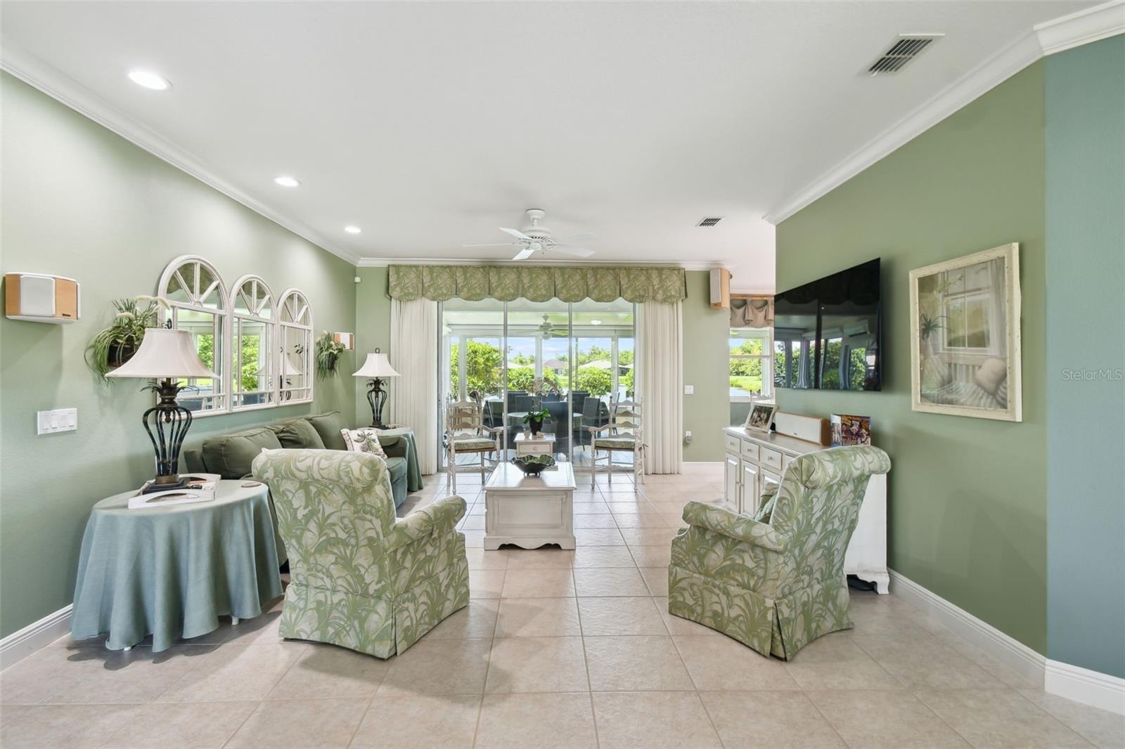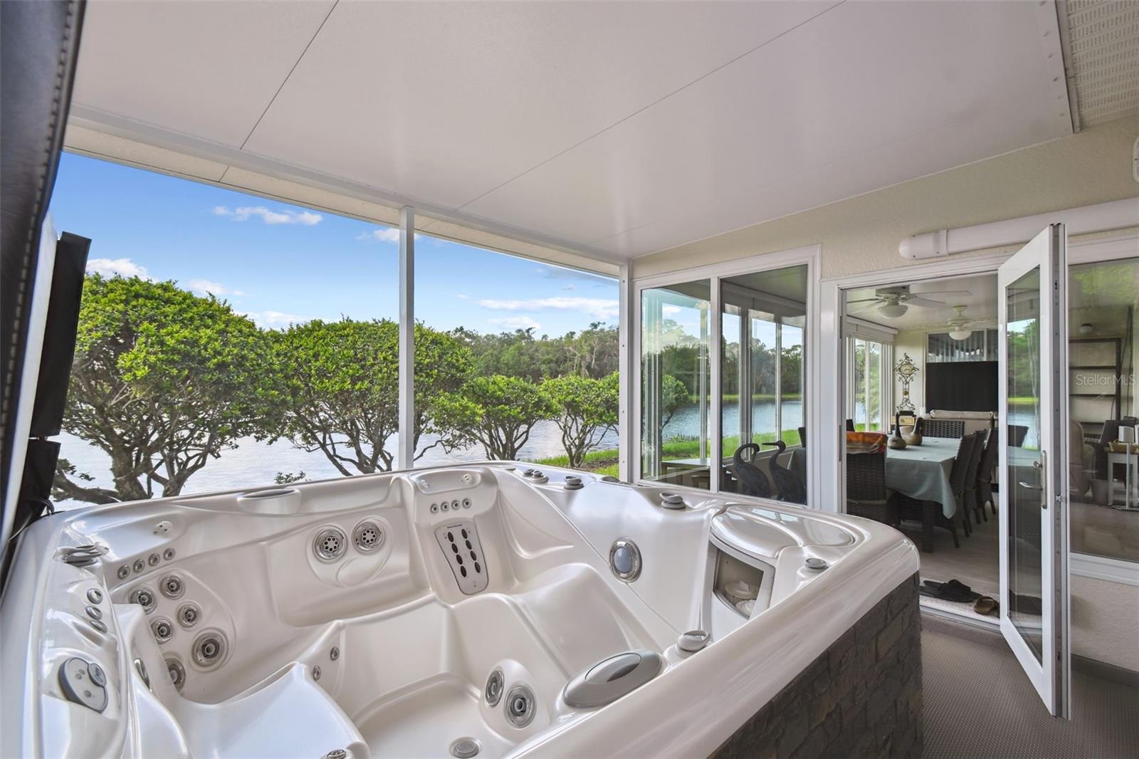 PRICE REDUCTION1 Discover serene Florida living in this beautifully upgraded Carnegie model nestled in a quiet, sought-after Solivita neighborhood—just minutes from the vibrant Village Center amenities. This 2-bedroom, 2-bathroom home, with additional 4 season room and Florida room, offers picturesque water views and a thoughtfully designed split floor plan for optimal privacy. Enter through a charming screened-in front porch into a spacious great room that showcases the stunning water view. The heart of the home is the chef’s gourmet kitchen, featuring an eat-at bar, custom 42" maple cabinetry, double built-in ovens, a cook top, and a kitchen island—perfect for entertaining and everyday living. Enjoy a Florida room and a versatile 4-season room with solar shades, ideal for year-round comfort. The cozy breakfast nook offers a relaxing space to start your day. The primary suite is a peaceful retreat with water views, dual walk-in closets, and a luxuriously remodeled en-suite bathroom (2022) with split vanities, a makeup area, and a custom shower with seating. The guest bedroom and bathroom are thoughtfully positioned on the opposite side of the home for added privacy. Step out to your screened and covered lanai, where you’ll find a private hot tub overlooking the tranquil water—a perfect place to unwind. This stress-free, move-in-ready home includes major recent upgrades: New Roof (2024), New HVAC (2022), High-efficiency windows (2022), New hot water heater (2023), Water softener (2022), Epoxy flooring in the extended 2-car garage (2023), Exterior painted (2022), and Extra insulation. CDD DEBT PAID OFF! Some furnishings and a 2023 golf cart are available outside of contract. Don’t miss this rare opportunity to own a meticulously maintained, upgraded home with stunning water views in one of Central Florida’s premier 55+ communities. Solivita is renowned for its vibrant 55+ community, offering an array of activities and amenities tailored to active adults. Whether you’re enjoying a round of golf, engaging in fitness classes, or simply strolling along scenic walking paths, this neighborhood promotes an active and fulfilling lifestyle with over 200 clubs, sports, and activities to choose from. Enjoy the community’s clubhouse, softball field, 14 swimming pools, an indoor walking track, and much more. Every day offers something new to explore and enjoy! This home also features easy access to nearby shops, dining, and health care, offering the perfect balance of privacy and lifestyle.
