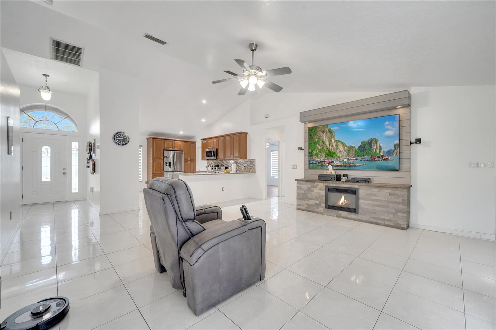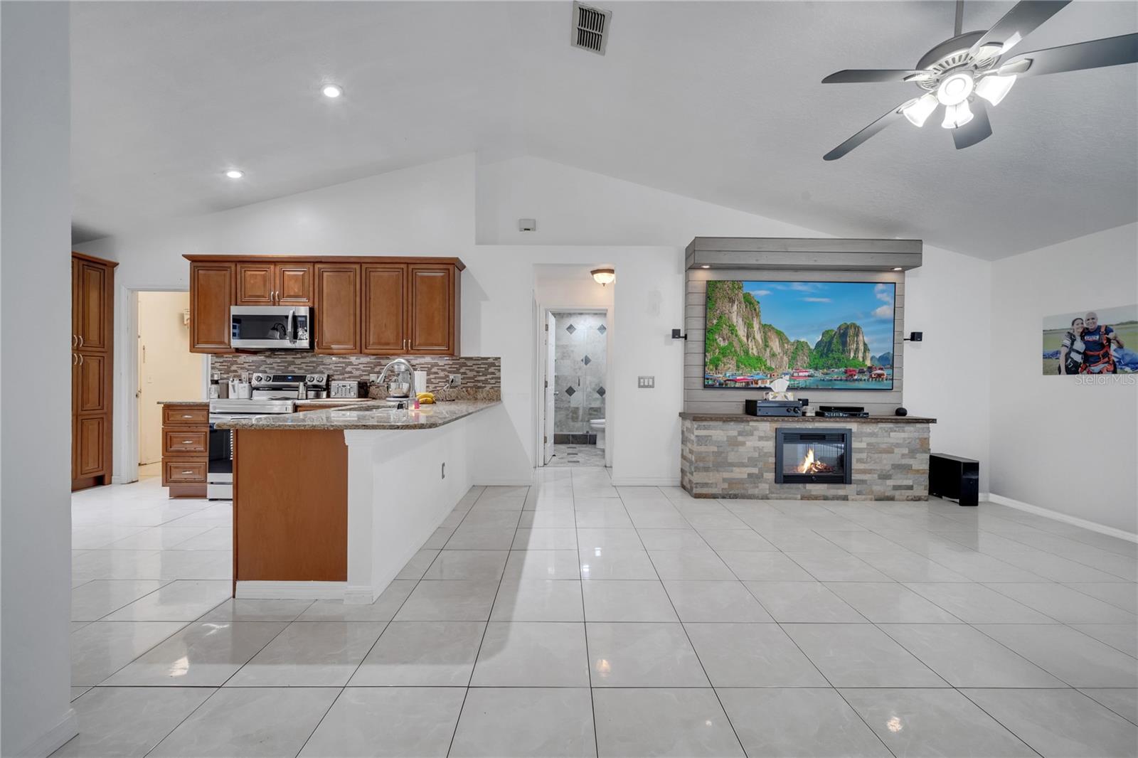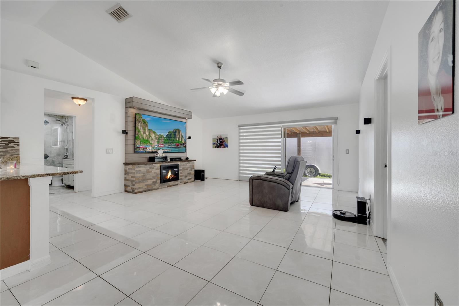 Beautiful 4 Bedroom, 2 Bath Home in Village 1 – Poinciana! Welcome to this stunning 4-bedroom, 2-bathroom home located in the desirable Village 1 community of Poinciana. Situated on a spacious 0.23-acre lot with no rear neighbors, this 1,668 sq. ft. residence offers modern upgrades, privacy, and an open-concept layout perfect for everyday living and entertaining. Enjoy a fully renovated kitchen featuring stainless steel appliances (just 2 years old), 42" upper cabinets for ample storage, and a built-in wine refrigerator—a perfect setup for the home chef and entertainer alike. For added efficiency, the home includes a tankless water heater, an 8-year-old roof, and a 6-year-old A/C system. Inside, you'll find no carpet throughout—the bedrooms are finished with luxury vinyl flooring for a clean and stylish look. The primary suite offers two walk-in closets and an upgraded bathroom with a jacuzzi tub with jets, a separate walk-in shower, and touch-activated mirrors. The second bathroom also features a touch mirror and a Bluetooth speaker exhaust fan, allowing you to enjoy music or videos as you unwind. The spacious great room features vaulted ceilings, a custom entertainment center that fits up to an 86" TV, and an electric fireplace with heater—ideal for cozy nights in. The home is outfitted with LED lighting in all bedrooms and modern zebra blinds on all windows and the sliding patio door, blending style with convenience. This well-maintained home is move-in ready and packed with thoughtful upgrades. Don’t miss your opportunity—schedule your private showing today before it’s gone!