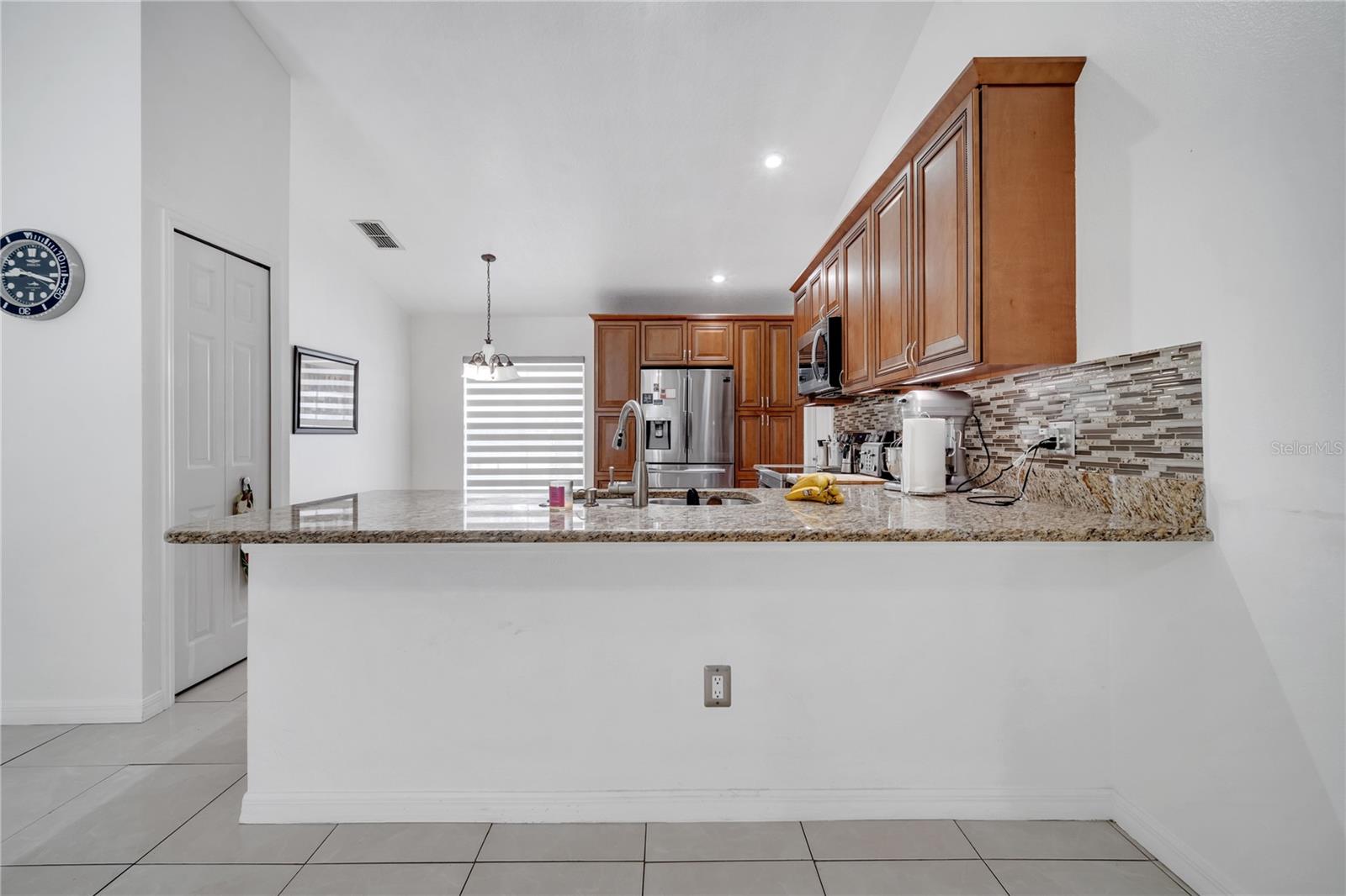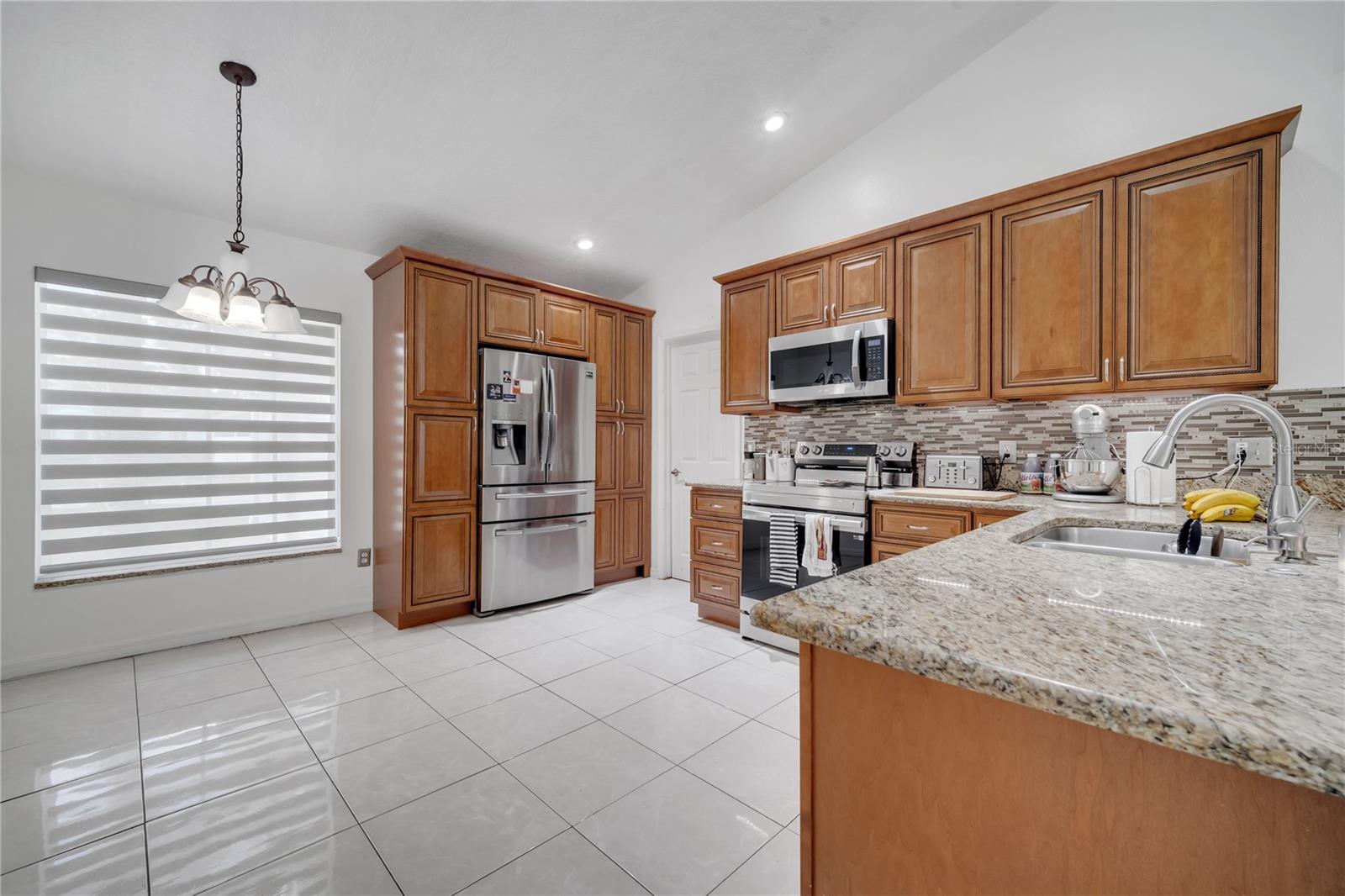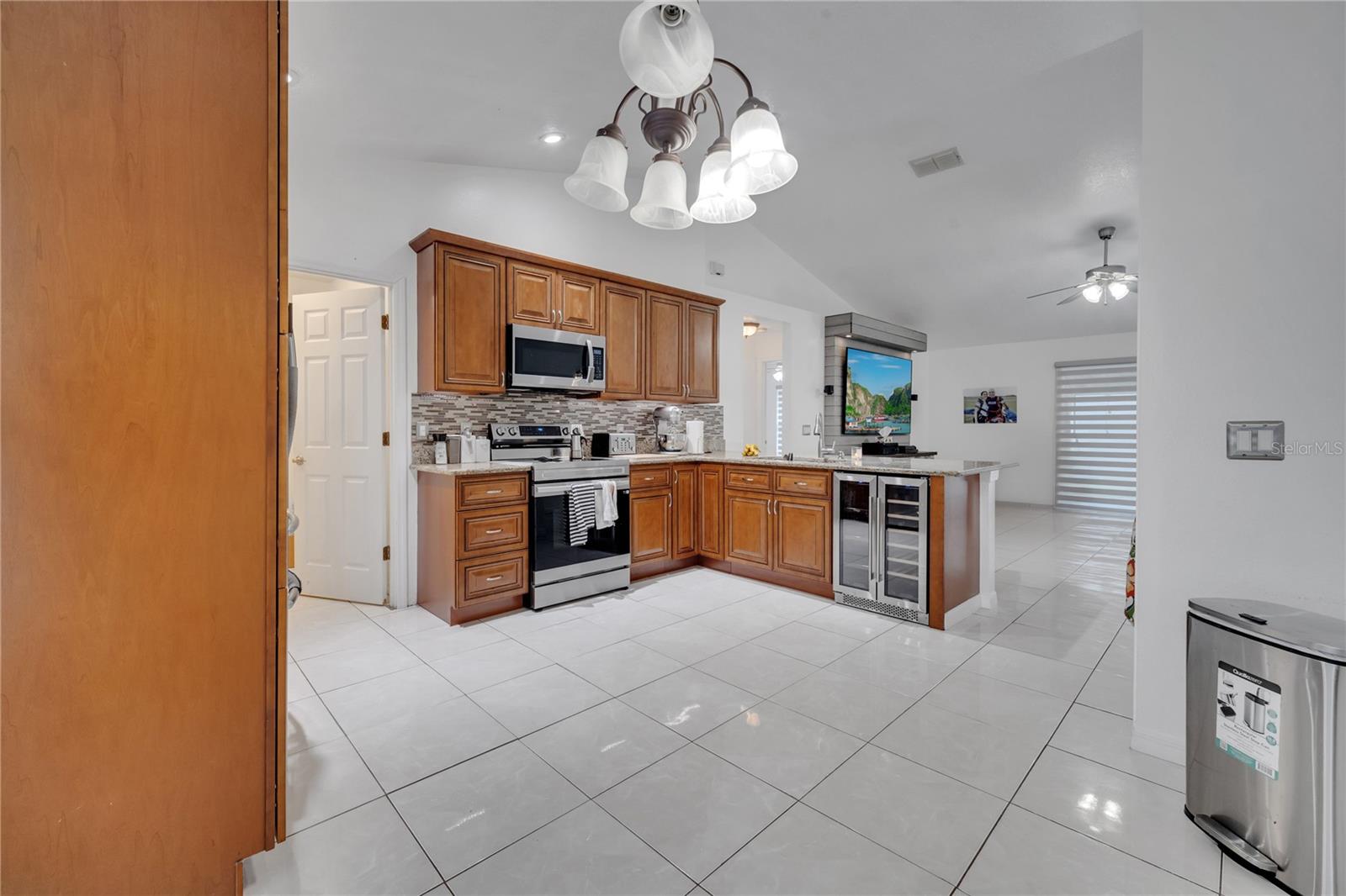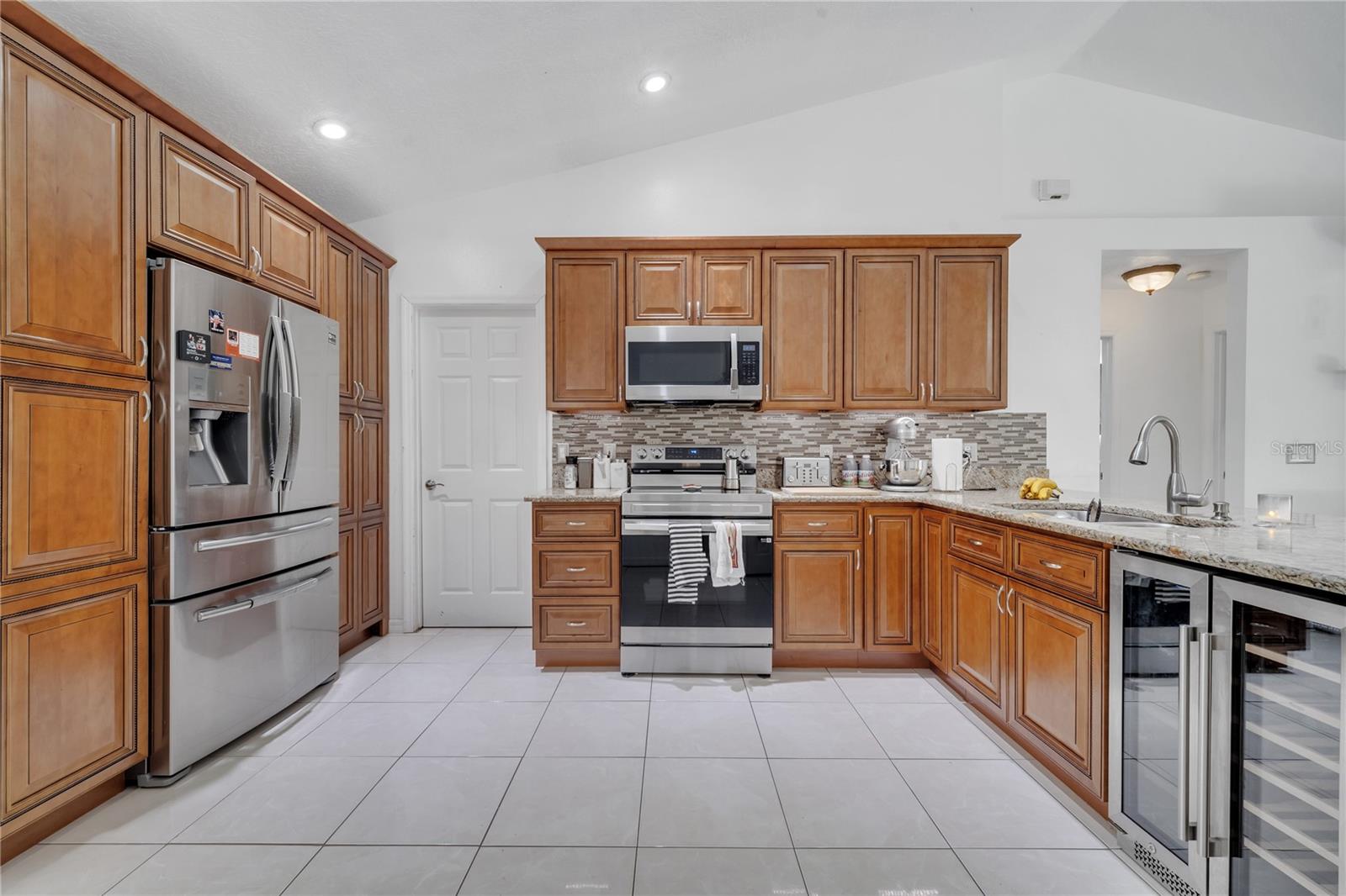 Beautiful 4 Bedroom, 2 Bath Home in Village 1 – Poinciana! Welcome to this stunning 4-bedroom, 2-bathroom home located in the desirable Village 1 community of Poinciana. Situated on a spacious 0.23-acre lot with no rear neighbors, this 1,668 sq. ft. residence offers modern upgrades, privacy, and an open-concept layout perfect for everyday living and entertaining. Enjoy a fully renovated kitchen featuring stainless steel appliances (just 2 years old), 42" upper cabinets for ample storage, and a built-in wine refrigerator—a perfect setup for the home chef and entertainer alike. For added efficiency, the home includes a tankless water heater, an 8-year-old roof, and a 6-year-old A/C system. Inside, you'll find no carpet throughout—the bedrooms are finished with luxury vinyl flooring for a clean and stylish look. The primary suite offers two walk-in closets and an upgraded bathroom with a jacuzzi tub with jets, a separate walk-in shower, and touch-activated mirrors. The second bathroom also features a touch mirror and a Bluetooth speaker exhaust fan, allowing you to enjoy music or videos as you unwind. The spacious great room features vaulted ceilings, a custom entertainment center that fits up to an 86" TV, and an electric fireplace with heater—ideal for cozy nights in. The home is outfitted with LED lighting in all bedrooms and modern zebra blinds on all windows and the sliding patio door, blending style with convenience. This well-maintained home is move-in ready and packed with thoughtful upgrades. Don’t miss your opportunity—schedule your private showing today before it’s gone!