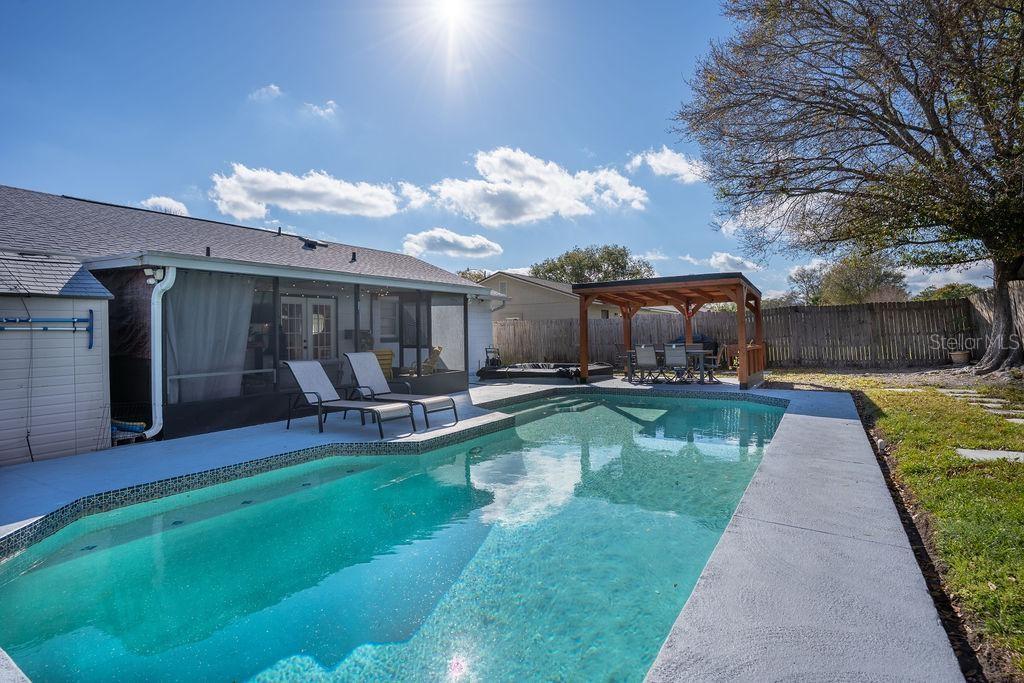 This beautifully updated 3-bedroom, 2-bath home in Jacaranda Estates features a private screened-in pool, pergola, wood-burning fireplace, and ceramic tile throughout. Recent upgrades include a new roof (3 years old), A/C (2020), and water heater. The kitchen comes with nearly-new appliances under warranty, and a backyard with Yoga deck, shed adds storage space. Enjoy the freedom of no HOA or CDD. Conveniently located near schools, shopping, and major highways. Move-in ready and perfect for families or investors!