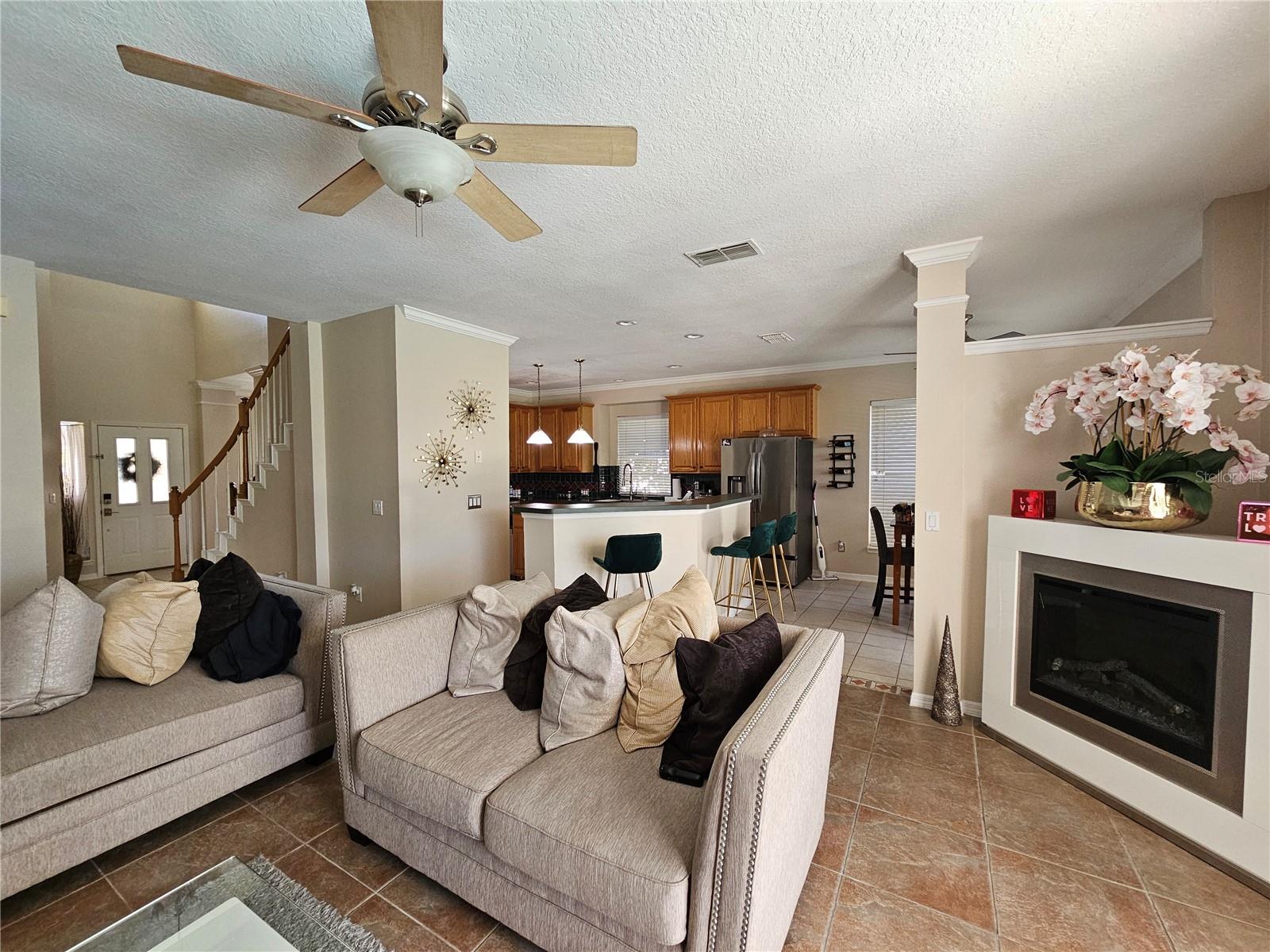 Set within the beautifully maintained and gated Remington Golf Course Community, this exceptional 2-story pool home offers the perfect blend of elegance, comfort, and Florida luxury living. Featuring 5 spacious bedrooms, 4 full bathrooms, and breathtaking golf course views, this residence is truly one-of-a-kind. From the moment you arrive, the lush landscaping, manicured lawn, and welcoming front porch create an inviting first impression. Step inside to a bright, open-concept layout filled with natural light. The seamless flow between the living room, dining area, and kitchen makes this home ideal for both everyday living and entertaining. The chef-inspired kitchen is equipped with stainless steel appliances, a gas stove, pristine countertops, a breakfast bar, and ample cabinetry—perfect for both cooking and casual gatherings. The primary suite is a true retreat, located on the main floor with private access to the pool. Enjoy a spa-like en-suite bath featuring dual vanities, a soaking tub, walk-in shower, and a generous walk-in closet. A second room on the main level serves perfectly as a guest suite, home office, or playroom, complete with its own full bathroom for maximum versatility. Upstairs, you’ll find three additional bedrooms and two full bathrooms, providing privacy and comfort for everyone. Open the sliding glass doors to your screened lanai and sparkling private pool, all set against the serene backdrop of the Remington Golf Course. Whether you’re hosting friends or relaxing poolside, this backyard is your personal oasis. Additional highlights include a newer roof (2019), direct golf course access, and proximity to top-rated schools, shopping, dining, and major roadways. Don’t miss your chance to own this golf course gem in the heart of Kissimmee. Schedule your private showing today—before it’s gone!