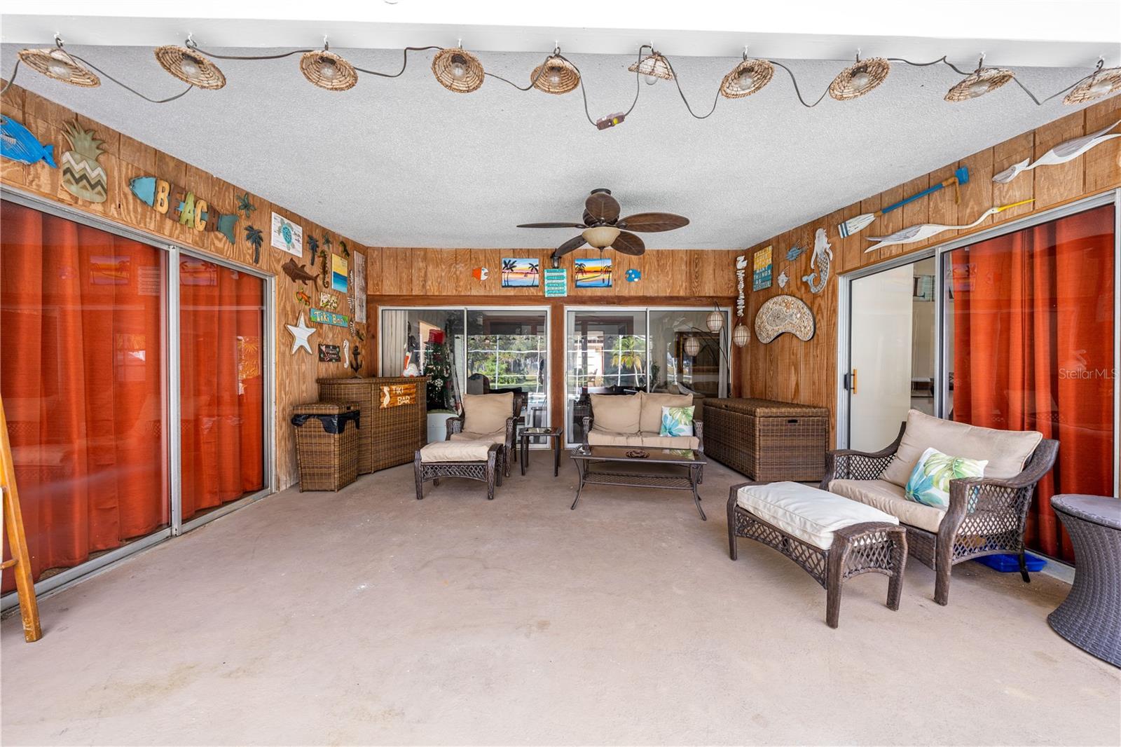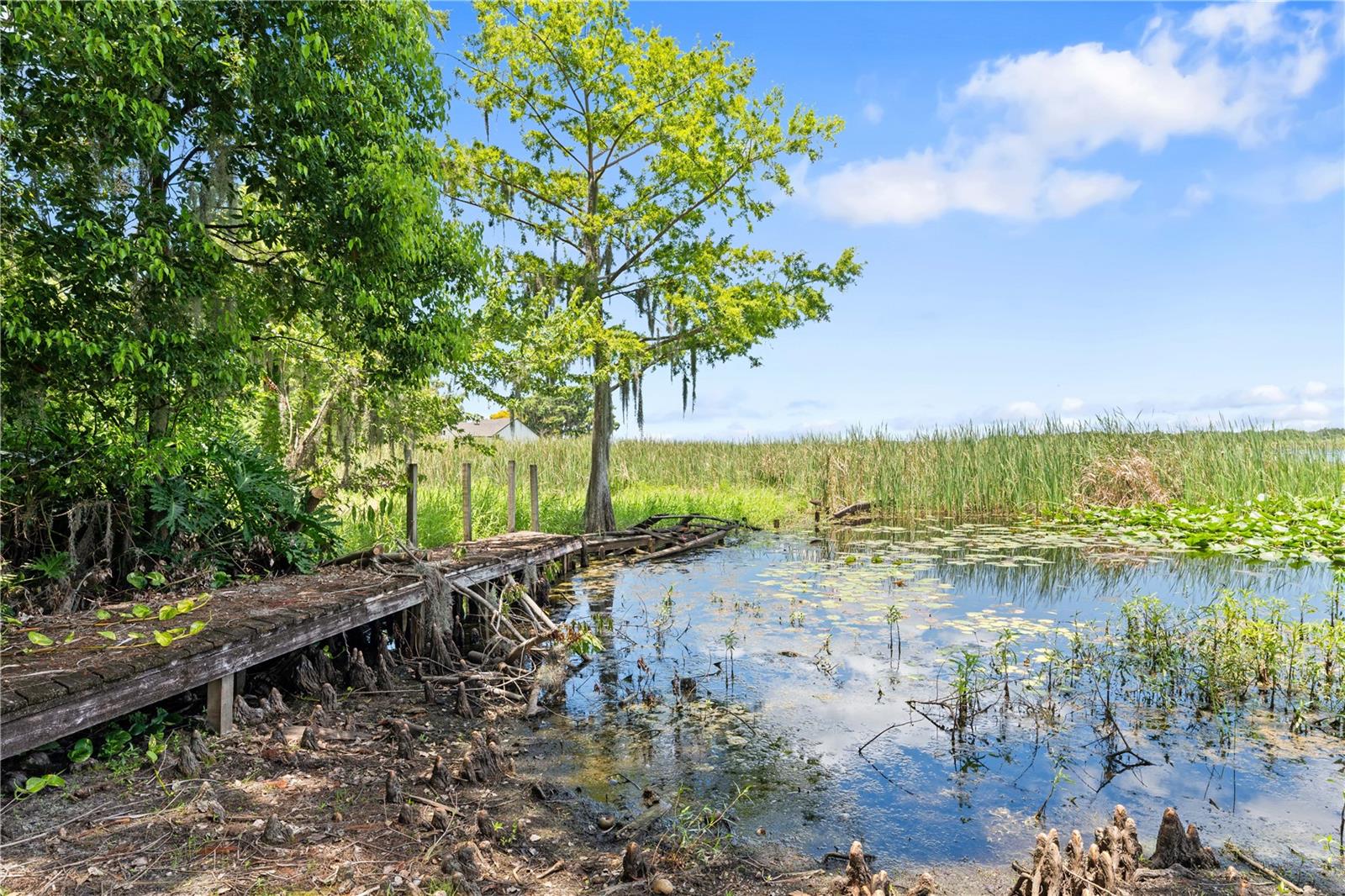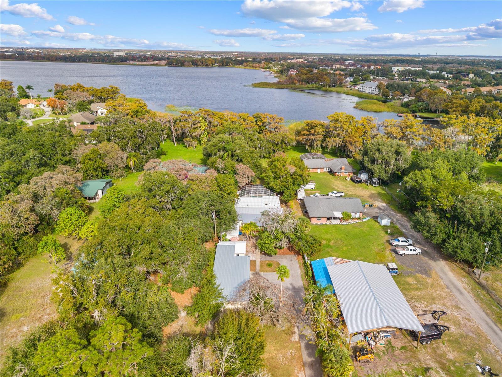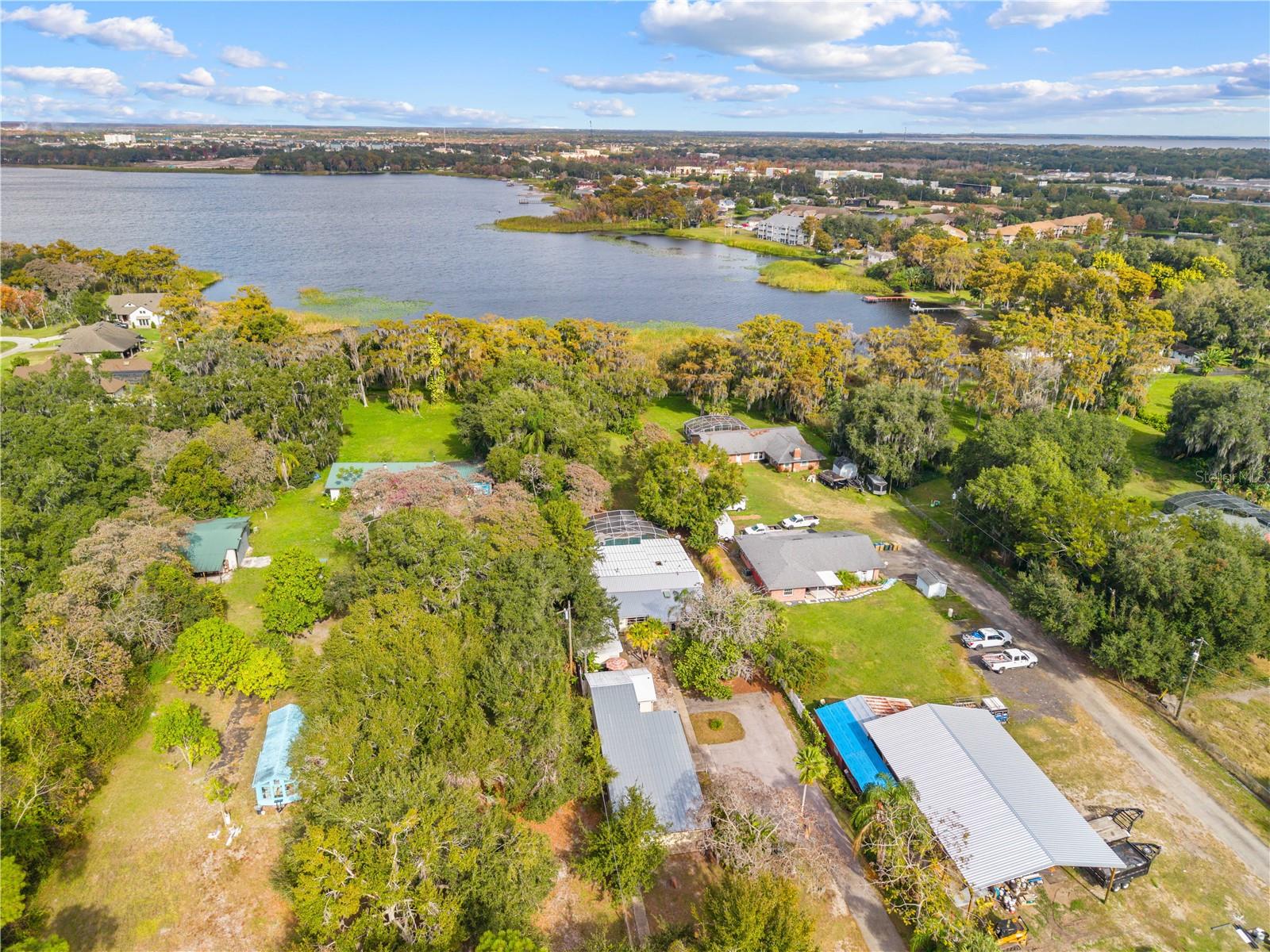 TROPICAL LAKEFRONT OASIS with GUEST COTTAGE on 1.64 acres - No HOA + 2 Large DETACHED GARAGES(3 Bays) and WORKSHOP. Escape to this beautifully updated 4-bedroom, 3-bath single-story home + Cottage situated on a true lakefront lot along the private shores of Fish Lake. The main home features 2,556 sq ft of living space (5,396 sq ft under roof), thoughtfully designed with natural light, soothing colors, and warm finishes throughout. The open-concept layout flows seamlessly for everyday living and entertaining, while the home’s tasteful updates and abundant windows create a serene, welcoming atmosphere. A fully equipped detached guest cottage includes its own kitchen and offers excellent flexibility for multigenerational living, private guest accommodations, or potential rental income. Outdoors, enjoy lush, Key West-inspired landscaping with mature plumeria, tabebuia, bougainvillea, cypress trees, and natural Florida brush. A charming bench swing hangs in the shade, adding to the peaceful, resort-style ambiance. The property also includes two detached garages — one of which could be converted into additional living or recreational space. The seller already has plans for the conversion. A wooden dock structure is already in place and and is ready to be rebuilt — offering incredible potential for enjoying lakefront living at its best. RECENT UPGRADES: Kitchen Remodel with Quartz countertops. The property has 2 AC units both have been updated(2018 &2023) Kitchen Remodel with Quartz countertops. Metal Roof front half & sky lights of Main Home(2019), Metal Roof on front half(2021) RUN BY PROPANE GAS: Kitchen Stove, Kitchen Water Heater & additional Rinnai Water Tankless Water Heater(2020) & Dryer. Exterior Main Electrical Panel and Pole(2021) Pool Heater(2017) Garage Doors(2018) Asphalt Driveway (2020) New Electrical Main Panel Outside & Pole(2021) The south side of Ames Haven is scheduled to become a Cul De Sac. Tucked away on 1.64 acres, this property offers the perfect blend of privacy, charm, and convenience — with easy access to the Turnpike, shopping, dining, and major commuter routes.