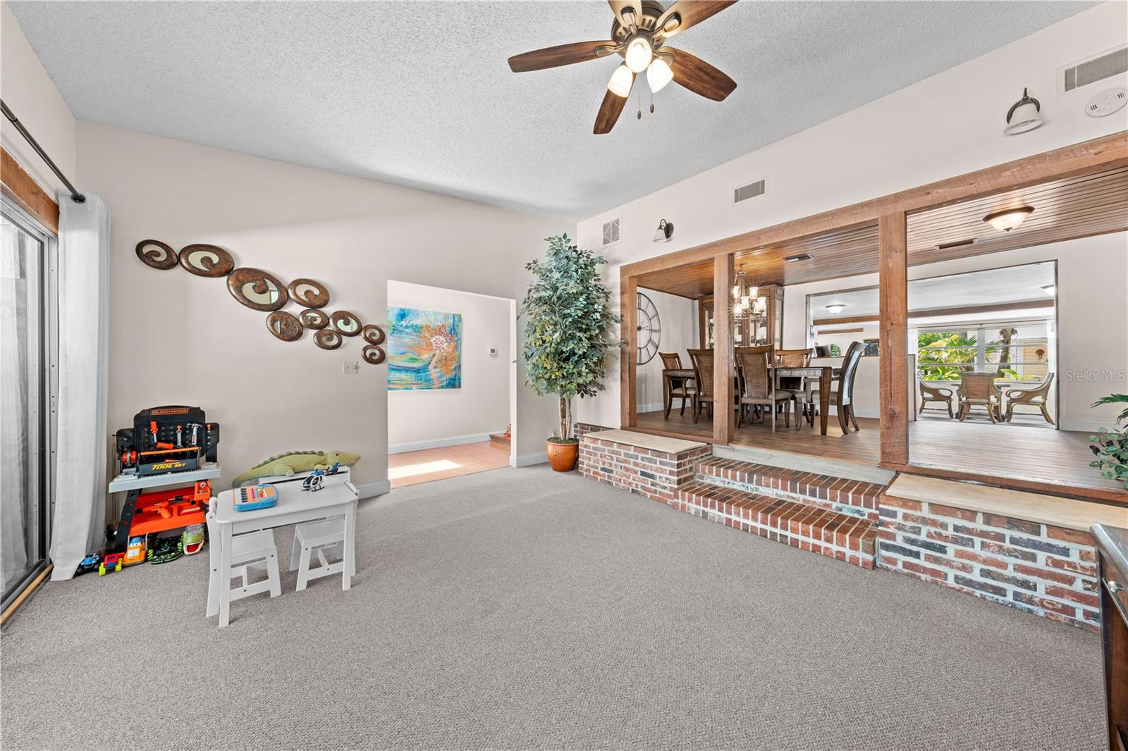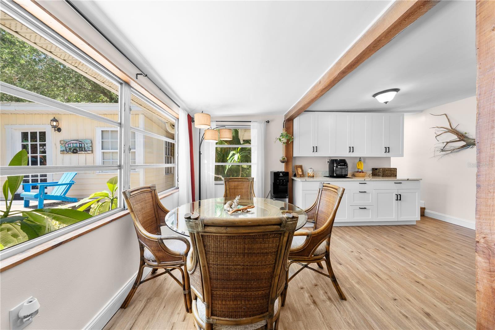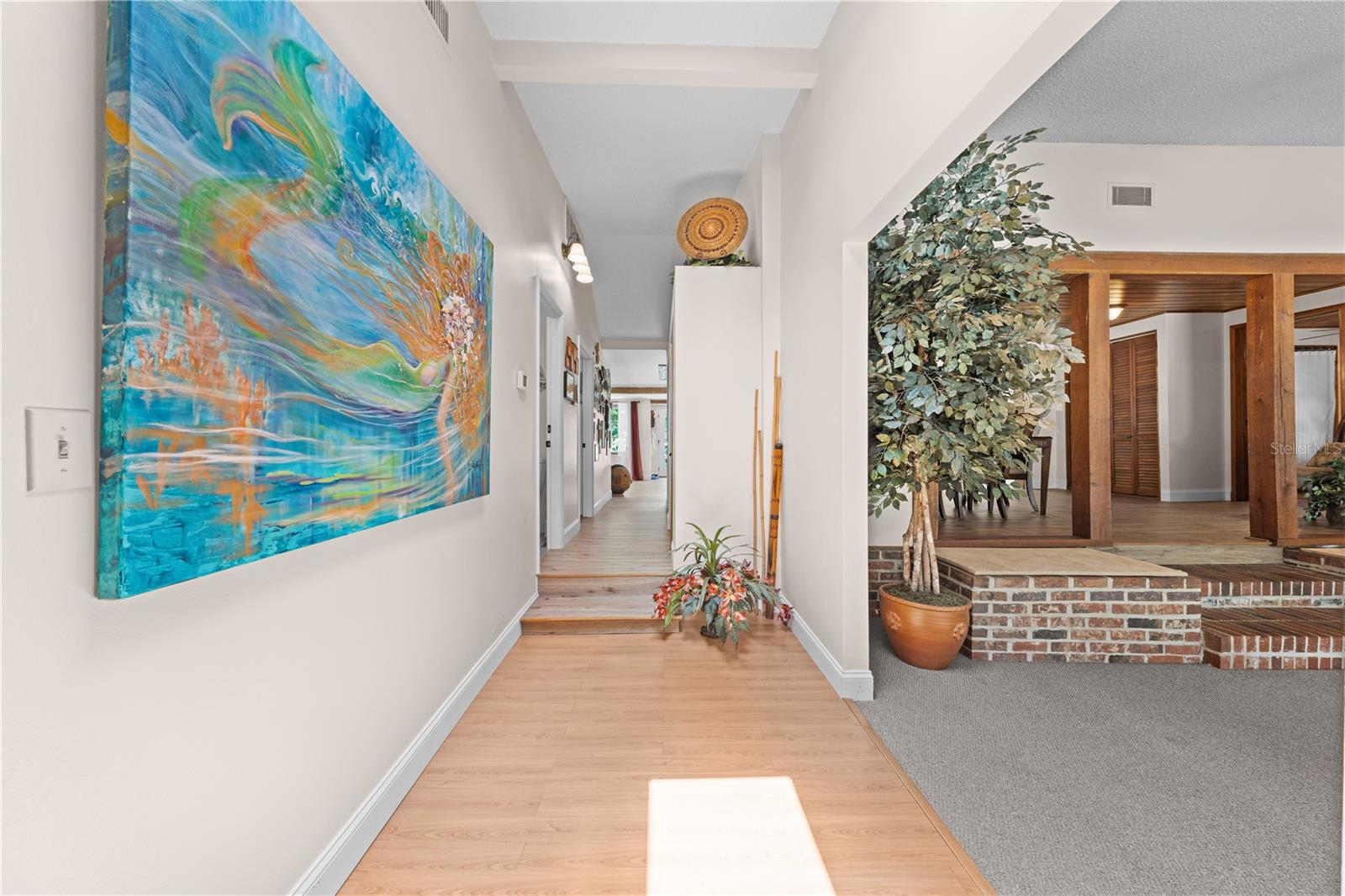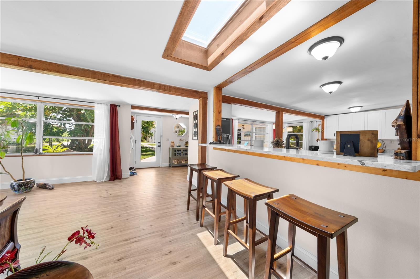 TROPICAL LAKEFRONT OASIS with GUEST COTTAGE on 1.64 acres - No HOA + 2 Large DETACHED GARAGES(3 Bays) and WORKSHOP. Escape to this beautifully updated 4-bedroom, 3-bath single-story home + Cottage situated on a true lakefront lot along the private shores of Fish Lake. The main home features 2,556 sq ft of living space (5,396 sq ft under roof), thoughtfully designed with natural light, soothing colors, and warm finishes throughout. The open-concept layout flows seamlessly for everyday living and entertaining, while the home’s tasteful updates and abundant windows create a serene, welcoming atmosphere. A fully equipped detached guest cottage includes its own kitchen and offers excellent flexibility for multigenerational living, private guest accommodations, or potential rental income. Outdoors, enjoy lush, Key West-inspired landscaping with mature plumeria, tabebuia, bougainvillea, cypress trees, and natural Florida brush. A charming bench swing hangs in the shade, adding to the peaceful, resort-style ambiance. The property also includes two detached garages — one of which could be converted into additional living or recreational space. The seller already has plans for the conversion. A wooden dock structure is already in place and and is ready to be rebuilt — offering incredible potential for enjoying lakefront living at its best. RECENT UPGRADES: Kitchen Remodel with Quartz countertops. The property has 2 AC units both have been updated(2018 &2023) Kitchen Remodel with Quartz countertops. Metal Roof front half & sky lights of Main Home(2019), Metal Roof on front half(2021) RUN BY PROPANE GAS: Kitchen Stove, Kitchen Water Heater & additional Rinnai Water Tankless Water Heater(2020) & Dryer. Exterior Main Electrical Panel and Pole(2021) Pool Heater(2017) Garage Doors(2018) Asphalt Driveway (2020) New Electrical Main Panel Outside & Pole(2021) The south side of Ames Haven is scheduled to become a Cul De Sac. Tucked away on 1.64 acres, this property offers the perfect blend of privacy, charm, and convenience — with easy access to the Turnpike, shopping, dining, and major commuter routes.