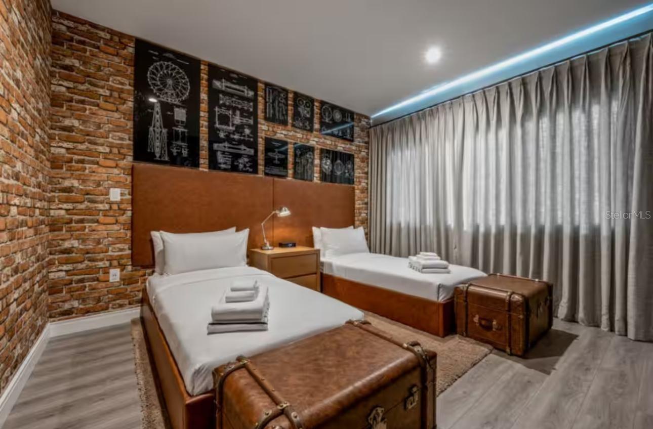 This exceptional two-story townhome in MAGIC VILLAGE RESORT offers meticulously designed living space, featuring 4 bedrooms and 4.5 bathrooms. The open-concept layout is perfect for entertaining vacation guests, while the bright and airy interior guarantees a comfortable and inviting atmosphere. The private outdoor area, complete with a grill and spa bathtub, enhances your leisure experience. Located in a prestigious gated resort community just minutes from Disney and Orlando's top attractions, this luxury unit is an investor's dream, allowing daily rentals. It’s not just a vacation home; it's a safe and vibrant place to live your dream lifestyle. (Amenities construction is set to begin soon.)