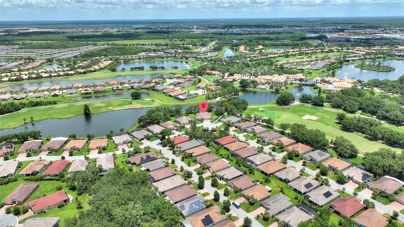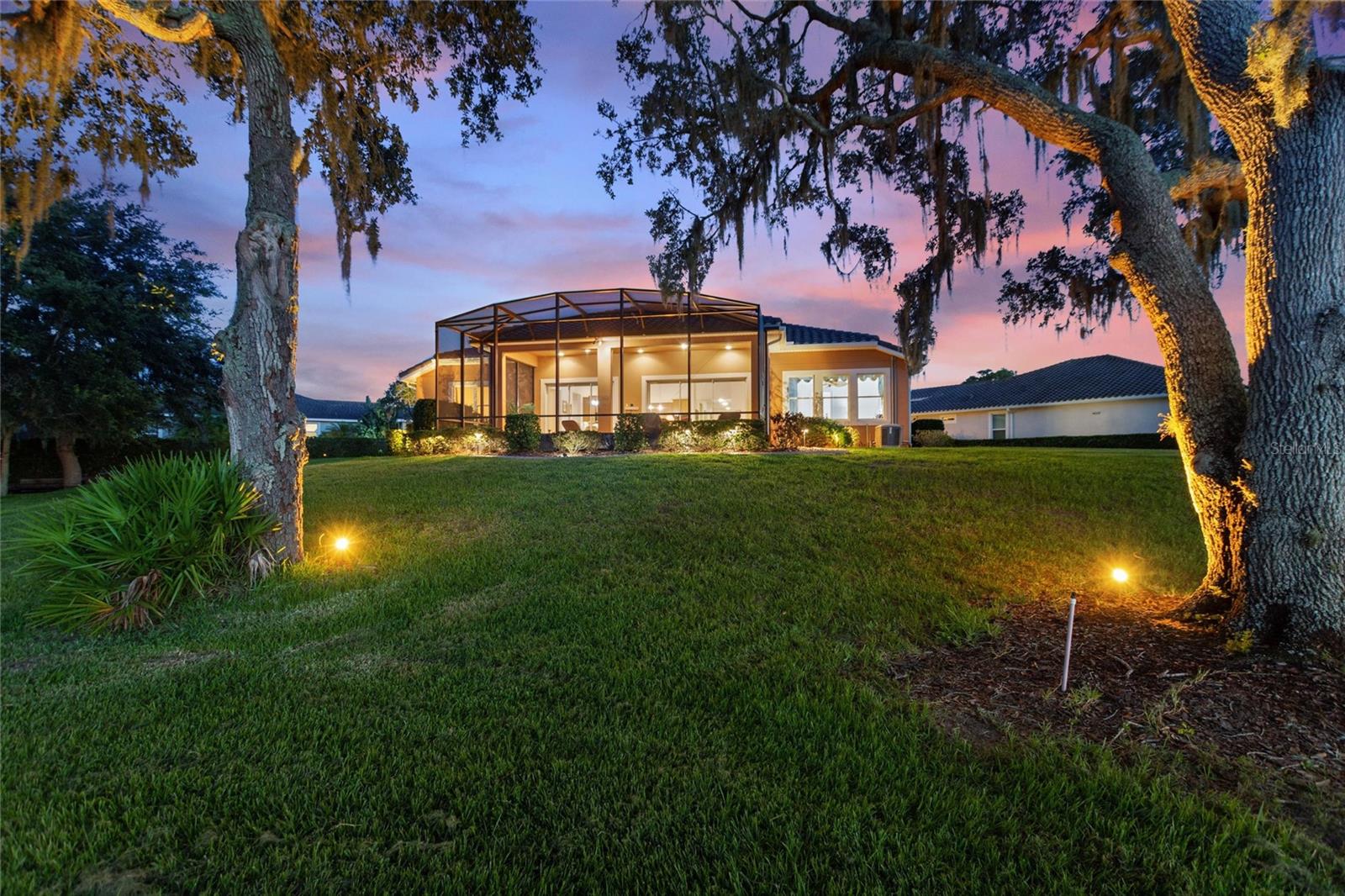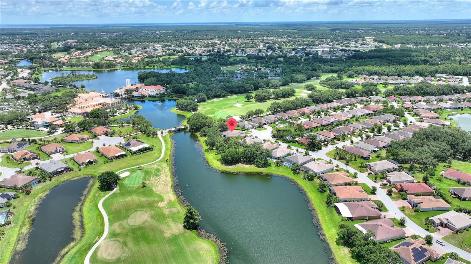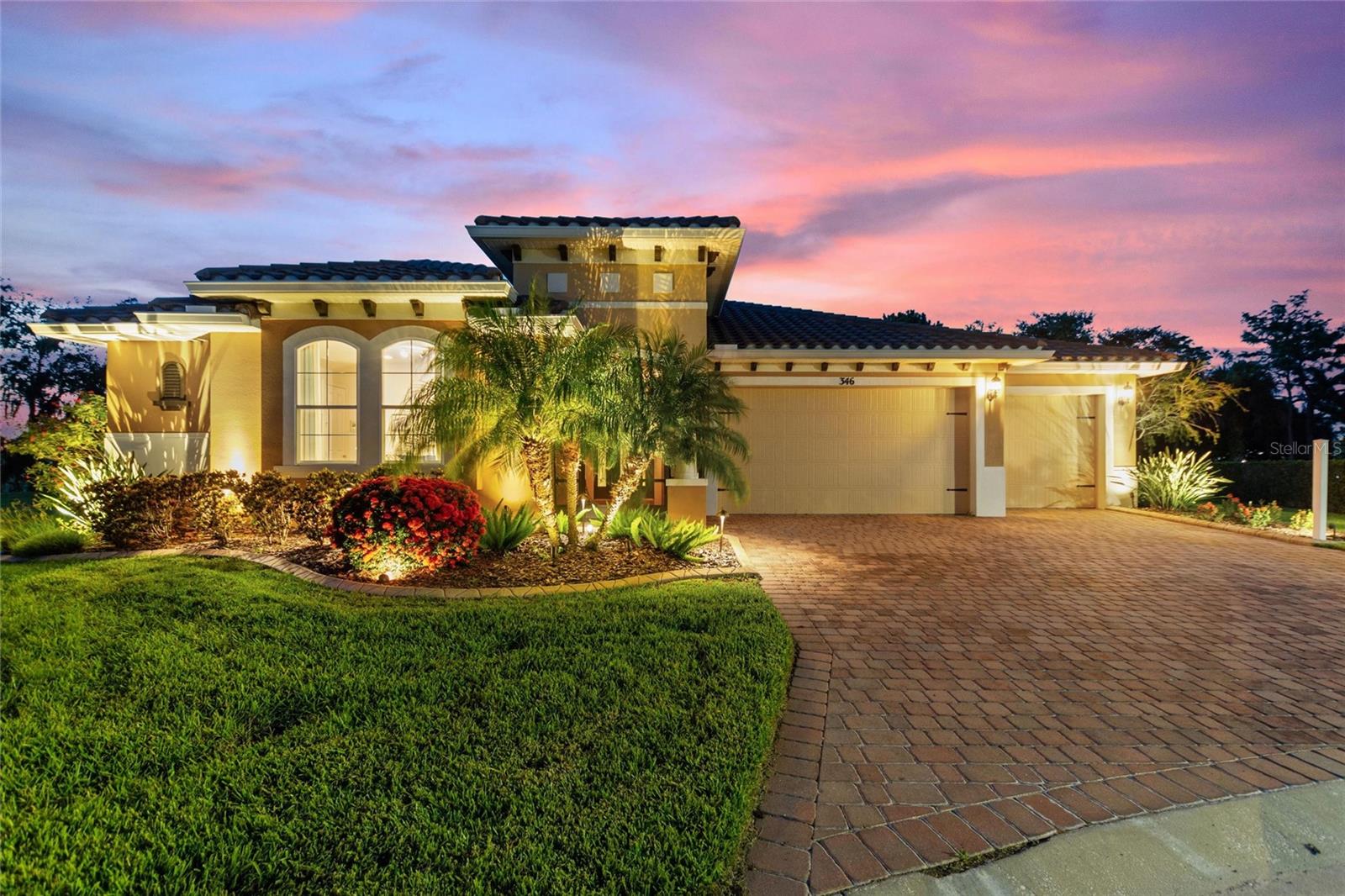 Discover luxury living in Solivita at 346 Treviso Drive with this rarely available MARSALA model, featuring a PRIVATE MULTI-GEN SUITE and sweeping WATER & GOLF VIEWS on a spacious pie-shaped lot. This unique home provides the ultimate private WORK-FROM-HOME option, in-law arrangement, or spacious retreat for family and friends! Find breathtaking views in every direction and the charming Solivita village, a short walk away. Step inside a large welcoming foyer and find thoughtful upgrades throughout; from a leaded glass entry door to 8-foot interior doors and custom trim work; every detail meticulously considered. The great room impresses with twin 12’ triple sliders with views to the water, creating a seamless indoor-outdoor experience into a large lanai featuring travertine flooring and recessed lighting. The home is open plan, the kitchen displays upgraded cabinetry, premium hardware, a striking backsplash, and a custom glass pantry entry—a perfect mix of style and practicality. Retreat to the deluxe over-sized owner’s suite, and a spa-inspired bathroom including a step-in hydro tub and separate shower, dual sinks, a water closet, and a spacious walk-in closet that has a convenient with direct access to the well-designed laundry room. The rest of the main home includes a well-sized guest bedroom with walk-in closet, a full bath with a transom window, and an adjacent double-door den/flex space with large windows. The STANDOUT FEATURE that makes this luxurious home unique is the fully functional private suite with southern exposure, with separate portico entry, a cozy living room, a galley-style kitchenette, well-appointed bath complete with a shower, double vanity sink, walk-in closet, and bedroom. This separate space offers comfort and privacy, making it perfect for hosting family or friends. Additional practical luxuries include dual AC controllers, a Propane Tankless Hot-Water Heater switchable to the standard electric hot water heater, and a Pentair whole-house cartridge water filtration system, a hardwired security system, a handy drop zone at the garage entry, and propane Automatic Whole-House Generator for peace of mind. The spacious 3-car garage features a new epoxy coating with decorative chips, Saf-T-Racking for storage. Other items upgrade exterior landscaping with border curbing and extensive nighttime lighting, full tile roof, and fresh exterior paint, rounding out this amazing package. Don’t let the opportunity slip by to own this incredible property; schedule your private tour of 346 Treviso today and start living your Florida dream. **PLEASE SEE THE 3D MATTERPORT TOUR** Make the award-winning Active 55+ Community of Solivita your new home today. Featuring 14 Pools, 2 Championship 18 Hole Golf Courses, Tennis, Pickleball, basketball, softball, over 240 clubs, spa services, state-of-the-art exercise facilities on 4,200 acres of conservation. Take your golf cart for a spin to dine and share a cocktail with friends; or to enjoy the many activities that Solivita COMMUNITY enjoys. The HOA includes landscaping, irrigation AND high-speed fiber TV and Internet. HCA Florida Poinciana Hospital is directly across the street along with the new Poinciana Lakes Plaza, with lots of shopping and restaurants.