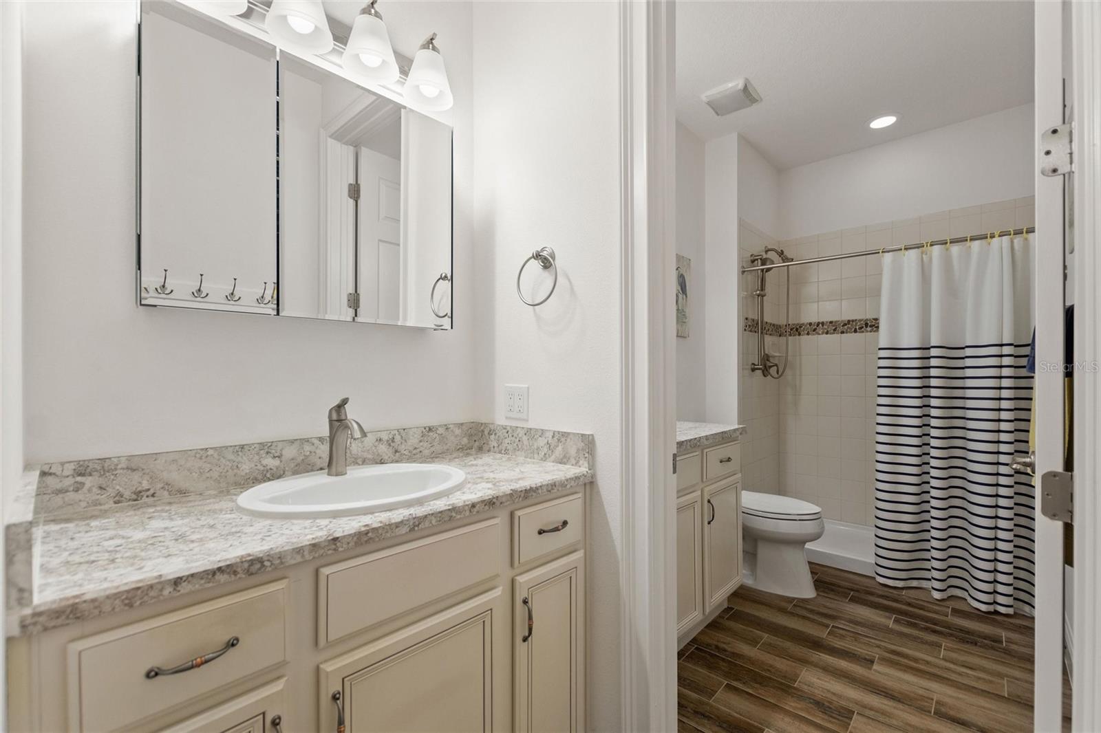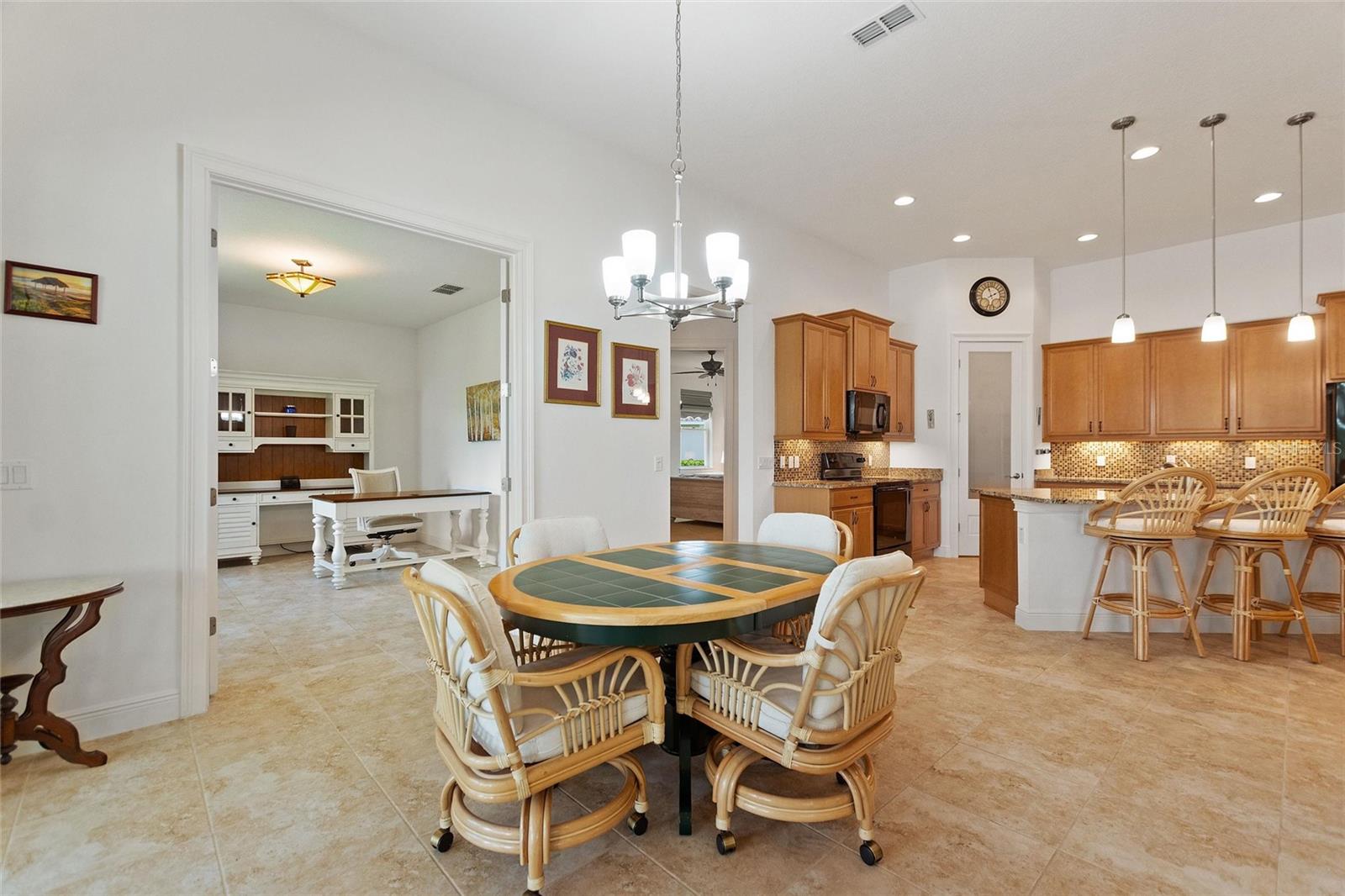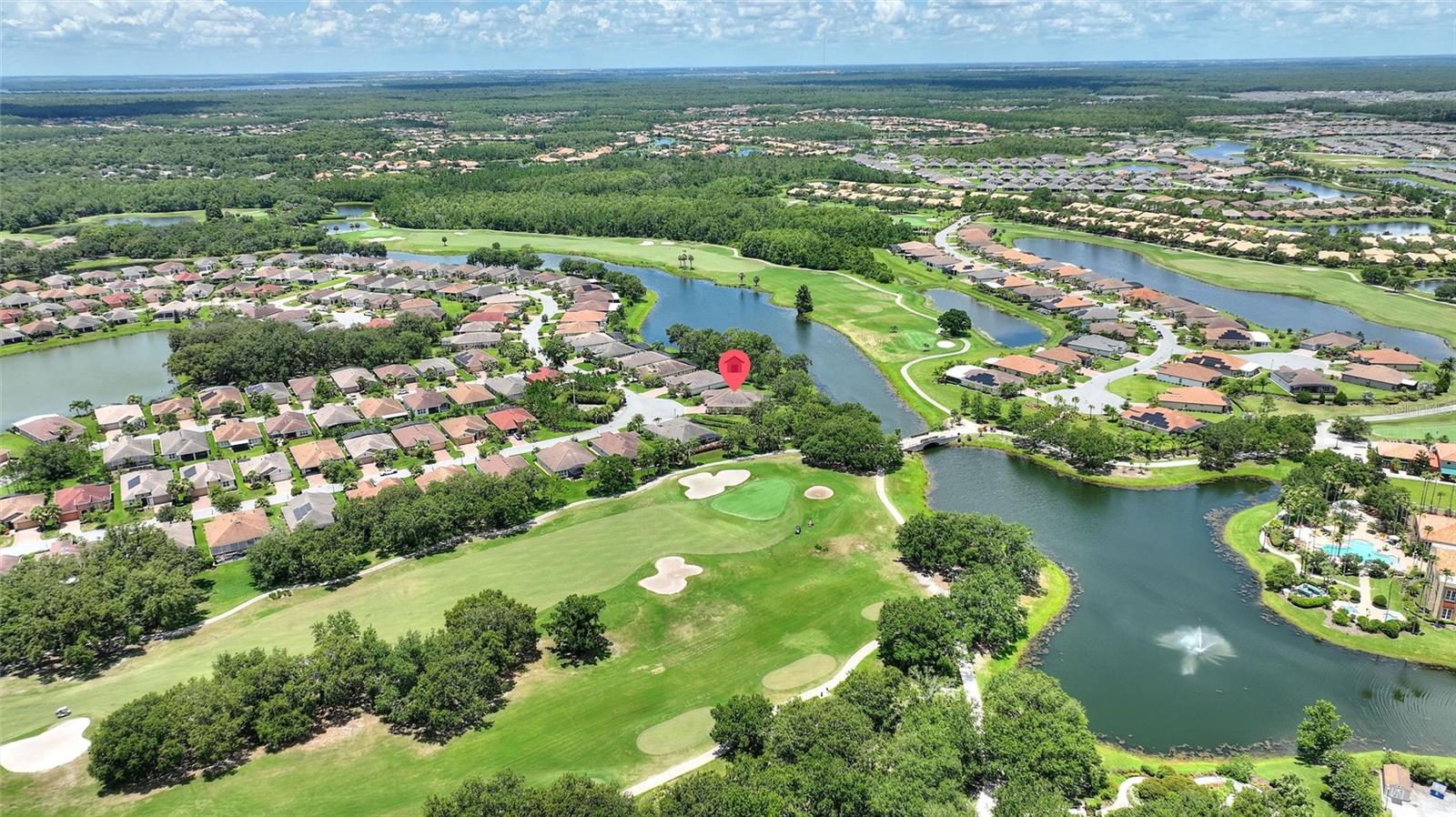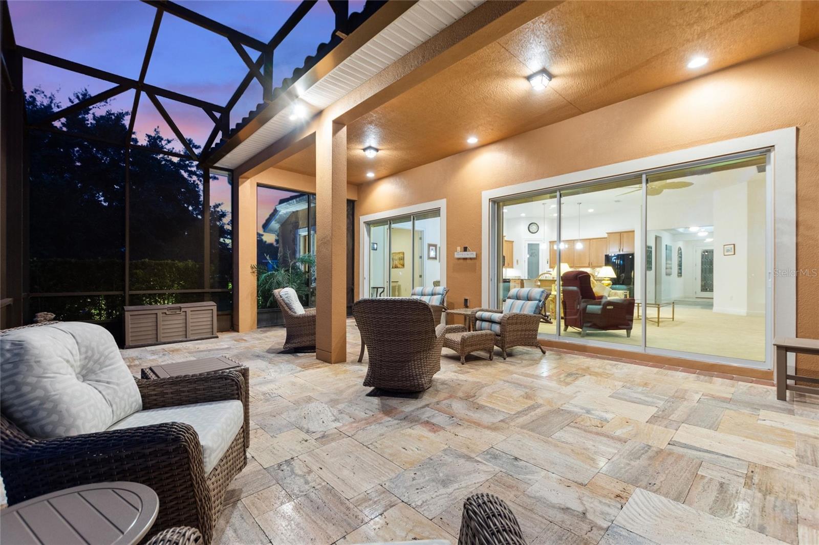 Discover luxury living in Solivita at 346 Treviso Drive with this rarely available MARSALA model, featuring a PRIVATE MULTI-GEN SUITE and sweeping WATER & GOLF VIEWS on a spacious pie-shaped lot. This unique home provides the ultimate private WORK-FROM-HOME option, in-law arrangement, or spacious retreat for family and friends! Find breathtaking views in every direction and the charming Solivita village, a short walk away. Step inside a large welcoming foyer and find thoughtful upgrades throughout; from a leaded glass entry door to 8-foot interior doors and custom trim work; every detail meticulously considered. The great room impresses with twin 12’ triple sliders with views to the water, creating a seamless indoor-outdoor experience into a large lanai featuring travertine flooring and recessed lighting. The home is open plan, the kitchen displays upgraded cabinetry, premium hardware, a striking backsplash, and a custom glass pantry entry—a perfect mix of style and practicality. Retreat to the deluxe over-sized owner’s suite, and a spa-inspired bathroom including a step-in hydro tub and separate shower, dual sinks, a water closet, and a spacious walk-in closet that has a convenient with direct access to the well-designed laundry room. The rest of the main home includes a well-sized guest bedroom with walk-in closet, a full bath with a transom window, and an adjacent double-door den/flex space with large windows. The STANDOUT FEATURE that makes this luxurious home unique is the fully functional private suite with southern exposure, with separate portico entry, a cozy living room, a galley-style kitchenette, well-appointed bath complete with a shower, double vanity sink, walk-in closet, and bedroom. This separate space offers comfort and privacy, making it perfect for hosting family or friends. Additional practical luxuries include dual AC controllers, a Propane Tankless Hot-Water Heater switchable to the standard electric hot water heater, and a Pentair whole-house cartridge water filtration system, a hardwired security system, a handy drop zone at the garage entry, and propane Automatic Whole-House Generator for peace of mind. The spacious 3-car garage features a new epoxy coating with decorative chips, Saf-T-Racking for storage. Other items upgrade exterior landscaping with border curbing and extensive nighttime lighting, full tile roof, and fresh exterior paint, rounding out this amazing package. Don’t let the opportunity slip by to own this incredible property; schedule your private tour of 346 Treviso today and start living your Florida dream. **PLEASE SEE THE 3D MATTERPORT TOUR** Make the award-winning Active 55+ Community of Solivita your new home today. Featuring 14 Pools, 2 Championship 18 Hole Golf Courses, Tennis, Pickleball, basketball, softball, over 240 clubs, spa services, state-of-the-art exercise facilities on 4,200 acres of conservation. Take your golf cart for a spin to dine and share a cocktail with friends; or to enjoy the many activities that Solivita COMMUNITY enjoys. The HOA includes landscaping, irrigation AND high-speed fiber TV and Internet. HCA Florida Poinciana Hospital is directly across the street along with the new Poinciana Lakes Plaza, with lots of shopping and restaurants.