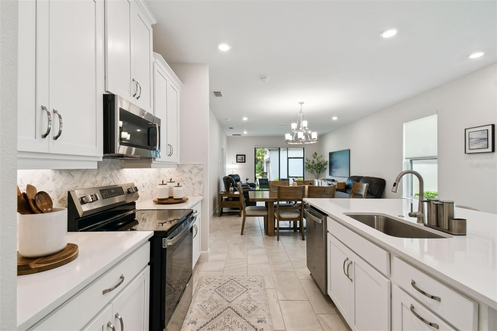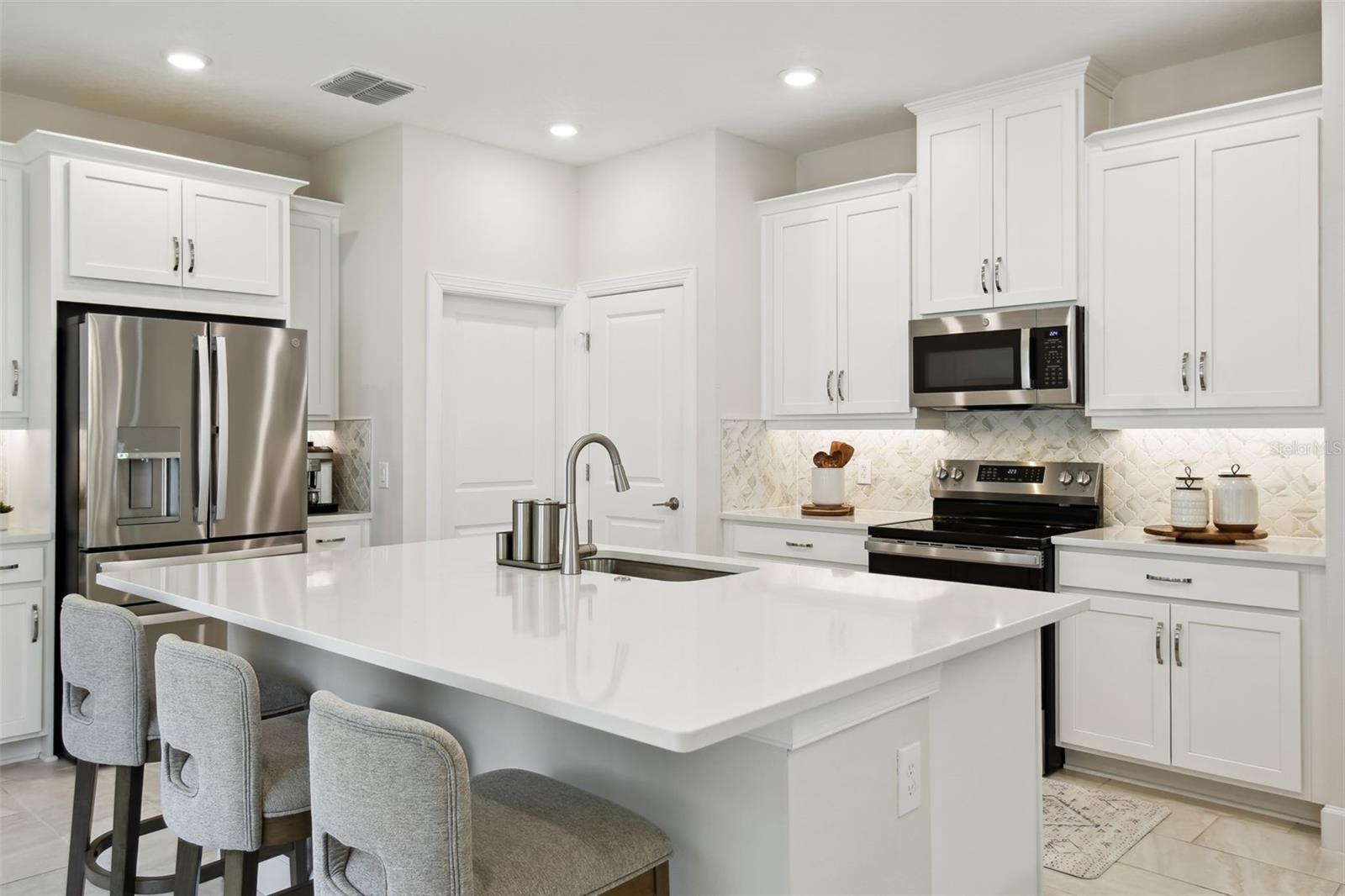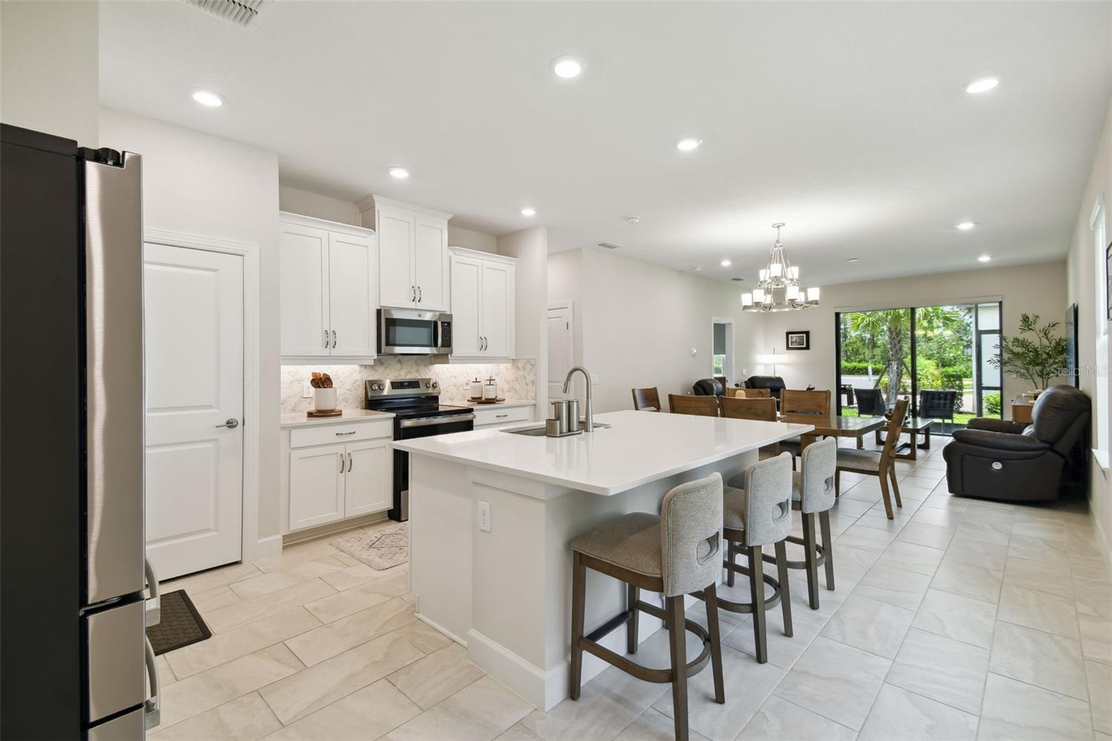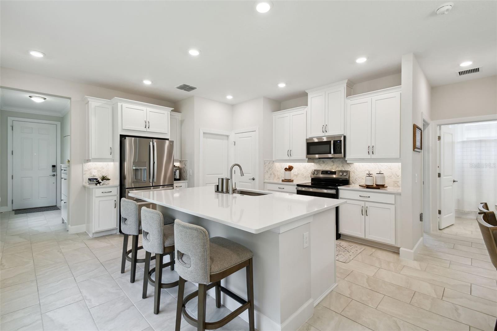 HUGE PRICE ADJUSTMENT!! Welcome to Solivita, an award-winning 55+ gated community in Central Florida offering a vibrant, resort-style lifestyle tailored for active adults. Fall in love with this STUNNING 2024 Salina model, offering 2 bedrooms and 2 full bathrooms, in 1,366 square feet of beautifully designed living space. From the moment you step onto the welcoming, screened-in front porch, you’ll feel right at home. Inside, the OPEN-CONCEPT floor plan is perfect for both everyday living and entertaining. The kitchen is a true showstopper with gorgeous CORIAN countertops, SOFT-CLOSE CABINETS, convenient pull-out shelves, and stainless-steel appliances—designed to make cooking a joy. The spacious living and dining areas flow seamlessly to the SCREENED LANAI, where UPGRADED TILE FLOORING creates a stylish space to relax and unwind. You will find NO CARPET in this home. Thoughtful touches are found throughout, including UNDER CABINET LIGHTING in the kitchen, a full-house WATER FILTRATION SYSTEM, modern ELECTRIC BLINDS for effortless comfort, and a laundry room complete with a sink and designer backsplash. Every detail has been carefully selected to enhance comfort, style, and functionality. With beautiful finishes, move-in ready condition, and all the upgrades already done for you, this home is a rare find. Don’t miss your chance to enjoy low-maintenance living in a home that truly has it all. Ideally located a short golf cart ride from the lively Village Center, this neighborhood places year-round dining, entertainment, and festive events just moments from your doorstep. Residents enjoy access to two 18-hole PGA Championship golf courses, 14 indoor and outdoor pools, top-tier fitness centers with professional trainers and wellness classes, and courts for tennis, pickleball, bocce ball, shuffleboard, and more. With over 250 clubs and interest groups, art studios, a spa, on-site restaurants, and frequent live entertainment, Solivita delivers endless opportunities for connection, creativity, and fun. The community also features beautifully maintained landscaping, automated gate access, 24/7 security, and included fiber optic internet and cable—all covered by the HOA. Just outside the gates, the newly opened Poinciana Plaza offers convenient access to popular retailers, banks, and dining options: Ross, TJ Maax, PetSmart, Sprouts, First Watch, Five Guys and so much more! Come experience the exceptional lifestyle that makes Solivita one of Florida’s premier active adult communities. Schedule your private tour today and see why this Salina model stands out from the rest! ***No verbal offers will be accepted or considered***
