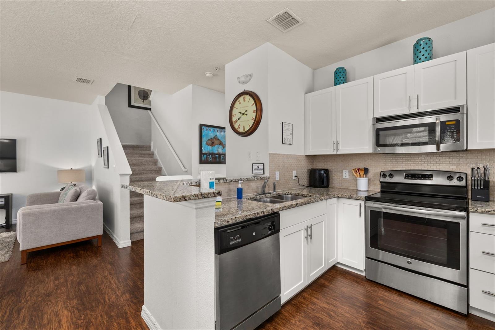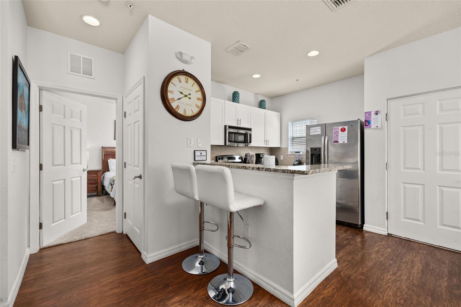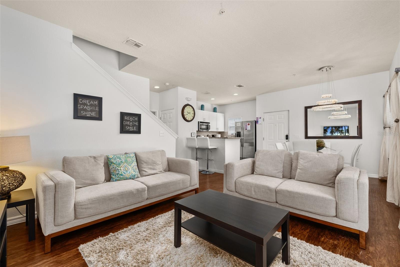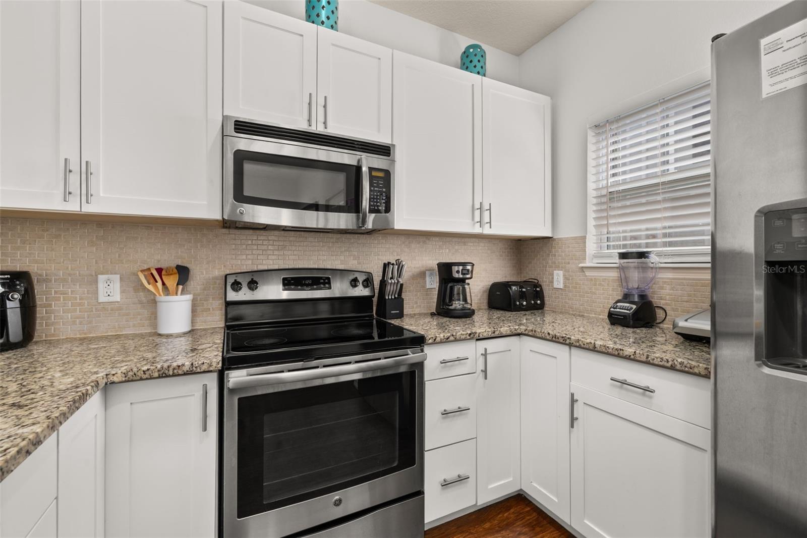 PRIME LOCATION • CORNER LOT • FULLY FURNISHED • PRICED TO SELL! Don’t miss this stunning 4 BED / 3 BATH townhome perfectly situated in the sought-after vacation community of Lucaya Village Resort — just 10 minutes from Disney Parks! This beautiful home features laminate flooring throughout all main living areas and wet spaces, making maintenance a breeze. The spacious kitchen is outfitted with 32" upper white cabinetry, dark granite countertops, and stainless-steel appliances, including refrigerator, range, microwave, and dishwasher. **Brand new A/C, replaced in 2025**. The first-floor carpeted master suite offers a large bathroom with granite counters, a double vanity, and a walk-in closet. Upstairs, you’ll also find carpeted bedrooms, with Bedrooms 2 and 3 sharing a full bathroom — plus a conveniently located laundry area. Enjoy resort-style amenities at Lucaya Village, including a clubhouse with fitness center, business center, convenience store, playroom with flat-screen TVs and games, and a sparkling community pool with spa. HOA fees cover exterior maintenance and landscaping, with no CDD on taxes for extra savings. Walk to US192 for shopping, dining, and groceries. Whether you’re seeking the perfect vacation getaway, primary residence, or high-performing short-term rental, this property checks every box. Make unforgettable memories with family and friends — and earn great returns when you’re not using it!