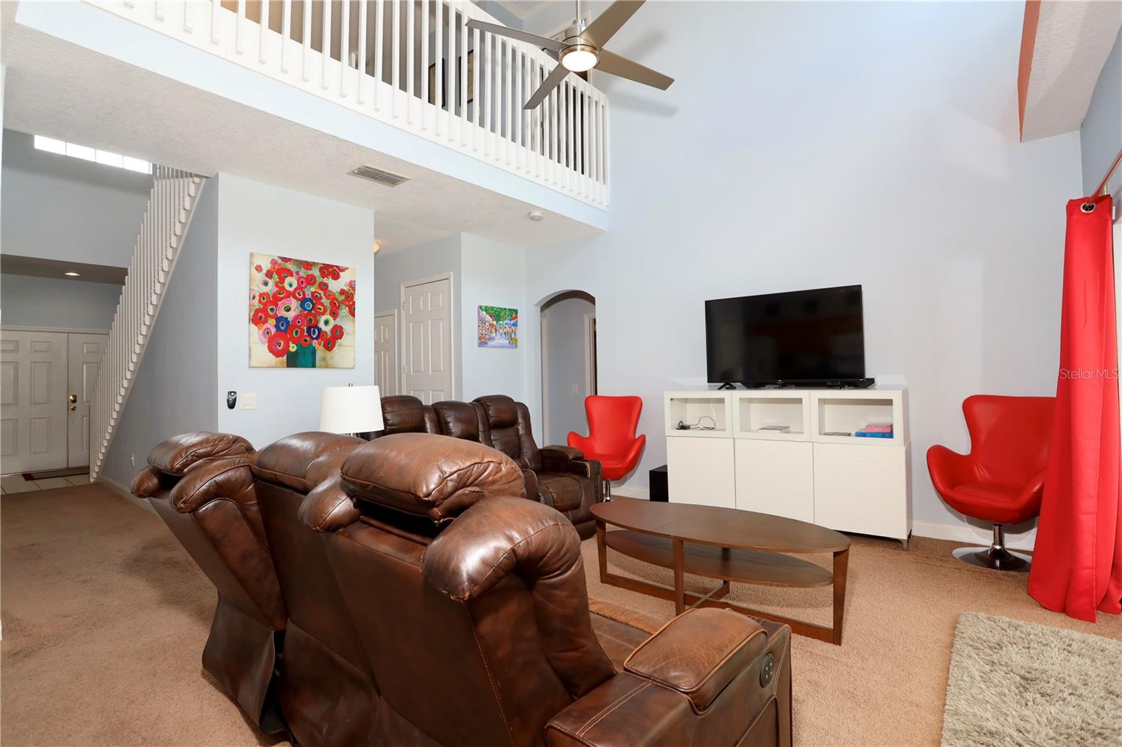 Welcome to the sought-after gated community of Cumbrian Lakes. This home is Short Term Rental approved and already has bookings thru the end of the year!! This large 5-bedroom home offers an exceptional lifestyle complete with water views and pool. Whether you’re searching for a permanent residence, a vacation getaway, or a seasonal retreat, this fully furnished is it. The expansive first floor features a spacious living room and a formal dining area along with a vaulted family room has a lot of natural light and offers panoramic views of the sparkling pool and water beyond. Two bedrooms are on the first floor, ideal for guests or family members seeking easy access. As well as a full bath and a guest powder room, along with a dedicated laundry room The staircase to the 2nd floor features a large bonus area, perfect for a home office, playroom. The master suite, boasts an ensuite bathroom complete with dual sinks, a separate shower, a relaxing garden tub, and two spacious closets. A private balcony offers stunning water views, creating a tranquil space for you to unwind and enjoy the peaceful ambiance of Florida evenings. Two additional bedrooms and a main bathroom are on the 2nd floor. This residence has contemporary furnishings, tasteful artwork, and stylish accessories, making it completely turnkey. The outdoor space features a sparkling pool with a new pool heater. Located close to the attractions, making it the perfect location for a visiting all the theme parks. Don’t miss this once-in-a-lifetime opportunity to own a slice of paradise. Schedule your private showing today and step into a lifestyle of luxury and serenity that you’ve always dreamed of.